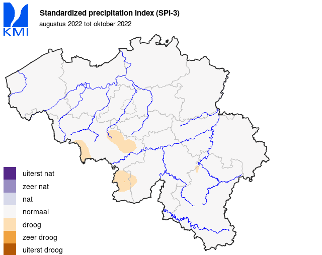 In ons land viel de minste neerslag in het Land van Herve (ongeveer 35% van de normale hoeveelheid) terwijl de meeste neerslag in Belgisch Lotharingen (ongeveer 85% van de normale hoeveelheid) is gevallen.