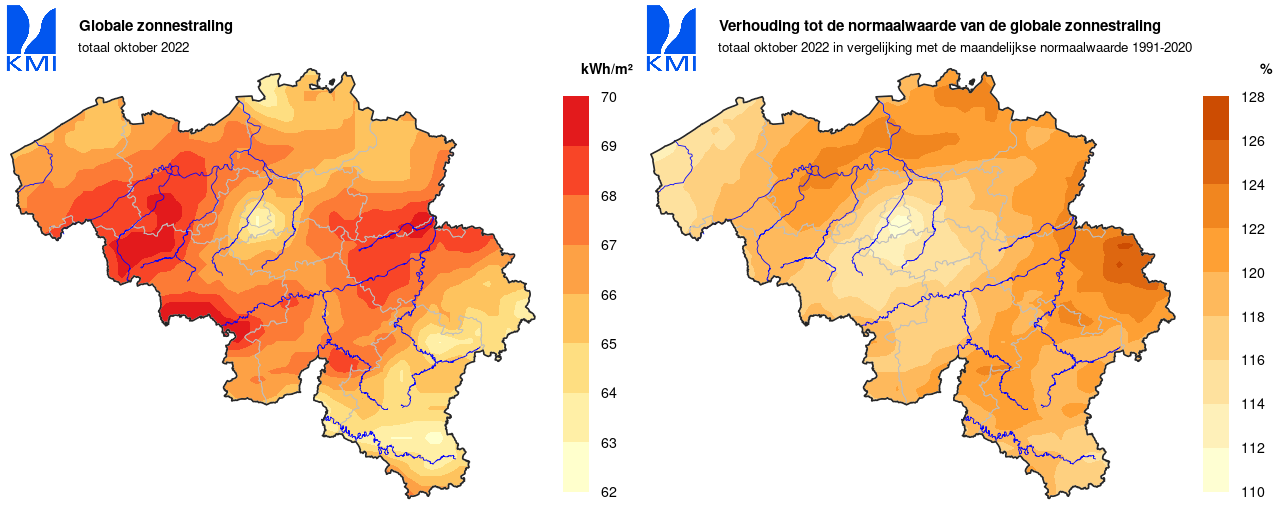 Na een natte eerste herfstmaand, viel er de afgelopen maand weer minder neerslag dan normaal. In Ukkel viel er in totaal 40,7 mm (normaal: 67,8 mm). Deze hoeveelheid viel op 13 dagen tijd (normaal: 16,1 dagen). Daarmee was dit de derde droogste oktobermaand van de huidige referentieperiode. Het record blijft staan op 6,0 mm in 1995.