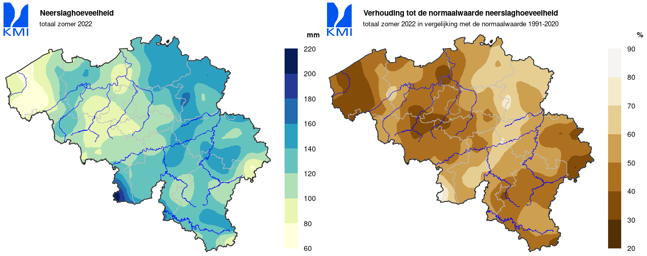 In ons land viel de minste neerslag aan de kust (ongeveer 40% van de normale hoeveelheid) terwijl de meeste neerslag in de Kempen en Haspengouw (ongeveer 60% van de normale hoeveelheid) is gevallen.