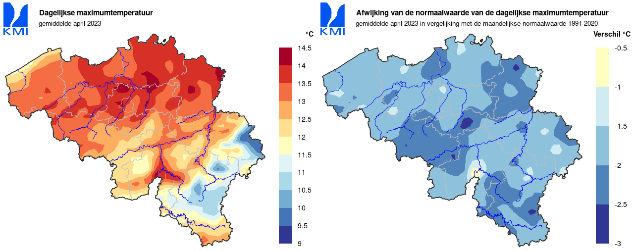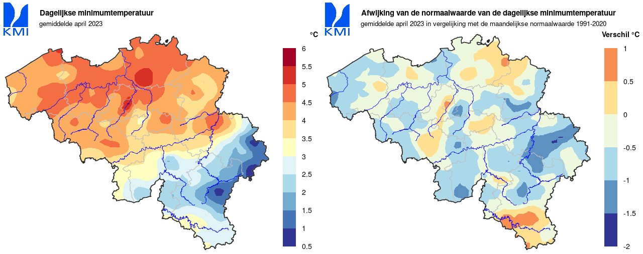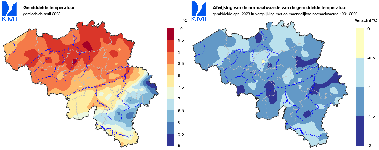Ook opvallend: de afgelopen maand telde hier geen enkele lentedag [max>=20°C] (normaal: 4,7 dagen). De vorige keer dateerde van 2016. Voor de huidige referentieperiode was dit nog maar de vierde aprilmaand zonder lentedagen, terwijl dit al 40 keer voorkwam sinds het begin van deze waarnemingen in 1892.