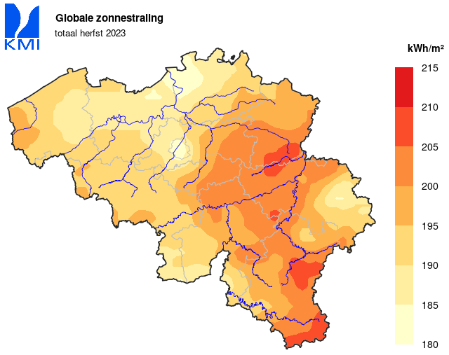 De herfst in zijn totaal was hier uiteindelijk iets zonniger dan gemiddeld: 339u 4min (normaal: 332u 52 min).