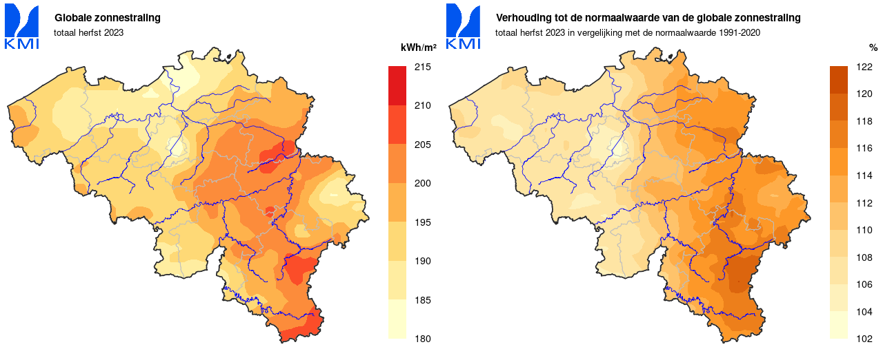 - 1 september – 15 oktober: in totaal registreerden we 270u 08min zon (normaal: 208u 38min). Enkel in 2018 was deze periode nog veel zonniger: 316u 16min.