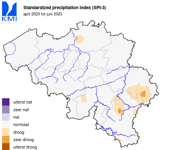 In ons land viel de minste neerslag in de Polders (ongeveer 40% van de normale hoeveelheid) terwijl de meeste neerslag in Haspengouw en de Condroz is gevallen (ongeveer 80% van de normale hoeveelheid). Enkel zeer lokaal viel er meer dan 100% van de normale hoeveelheid.