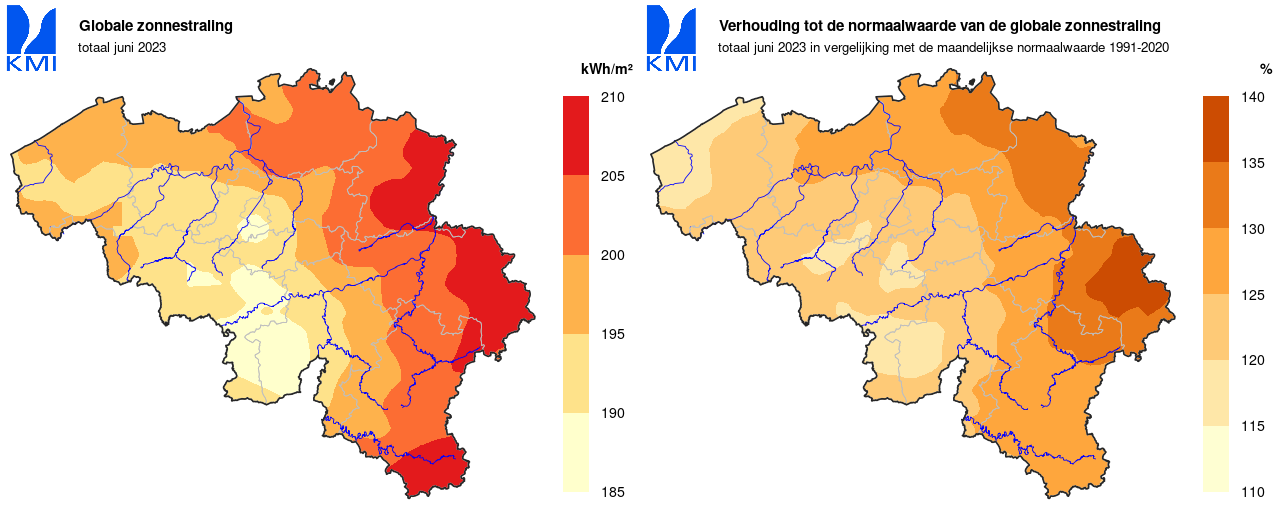 De zonneschijnduur bedroeg de afgelopen maand 307u 50min in Ukkel (normaal: 199u 16min). Dit is een nieuw absoluut record (metingen vanaf 1887). Het vorige record dateerde van 1976 (302u 17min).