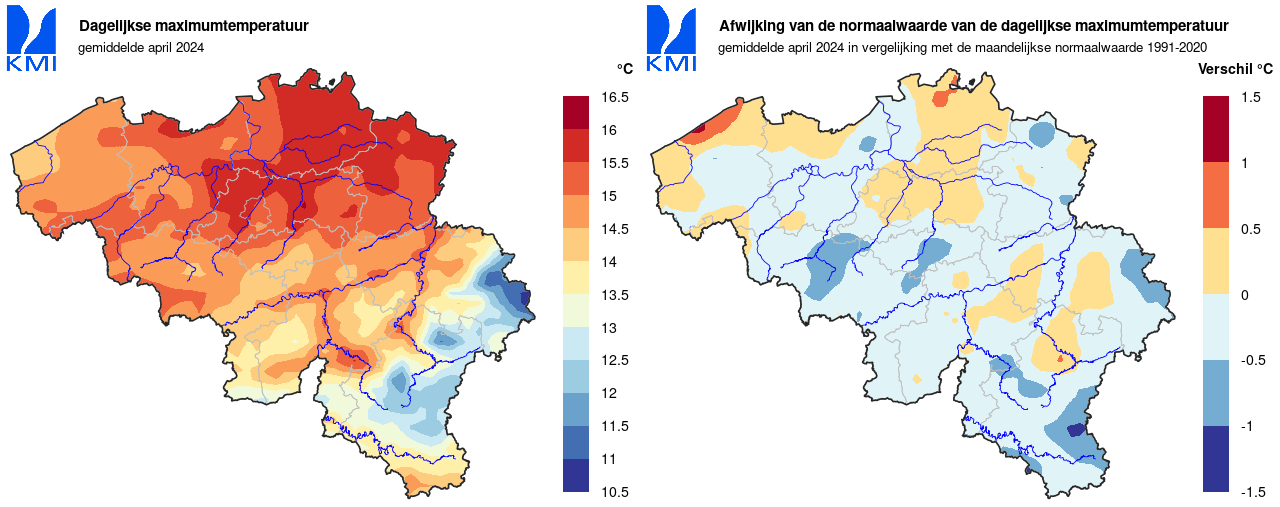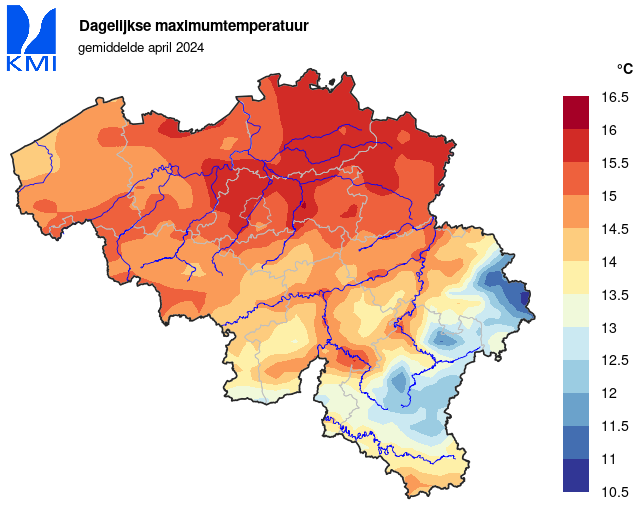 De hoogste temperatuur werd op 6 april in Luik-Monsin (Luik) geregistreerd met 26,2°C.