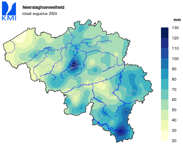 Halfweg de maand, na drie dagen met veel neerslag in Ukkel (40,6 mm op 1 augustus, 28,2 mm op 2 augustus en 28,3 mm op 14 augustus) was het al snel duidelijk dat augustus de elfde opeenvolgende maand met meer neerslag dan gemiddeld zou zijn. Ter herinnering: het vorige absolute record dateerde al van 1905 (metingen vanaf 1833). Van maart tot en met oktober 1905 registreerden we in Ukkel 8 opeenvolgende maanden met meer neerslag dan gemiddeld.