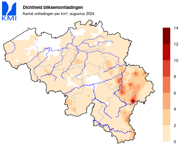 We registreerden de afgelopen maand 9 onweersdagen in ons land (normaal: 14,2 dagen).