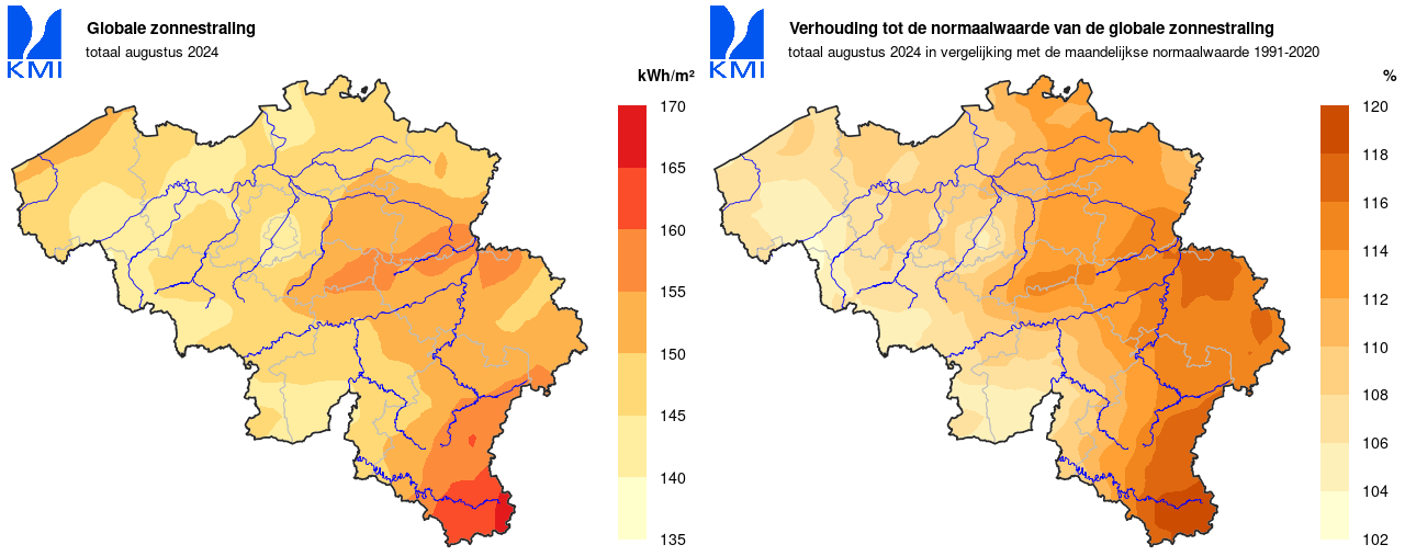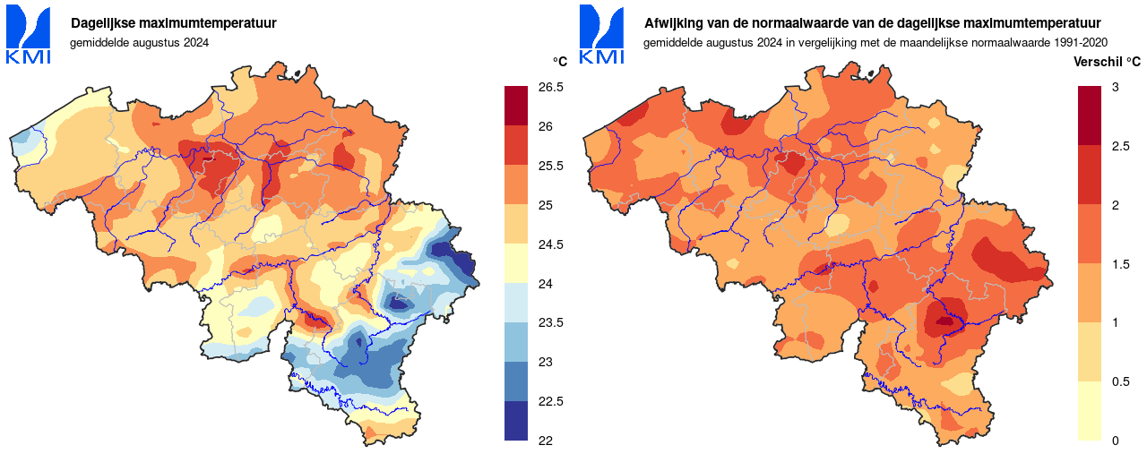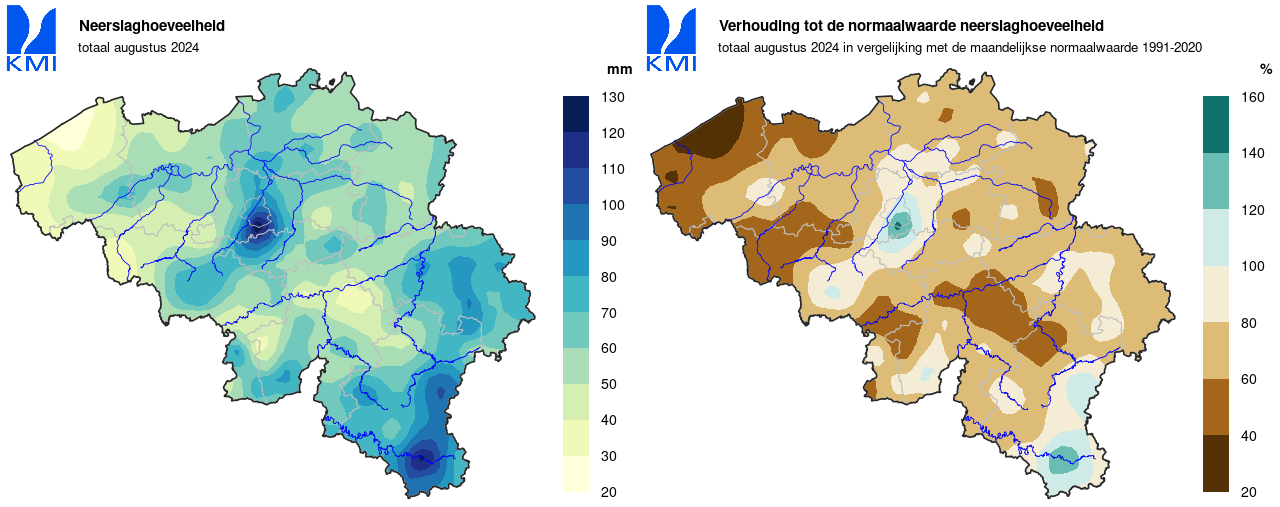 Augustus 2024 : Eerder warme maand met lokaal grote neerslagverschillen