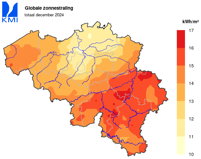 | Globale zonnestraling | kWh/m² | 11.1 | 16.8 | -- | 24.5 | 2013 | 10.8 | 1993 |