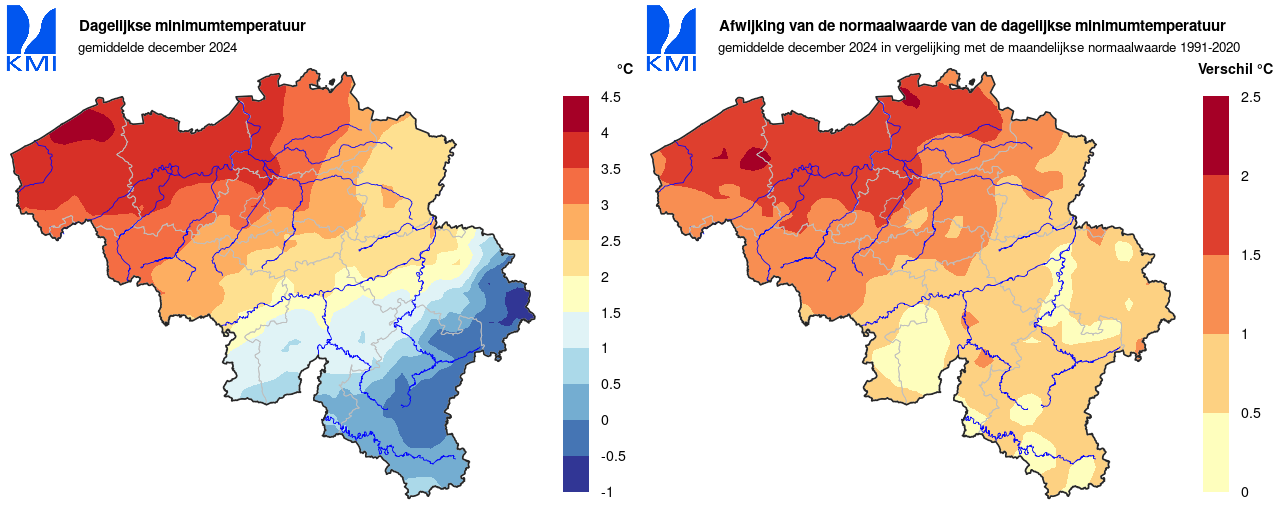 Daarnaast registreerden we geen enkele winterse dag [max<0°] (normaal: 1,7 dagen). Voor de huidige referentieperiode was het reeds de 16de december zonder winterse dagen. Voor de volledige reeks vanaf 1892 was het de 45ste keer.
