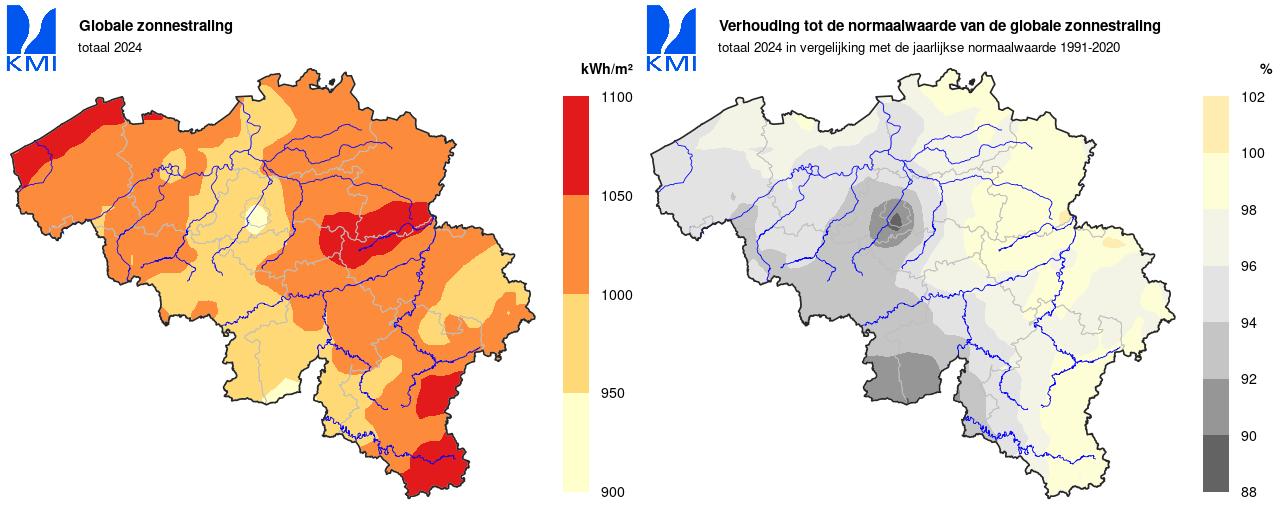| Globale zonnestraling | kWh/m² | 917.2 | 1037.6 | -- | 1171.8 | 2018 | 916.8 | 1998 |