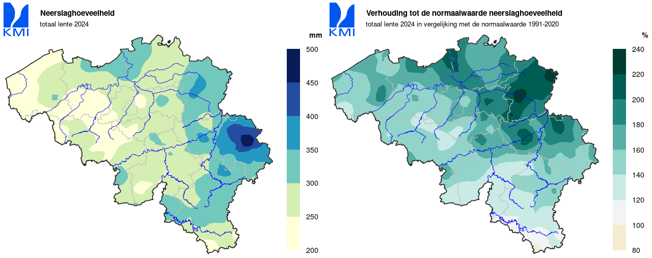 Opmerkelijk: deze lente is reeds het vijfde seizoen op een rij met meer neerslag dan gemiddeld. Het is nog maar de zesde keer sinds het begin van de waarnemingen in 1833 dat we een reeks van minstens vijf opeenvolgende te natte seizoenen meemaken. De vorige keer (6 seizoenen) dateerde van 2012-2013. Voor de langste reeks (8 seizoenen) moeten we teruggaan naar de oudste reeks, deze van 1924-1926.