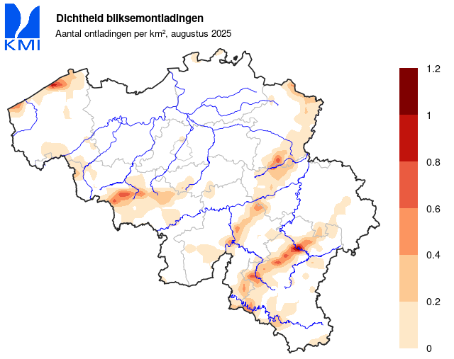 We registreerden de afgelopen maand 8 onweersdagen in ons land (normaal: 14,2 dagen).