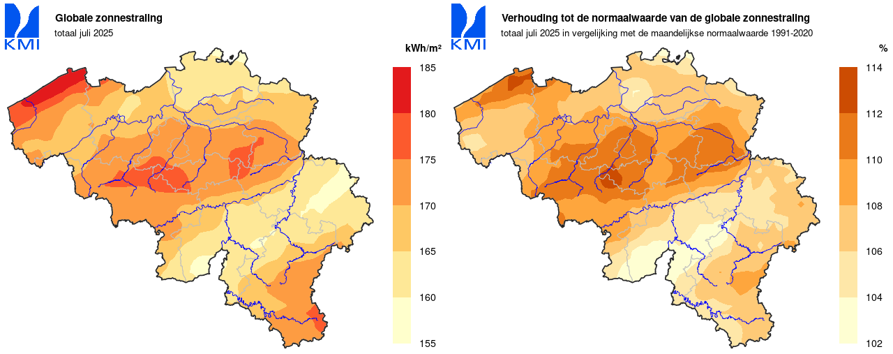 De volledige maand juli was uiteindelijk zonniger dan gemiddeld: 224u 53min (normaal: 203u 14min).