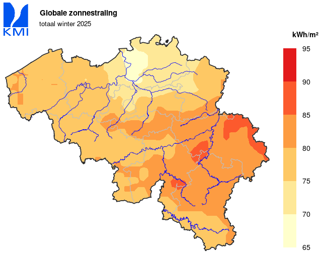 | Globale zonnestraling | kWh/m² | 73.8 | 75.5 | 89.8 | 2008 | 60.8 | 1994 | |
