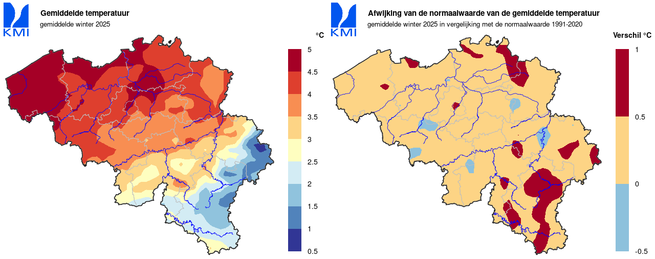 De hele winter wisselden warmere en koudere perioden elkaar af in Ukkel. Daardoor ligt de uiteindelijke gemiddelde temperatuur van dit seizoen dicht bij de normale waarde: 4,2°C (normaal: 4,1°C).