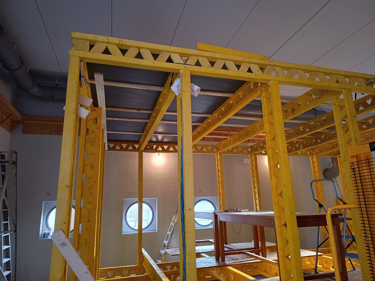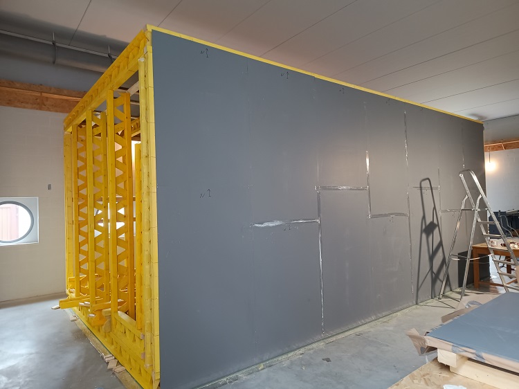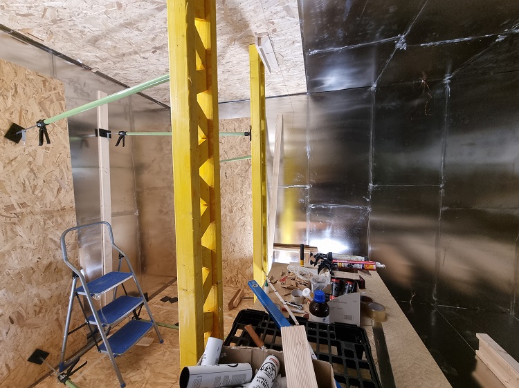 19. Voorbereiding van de MAR voor de installatie van het binnen schild: Montage van OSB-tussenpanelen.