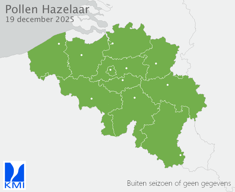 | Geen | Er wordt geen stuifmeel in de lucht verwacht. Het risico op symptomen is theoretisch afwezig, alhoewel zeer plaatselijke blootstellingen stuifmeelallergieën kunnen veroorzaken. | |
