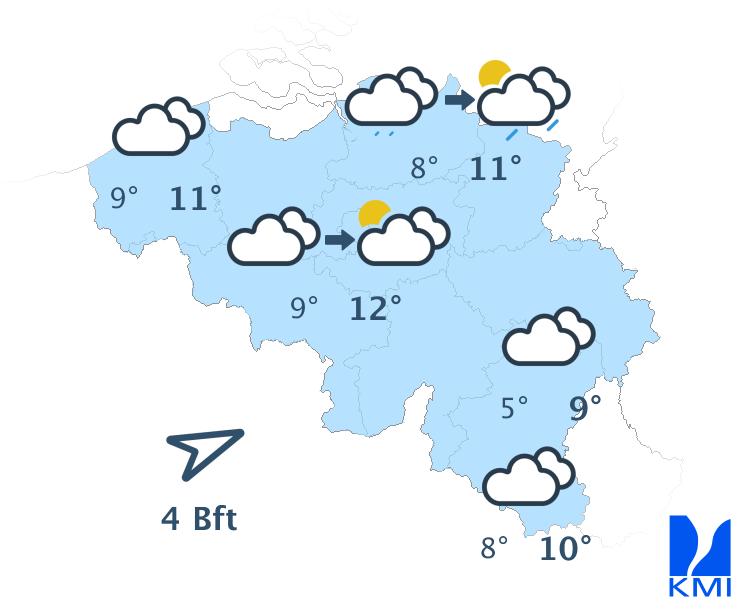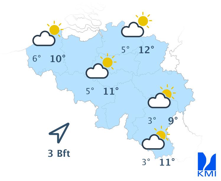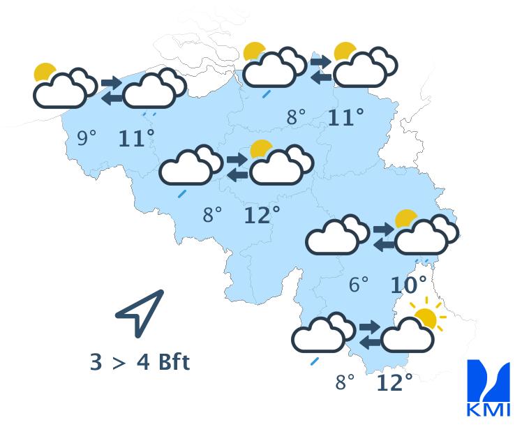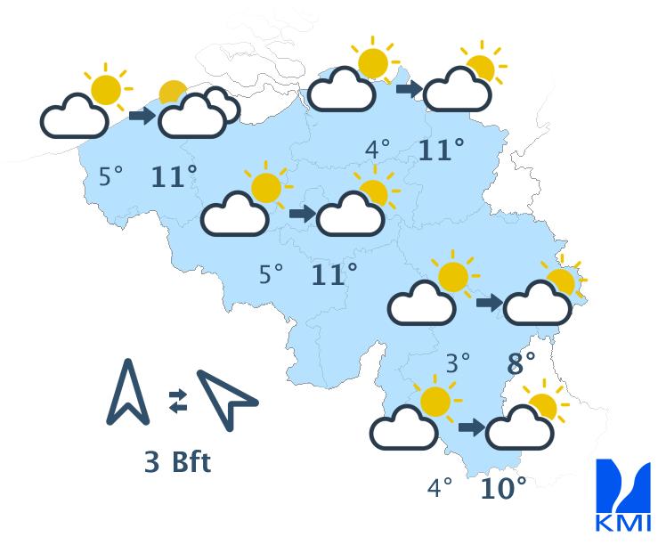 Maandag is het wisselend bewolkt en waarschijnlijk droog. De maxima schommelen rond 23 graden in het centrum van het land.