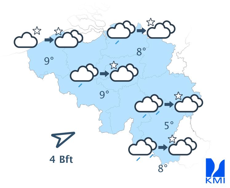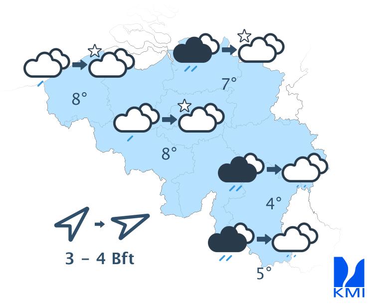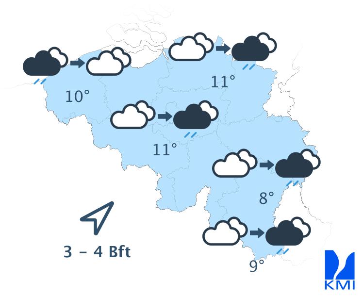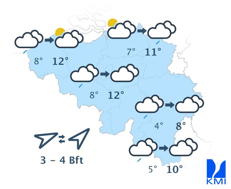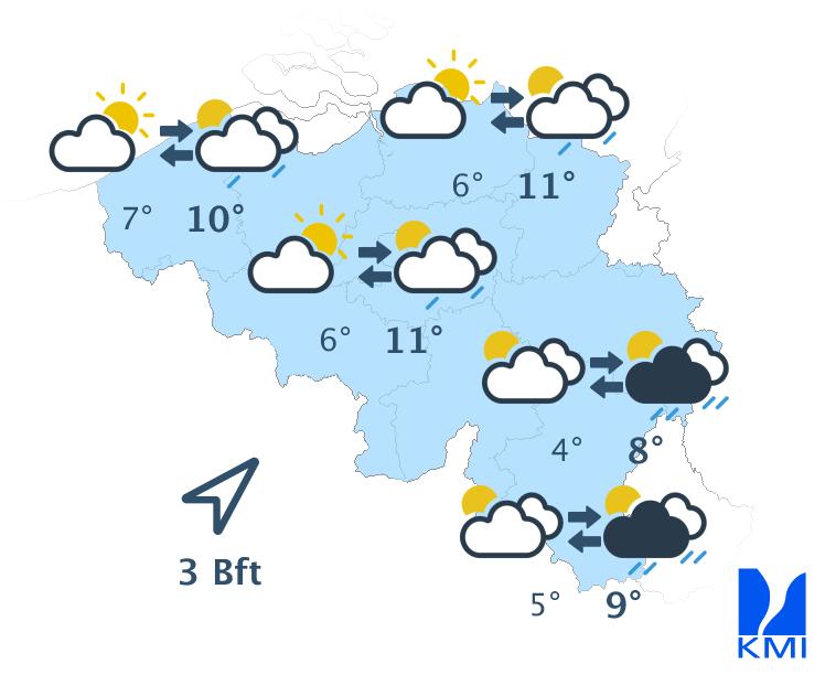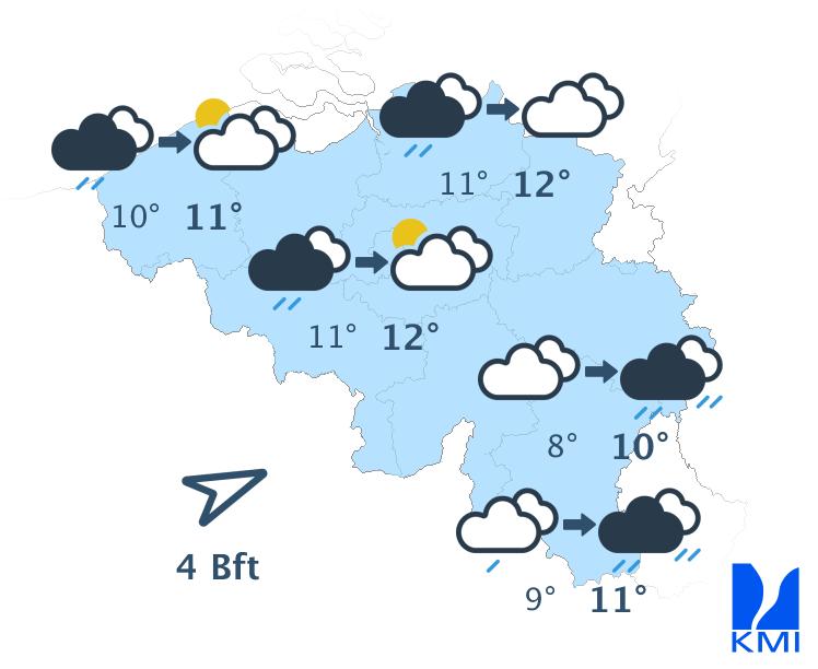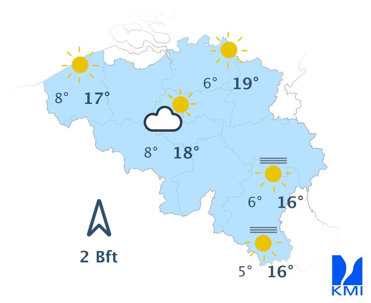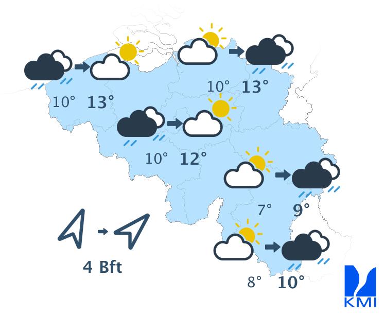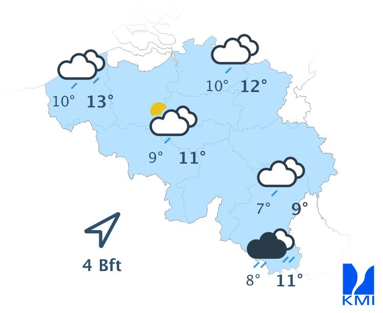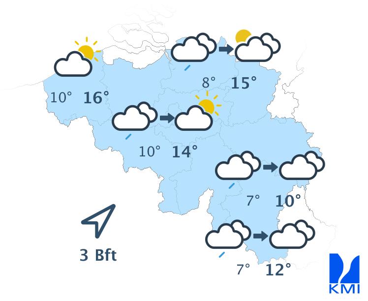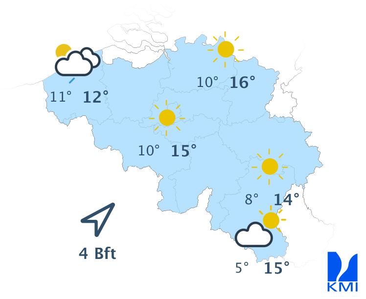 Vrijdag bereikt een storing het westen van het land en zorgt vooral in het westen van het land voor wat regen. In de oostelijke helft van het land blijft het waarschijnlijk droog en vrij zonnig tot de avond. De maxima schommelen tussen 22 graden aan de kust en 25 of 26 graden in de Kempen.
