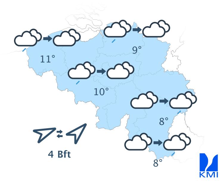 In de nacht van dinsdag op woensdag neemt de bewolking en kans op onweersbuien toe. Sommige onweders kunnen intens zijn. De minima schommelen tussen 16 en 20 graden bij een overwegend zwakke wind uit veranderlijke richtingen.