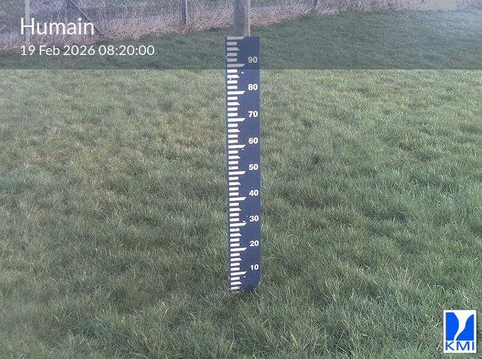 De meetlat op het beeld laat toe om de actuele sneeuwhoogte (in cm) in te schatten.