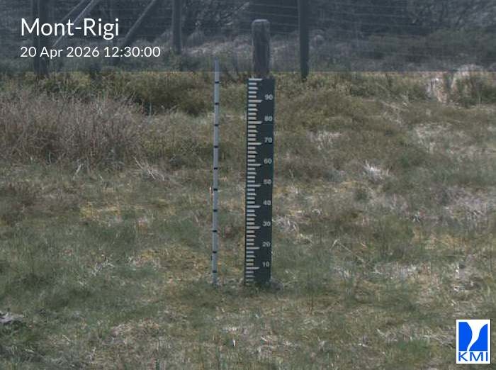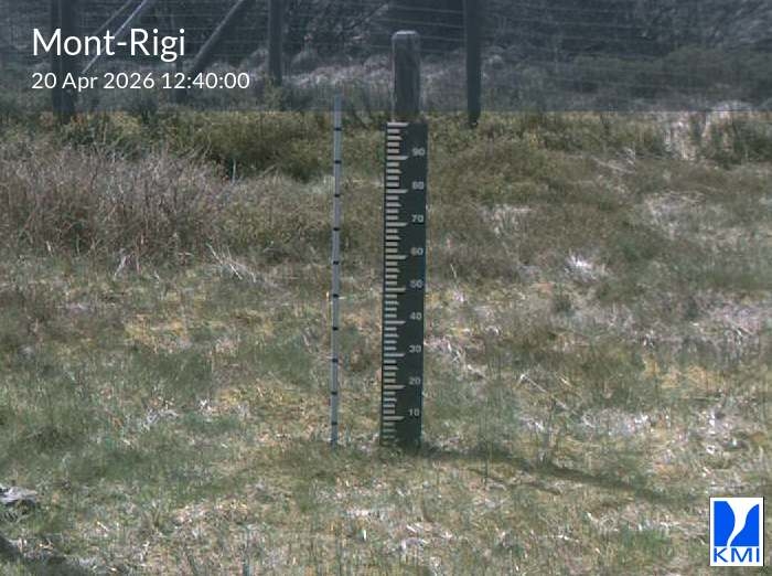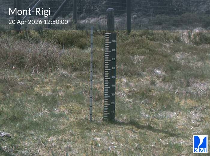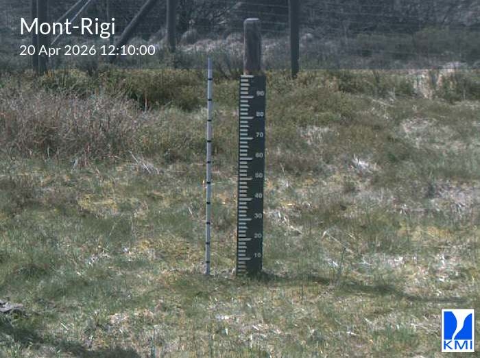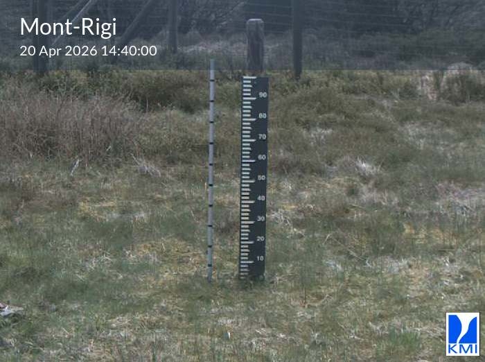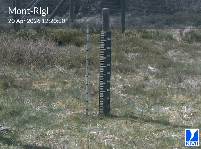De meetlat op het beeld laat toe om de actuele sneeuwhoogte (in cm) in te schatten.