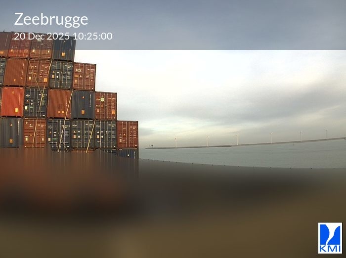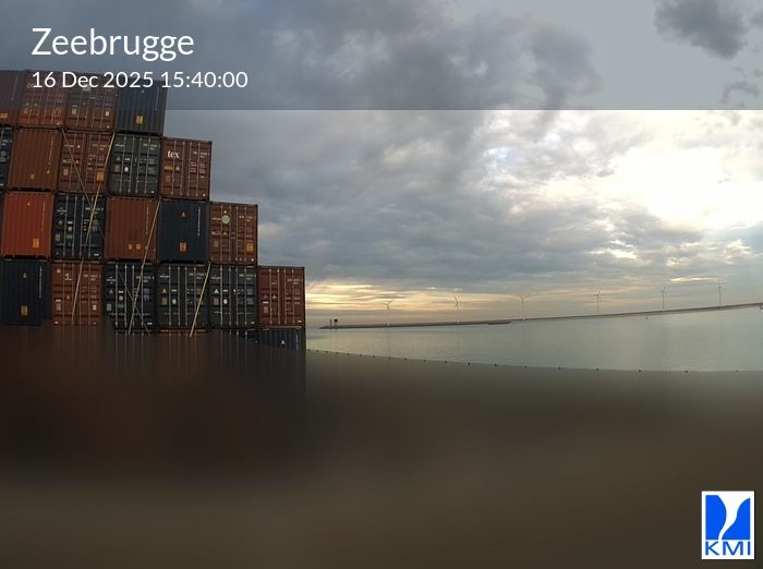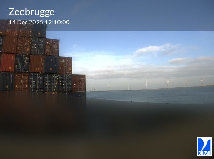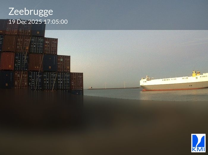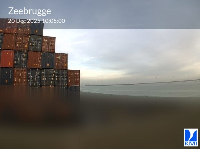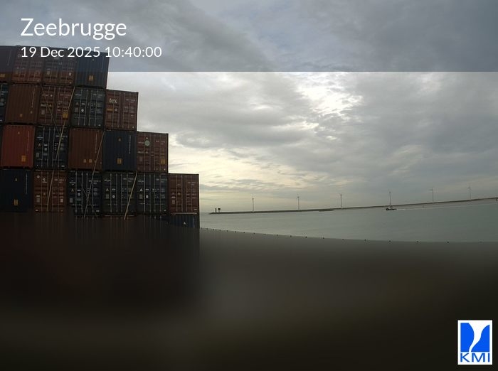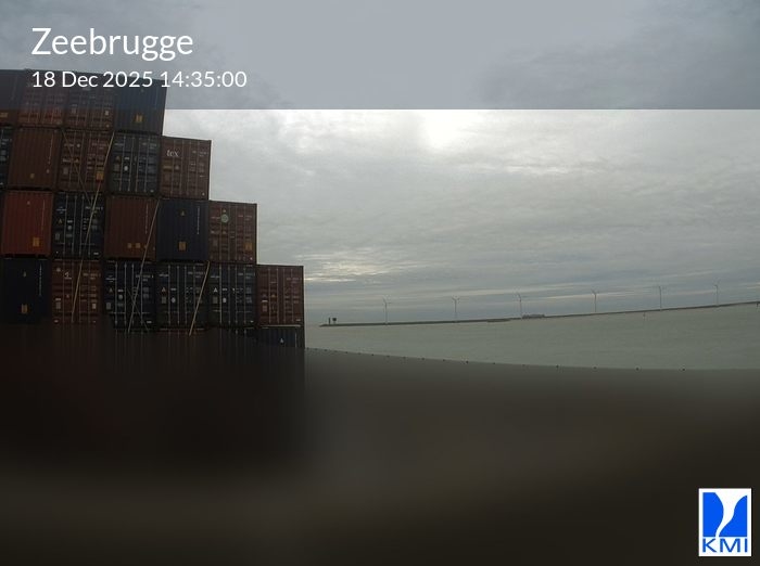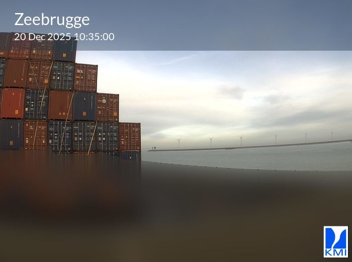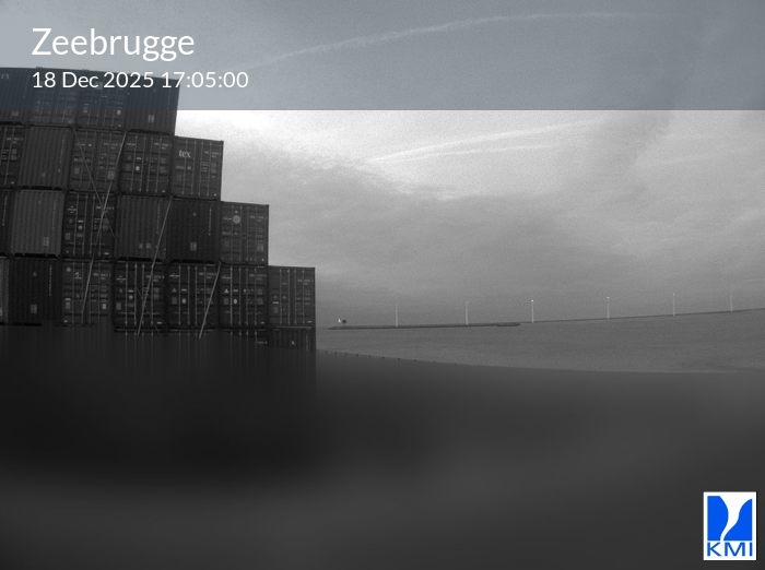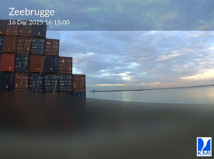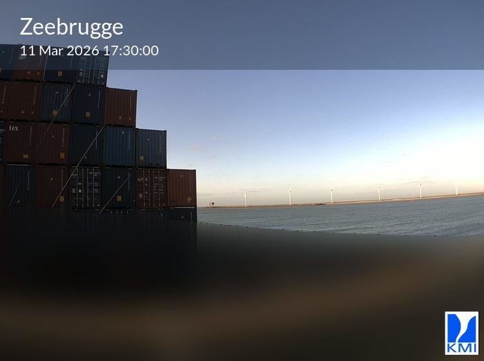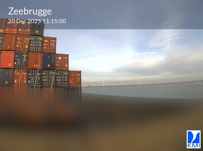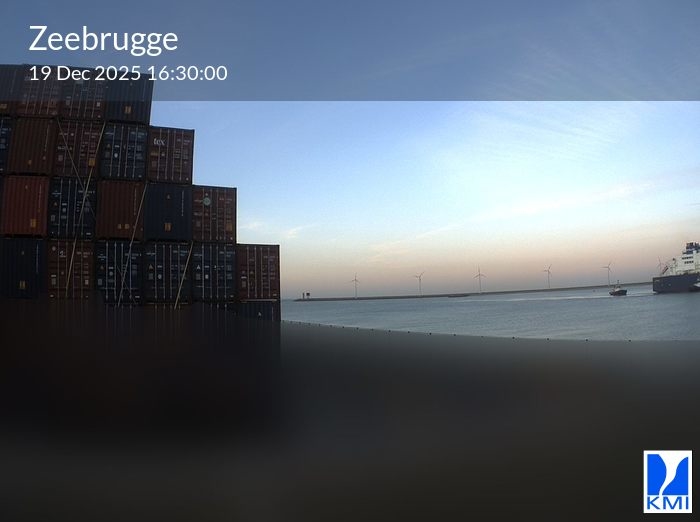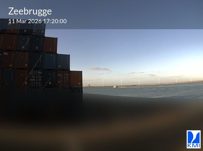 De webcam bevindt zich op de Leopold II-Dam in de haven van Zeebrugge aan de Belgische Kust en is naar het noorden gericht om het rechtstreekse zonlicht tijdens het middaguur te vermijden.