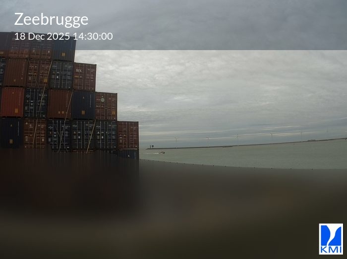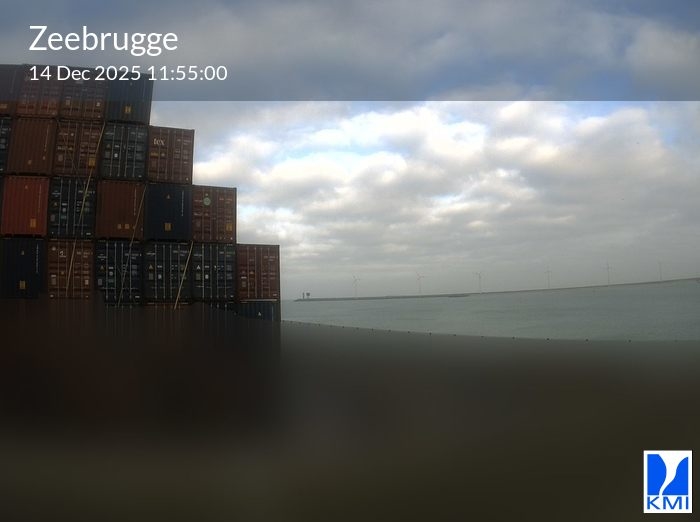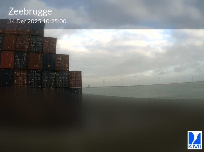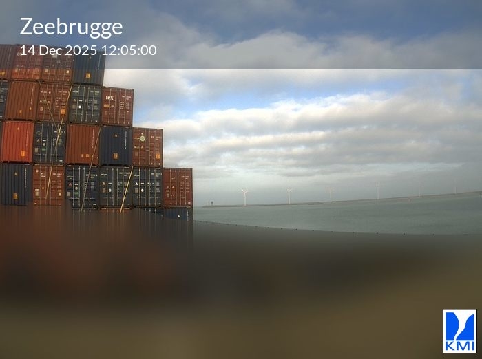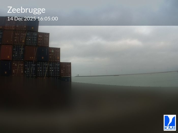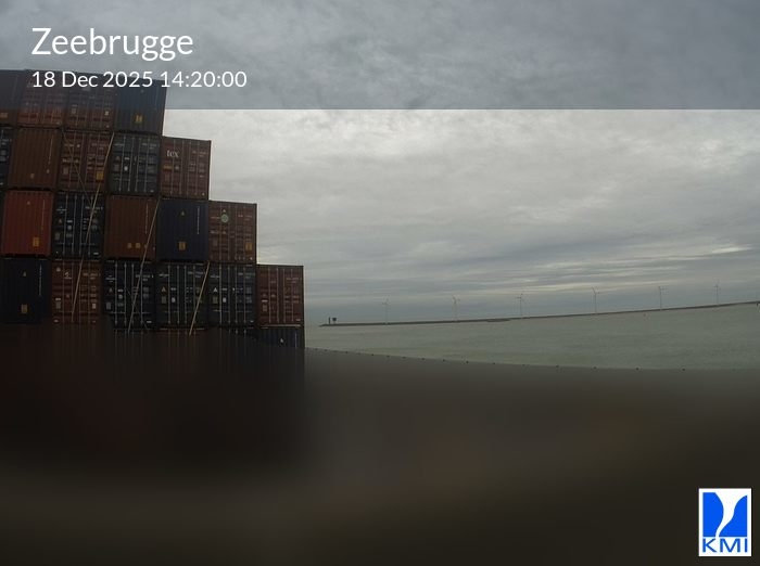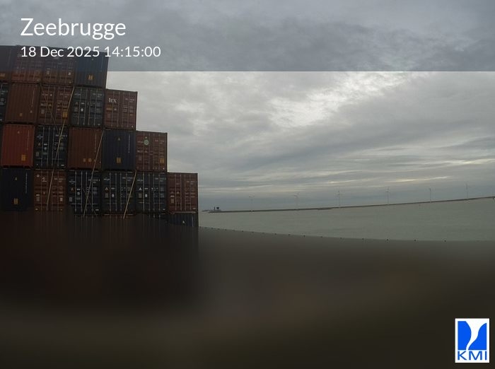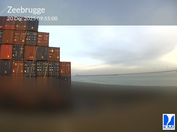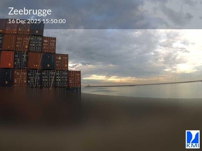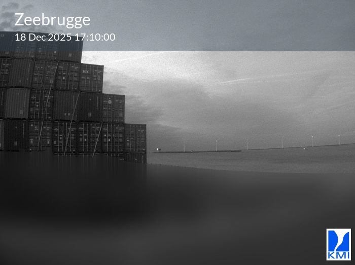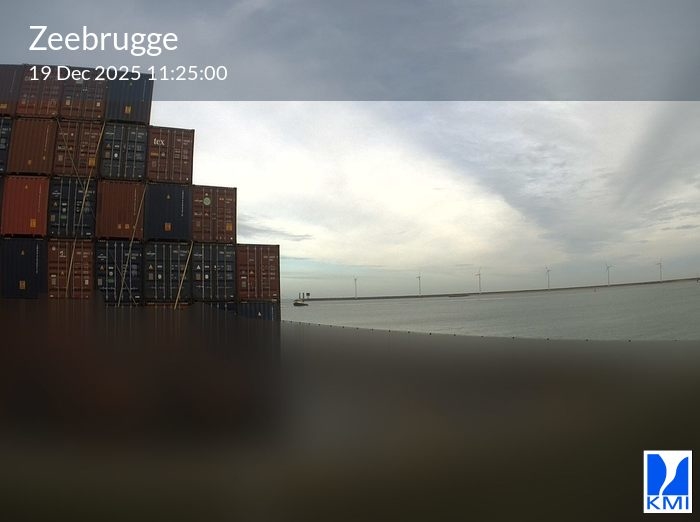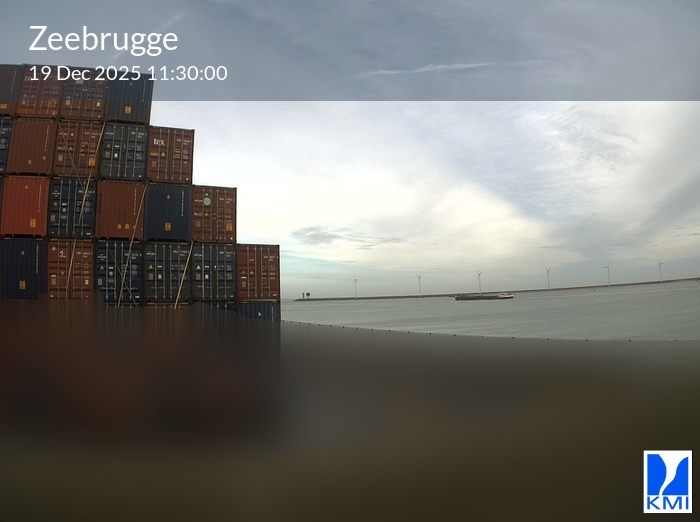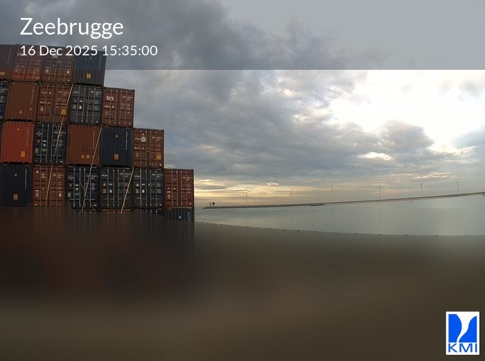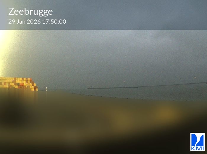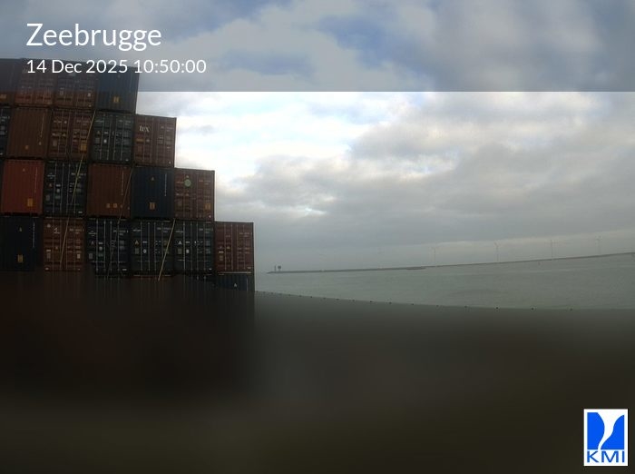 De webcam bevindt zich op de Leopold II-Dam in de haven van Zeebrugge aan de Belgische Kust en is naar het noorden gericht om het rechtstreekse zonlicht tijdens het middaguur te vermijden.