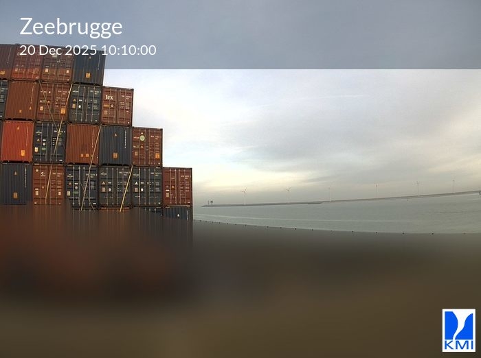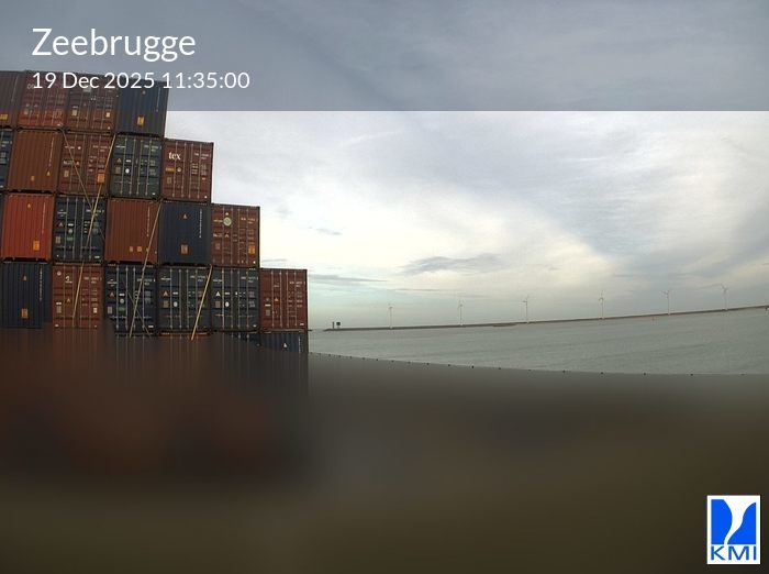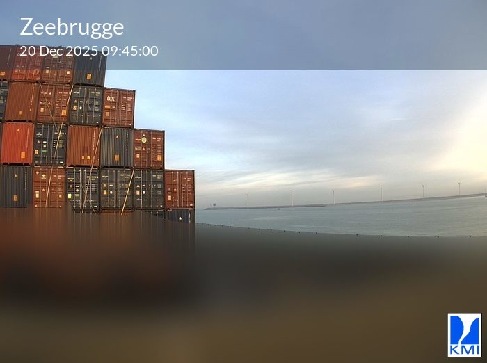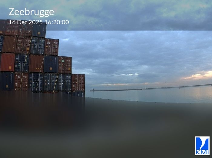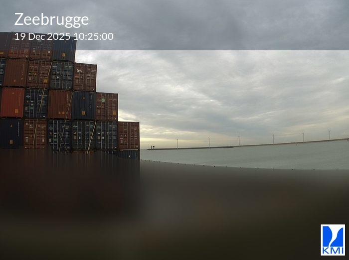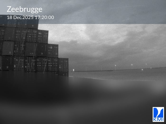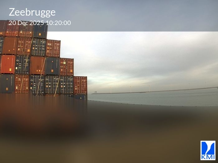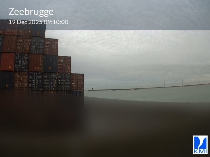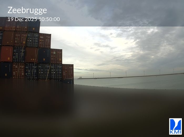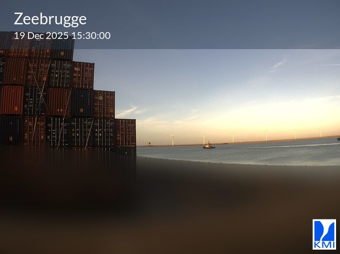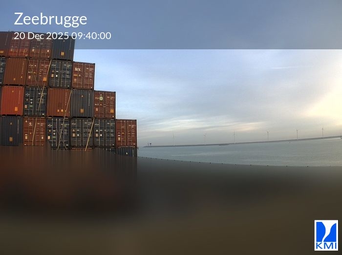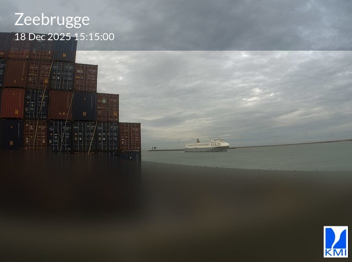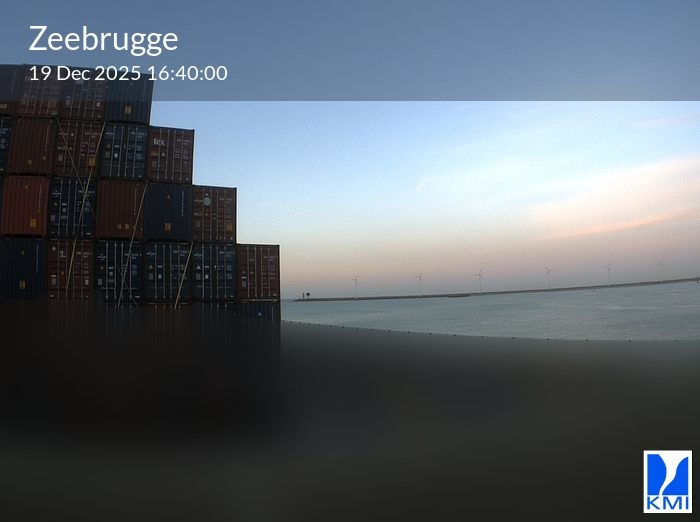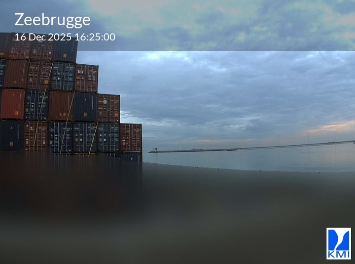 De webcam bevindt zich op de Leopold II-Dam in de haven van Zeebrugge aan de Belgische Kust en is naar het noorden gericht om het rechtstreekse zonlicht tijdens het middaguur te vermijden.