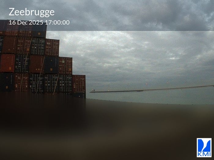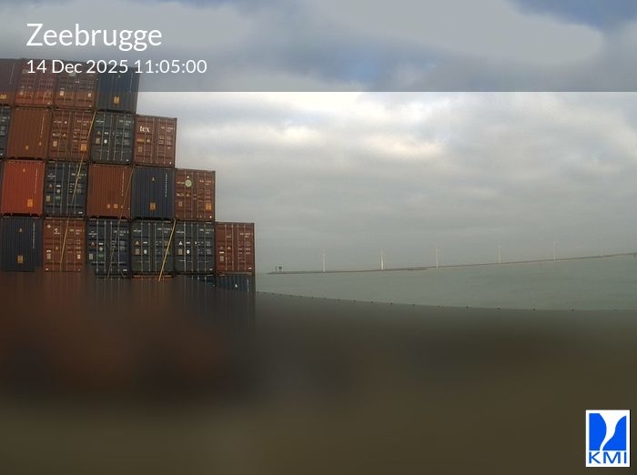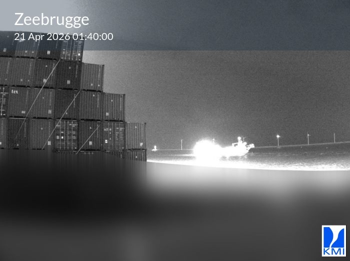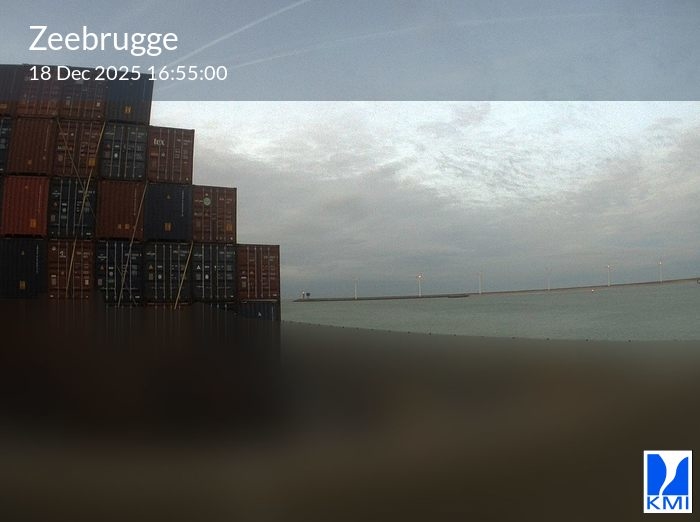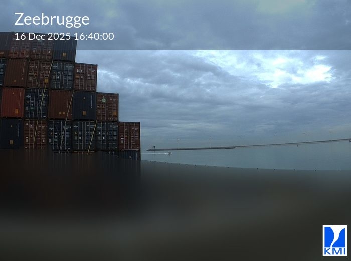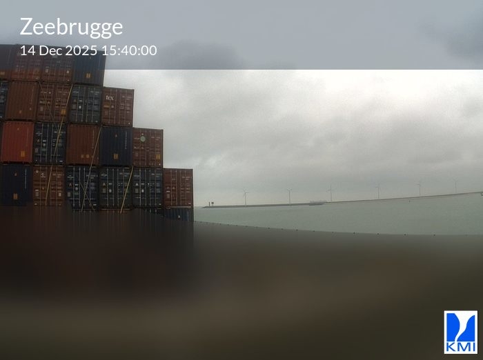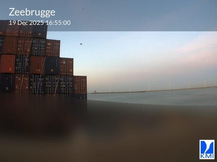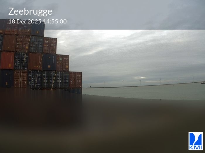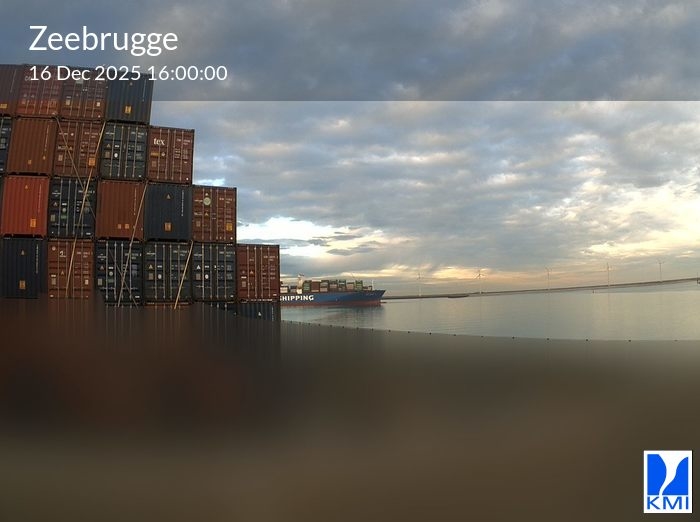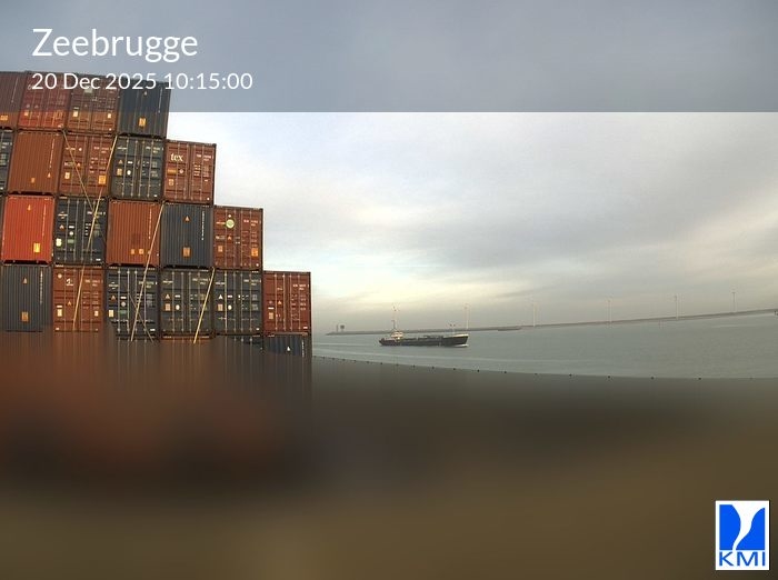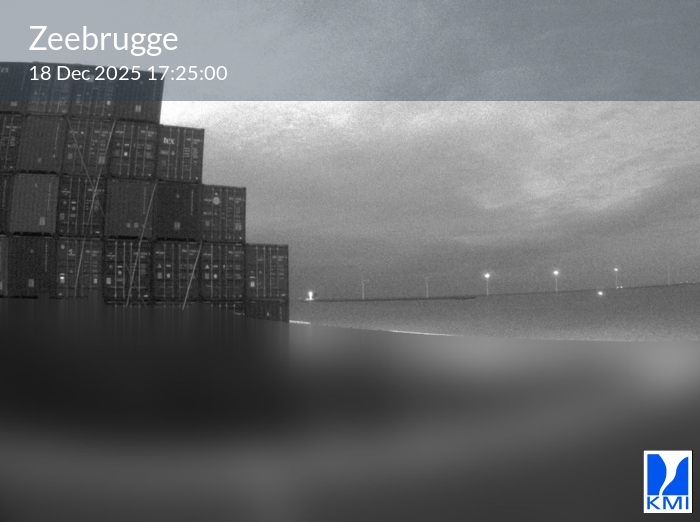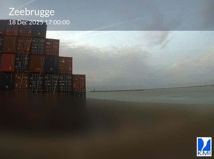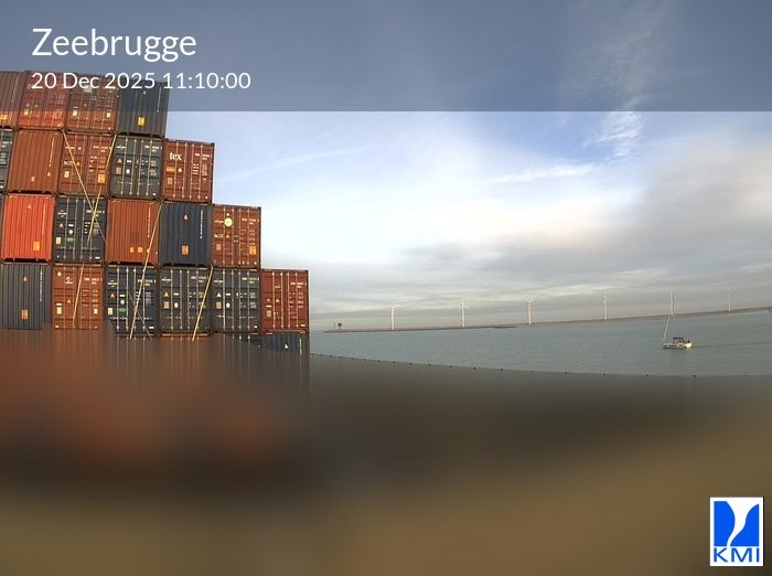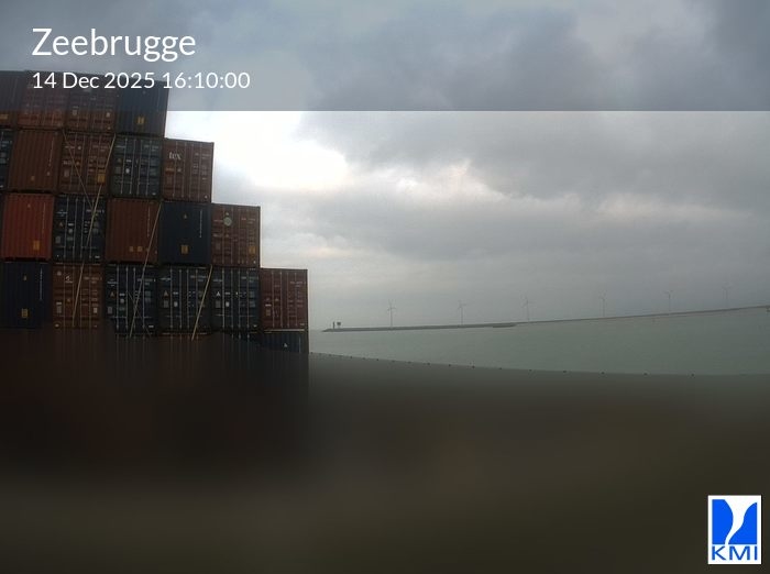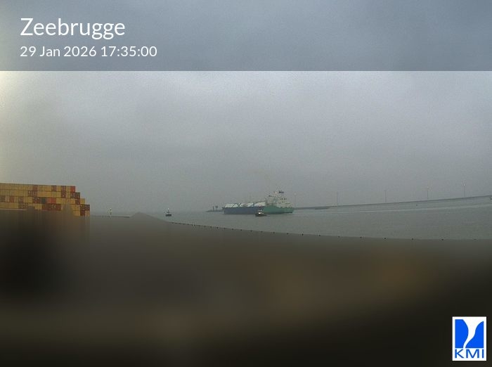 De webcam bevindt zich op de Leopold II-Dam in de haven van Zeebrugge aan de Belgische Kust en is naar het noorden gericht om het rechtstreekse zonlicht tijdens het middaguur te vermijden.