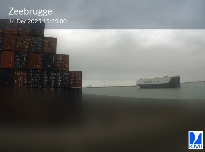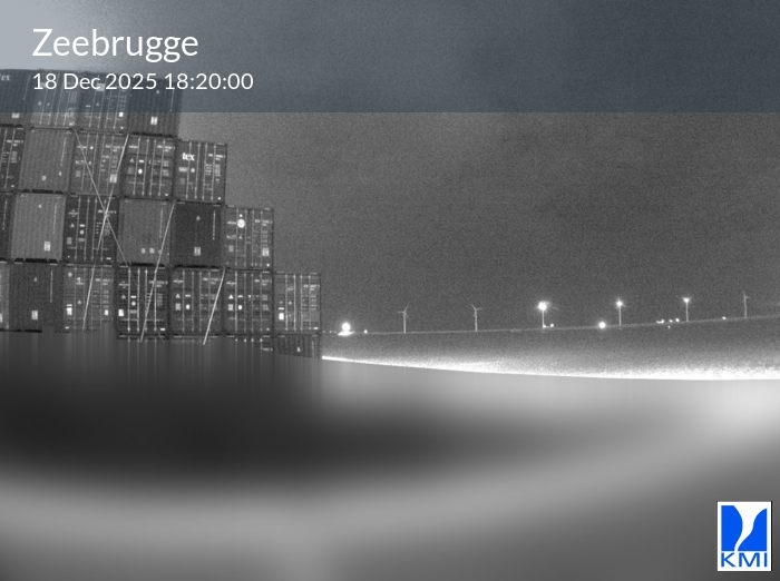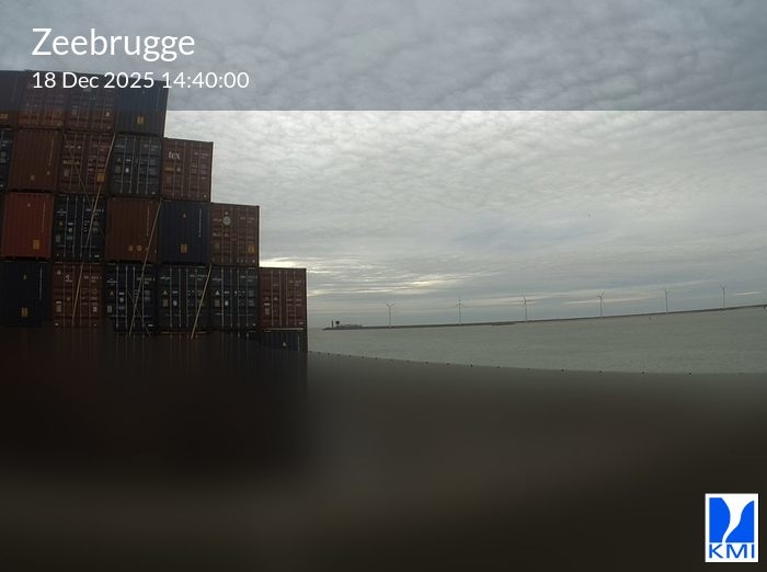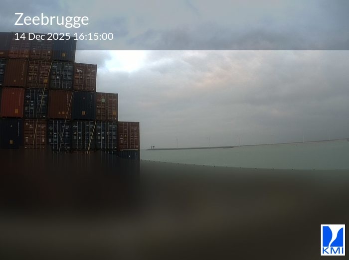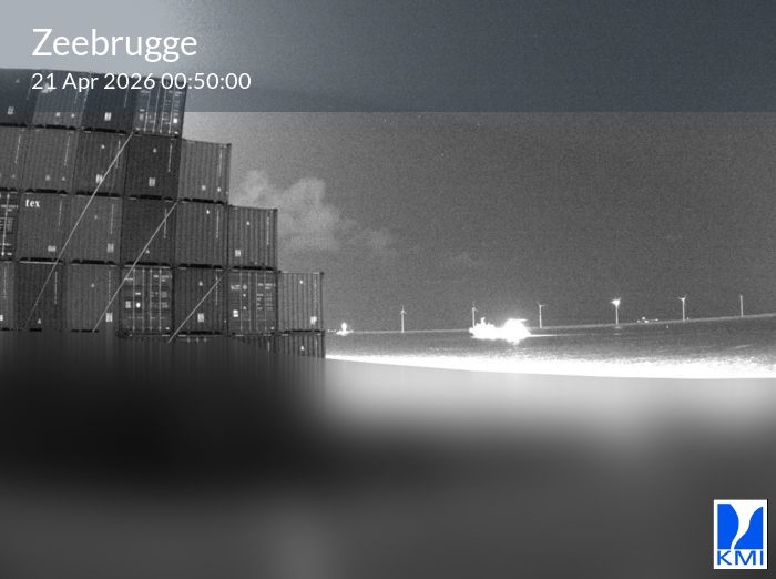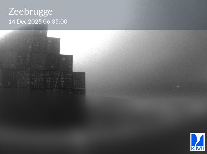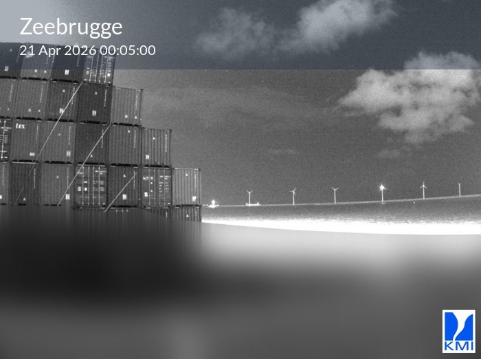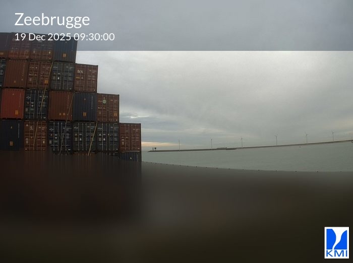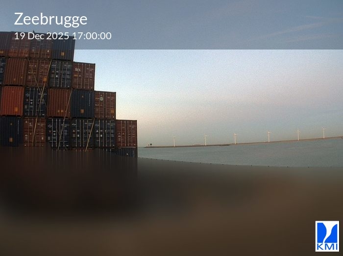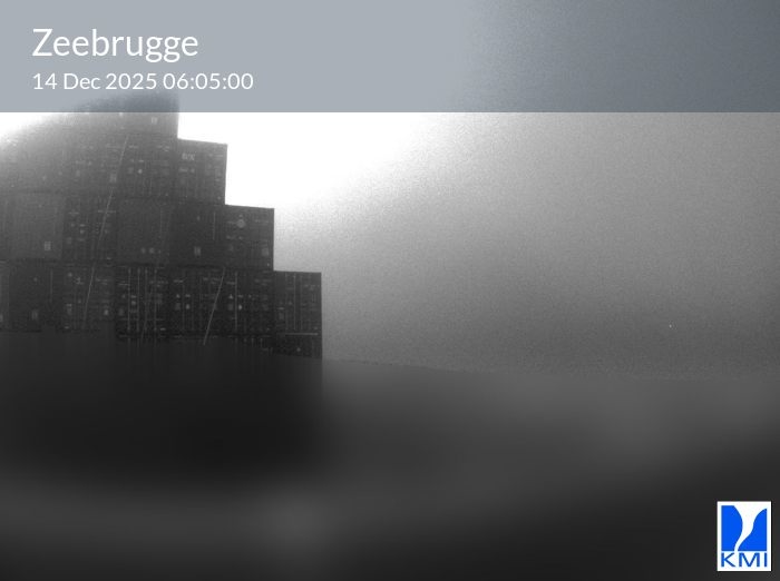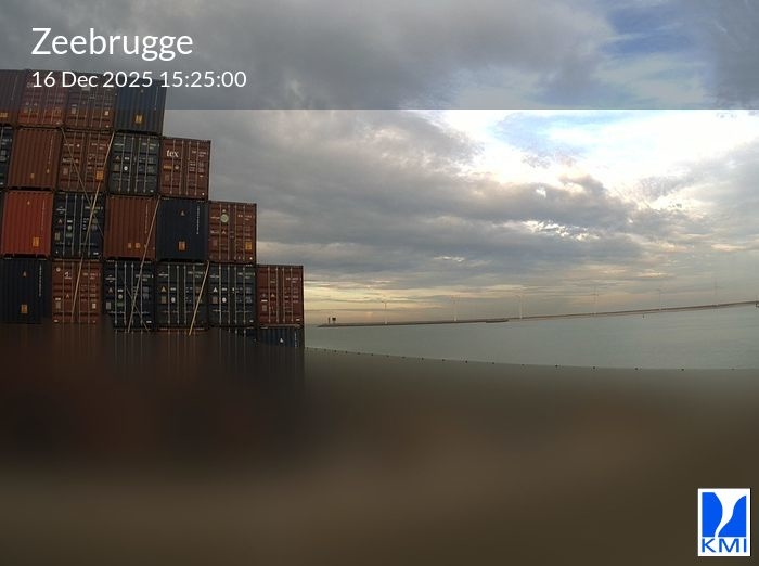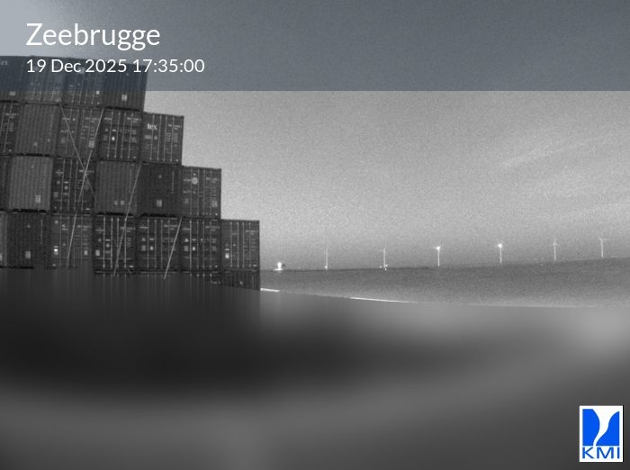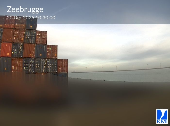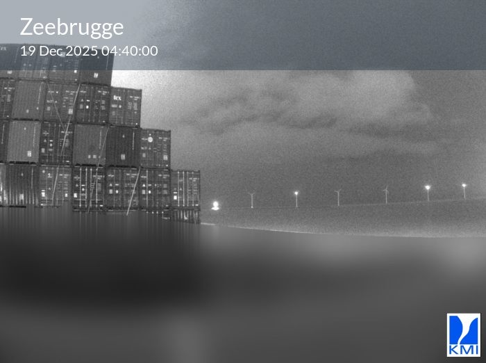 De webcam bevindt zich op de Leopold II-Dam in de haven van Zeebrugge aan de Belgische Kust en is naar het noorden gericht om het rechtstreekse zonlicht tijdens het middaguur te vermijden.