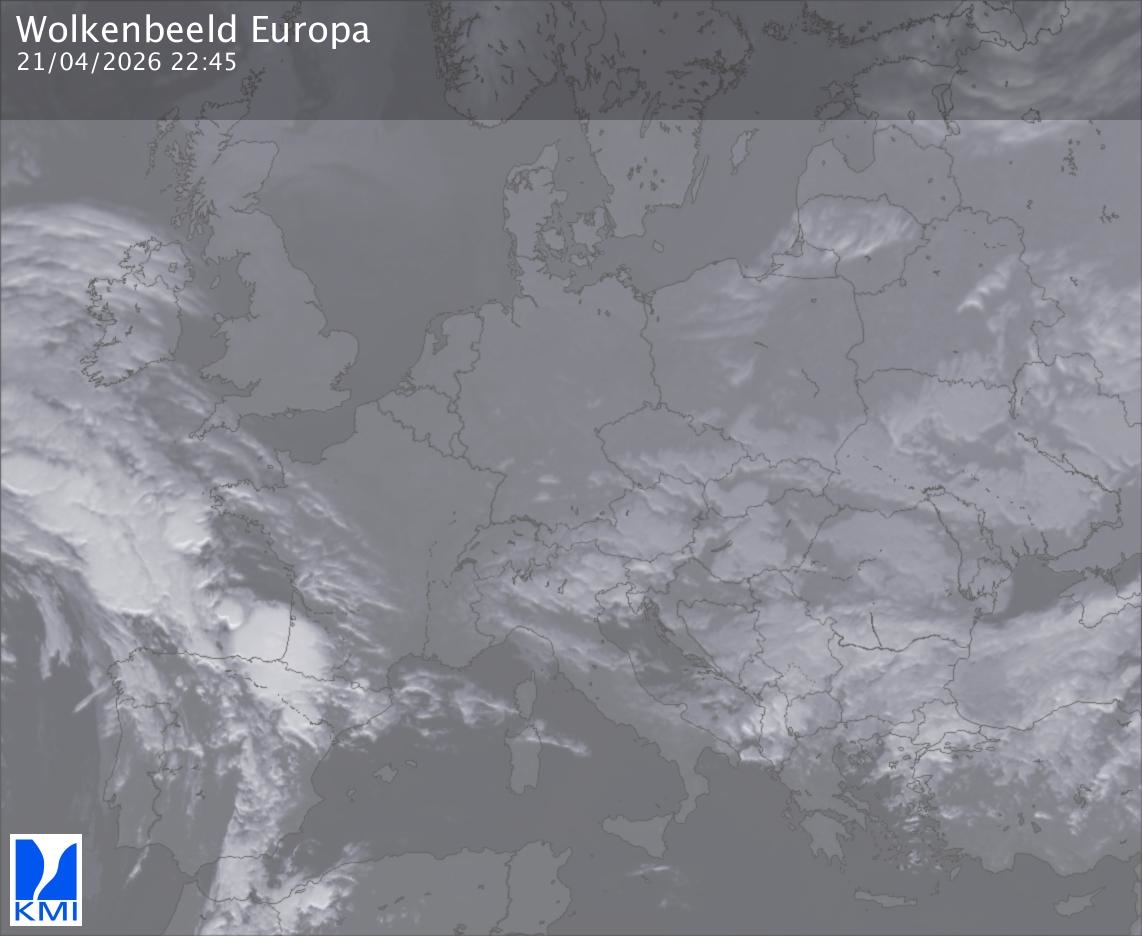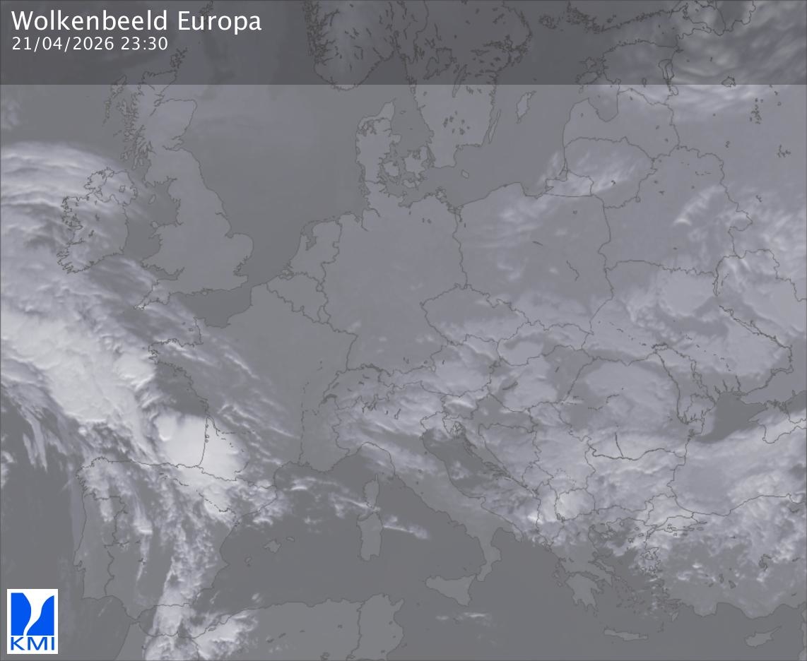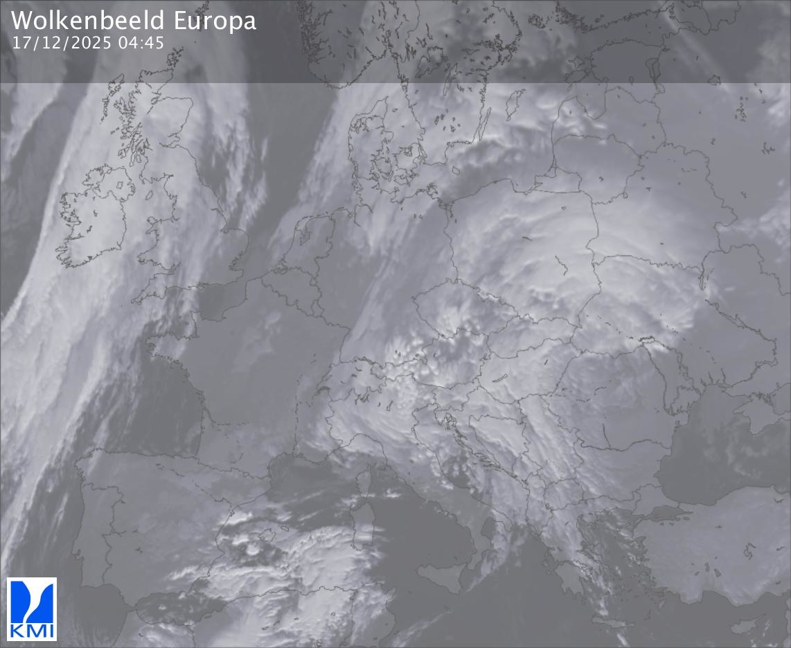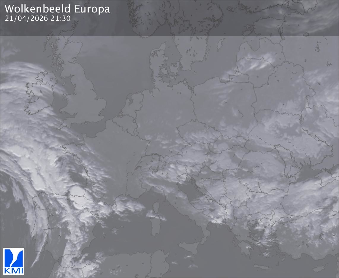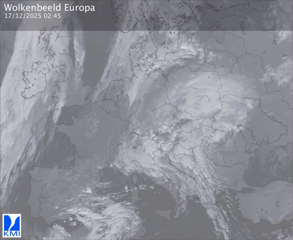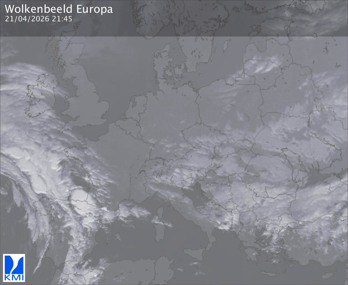 Wolkenbeelden van Europa: een combinatie uit het zichtbare (dag) en infrarode (nacht) spectrum.