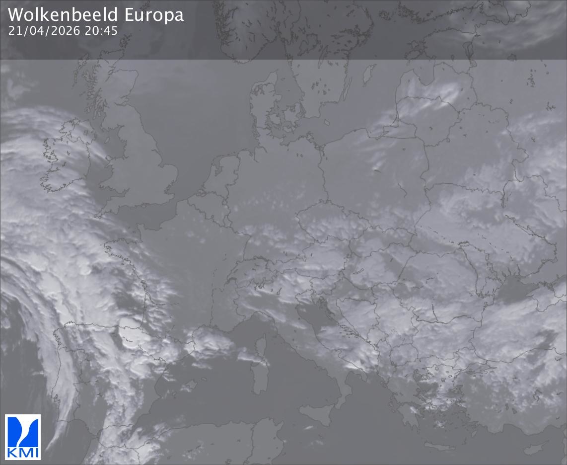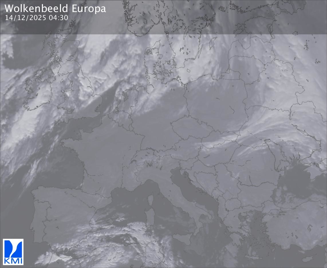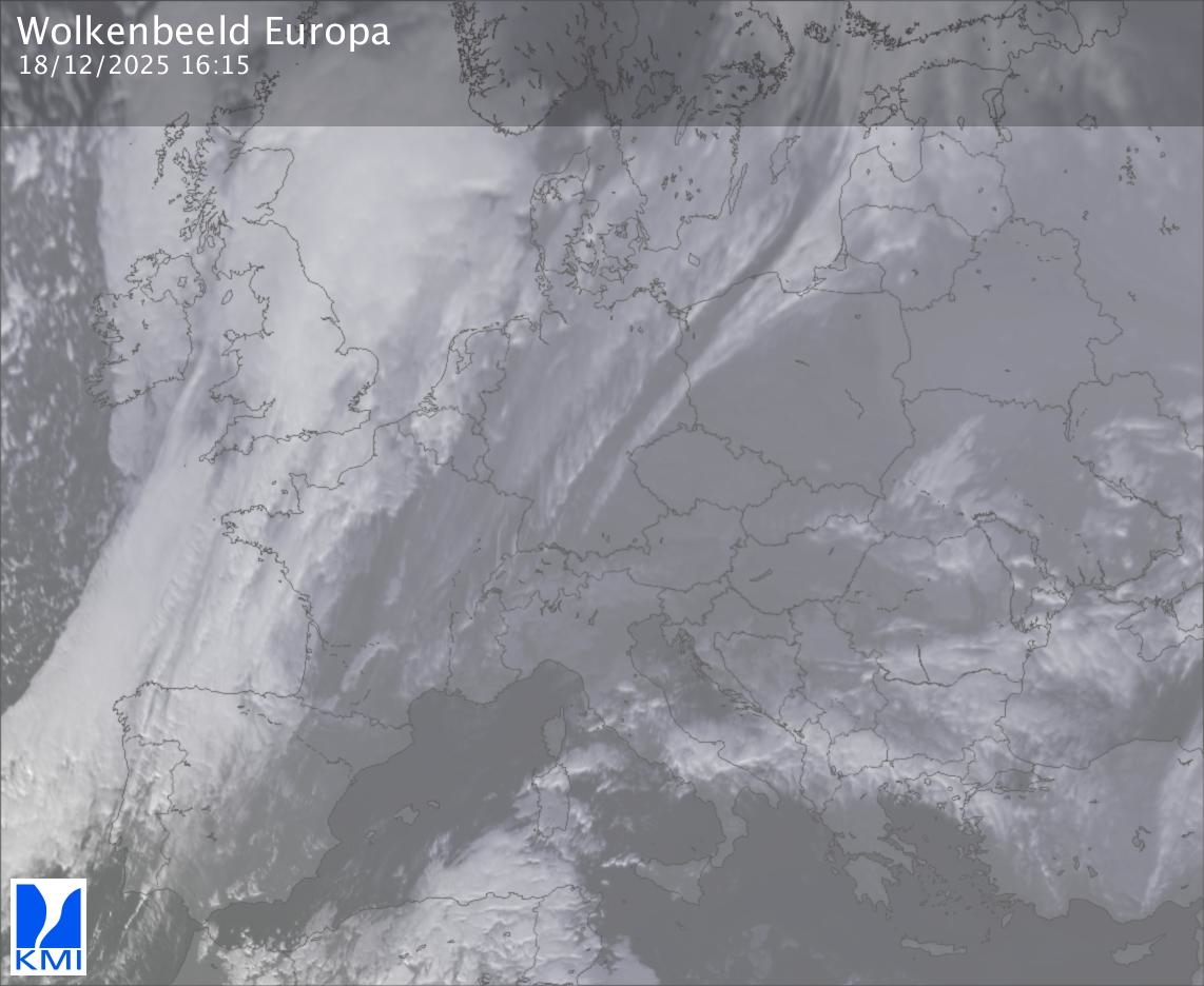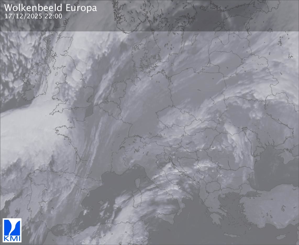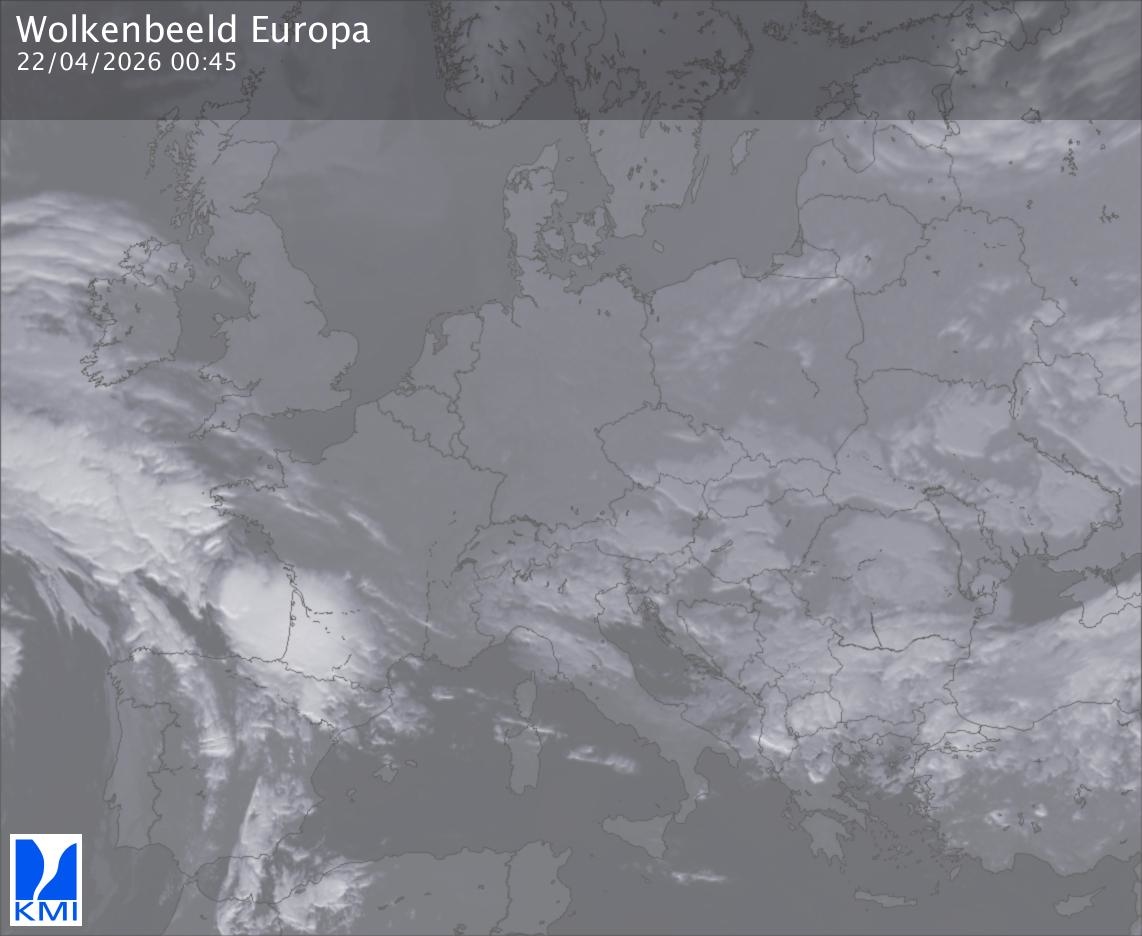 Wolkenbeelden van Europa: een combinatie uit het zichtbare (dag) en infrarode (nacht) spectrum.