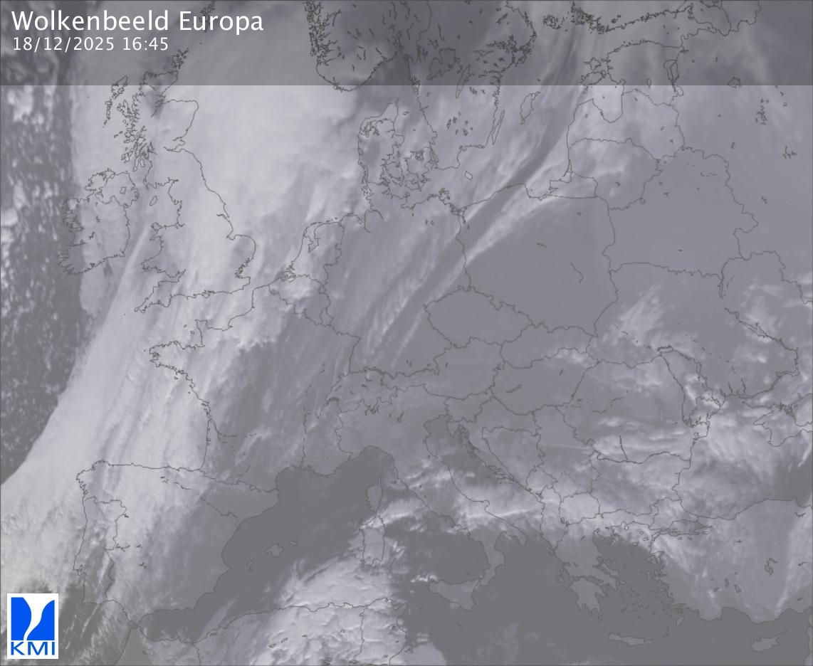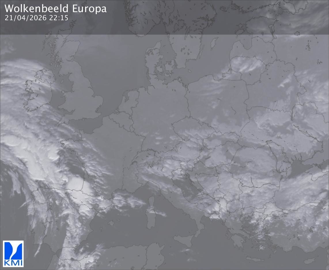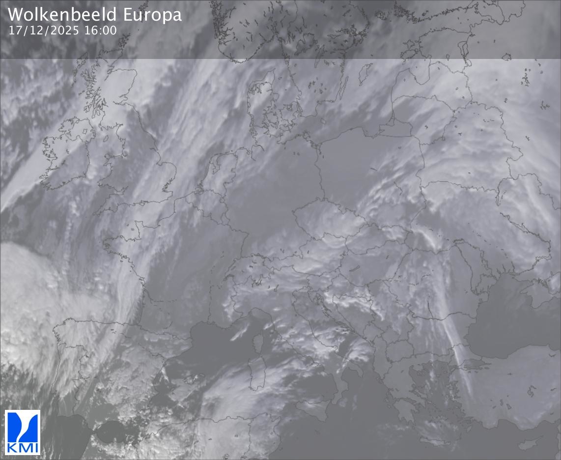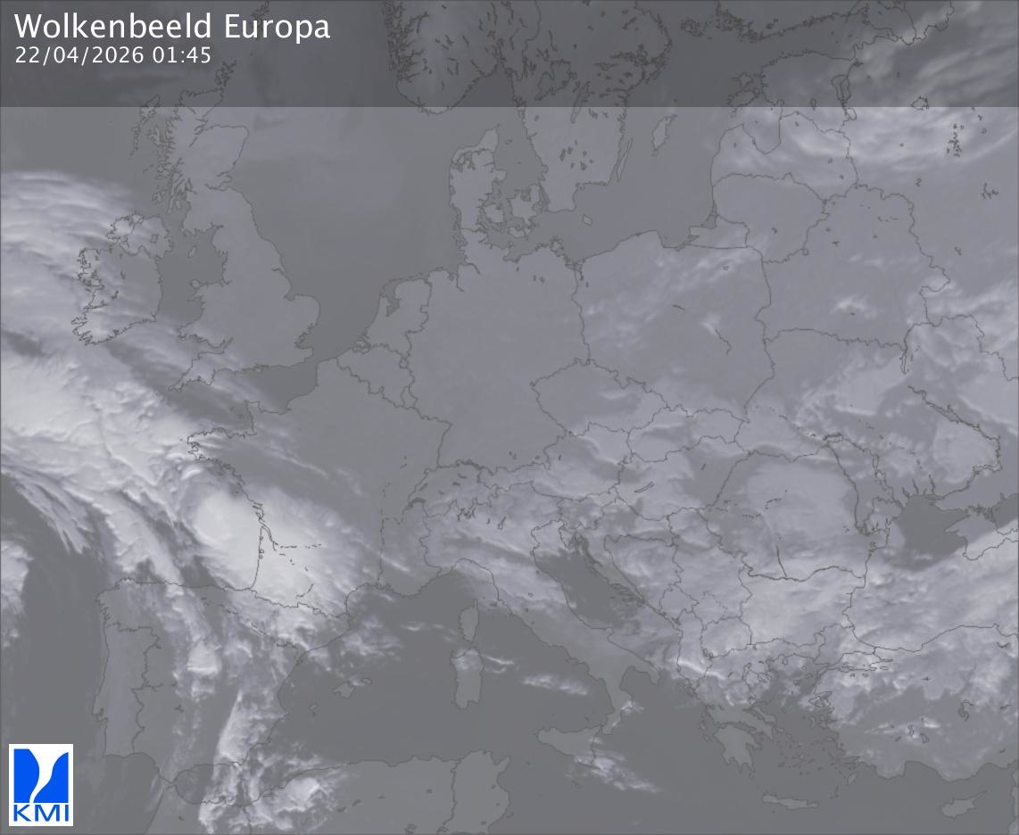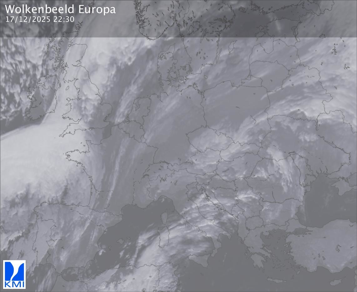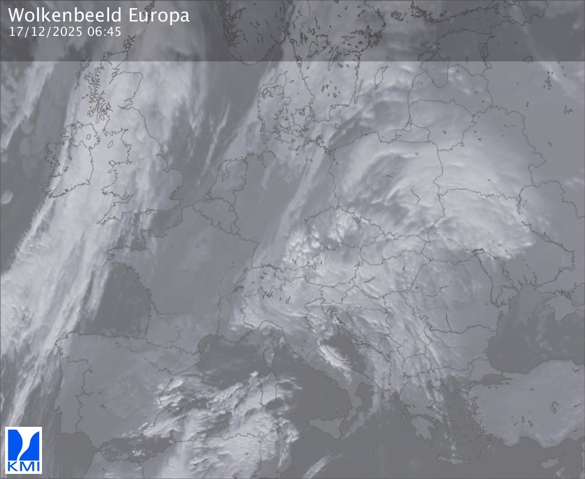 Wolkenbeelden van Europa: een combinatie uit het zichtbare (dag) en infrarode (nacht) spectrum.