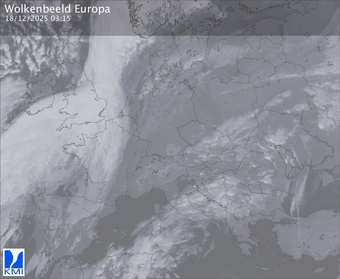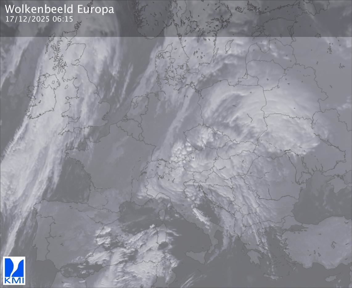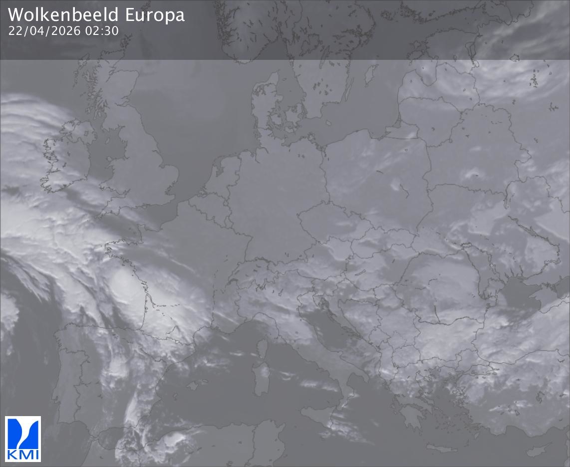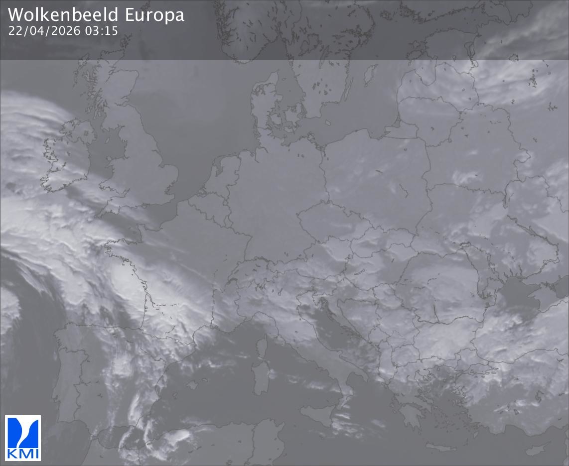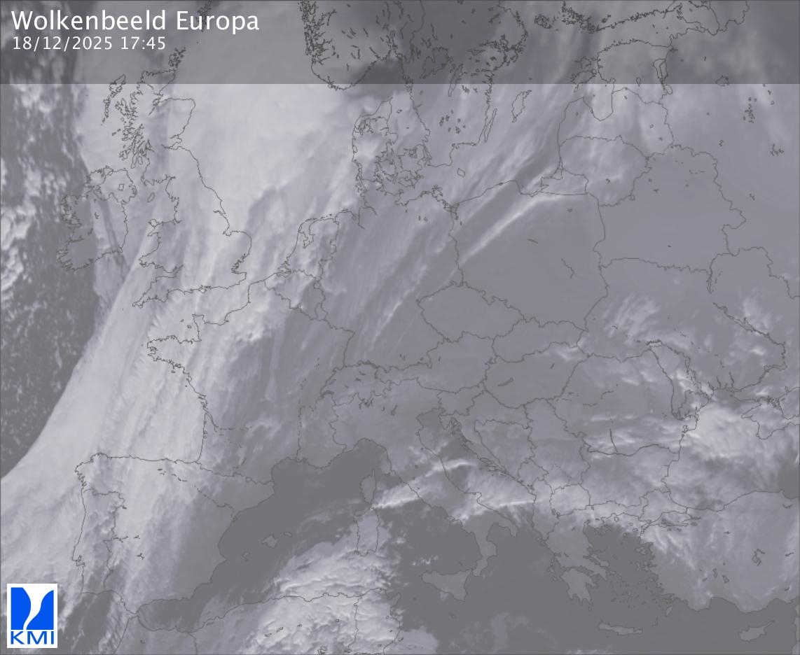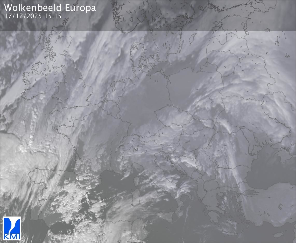 Wolkenbeelden van Europa: een combinatie uit het zichtbare (dag) en infrarode (nacht) spectrum.
