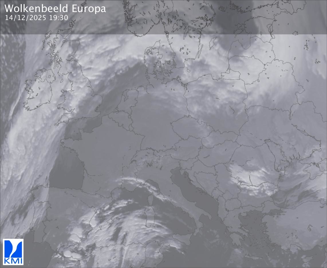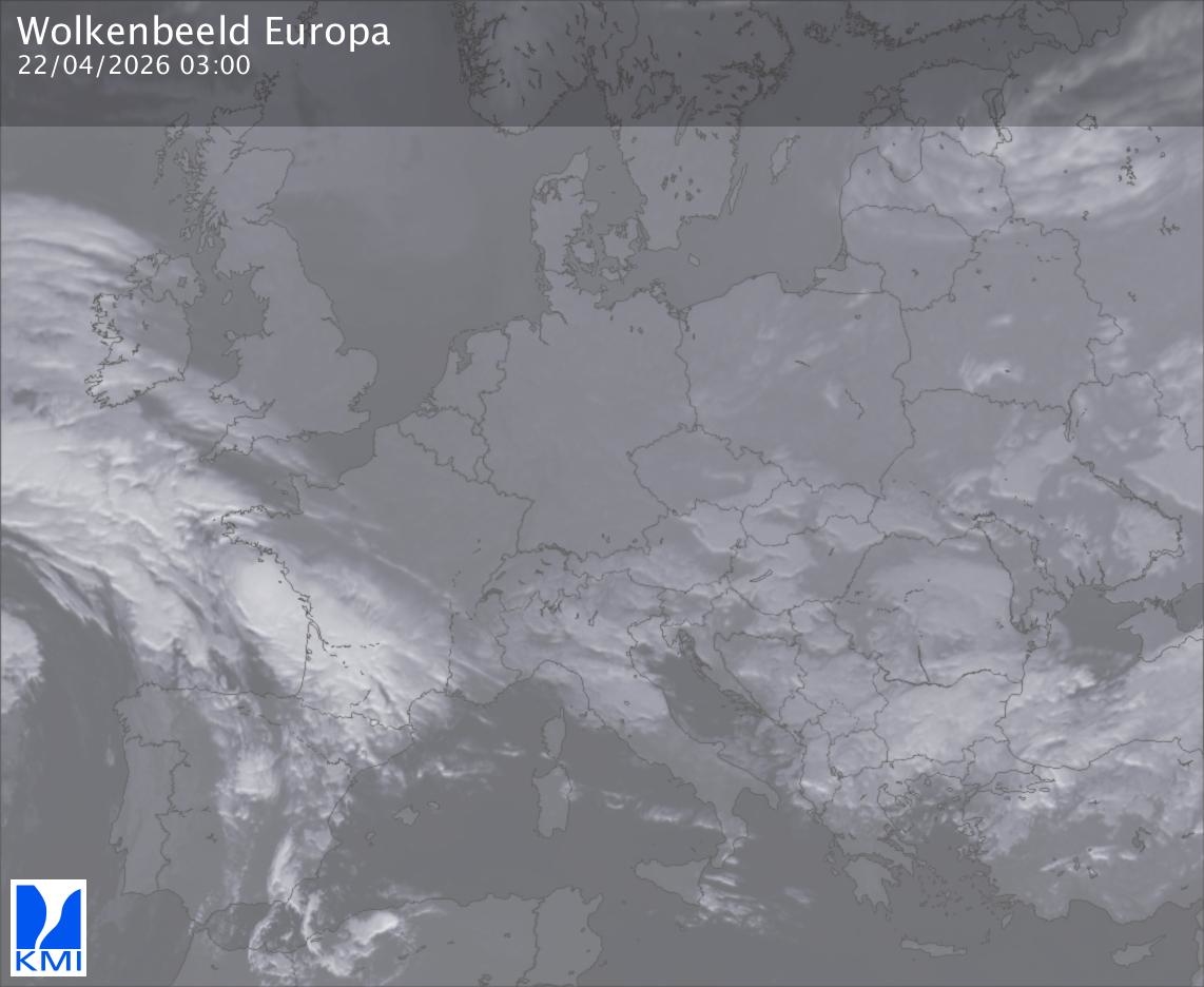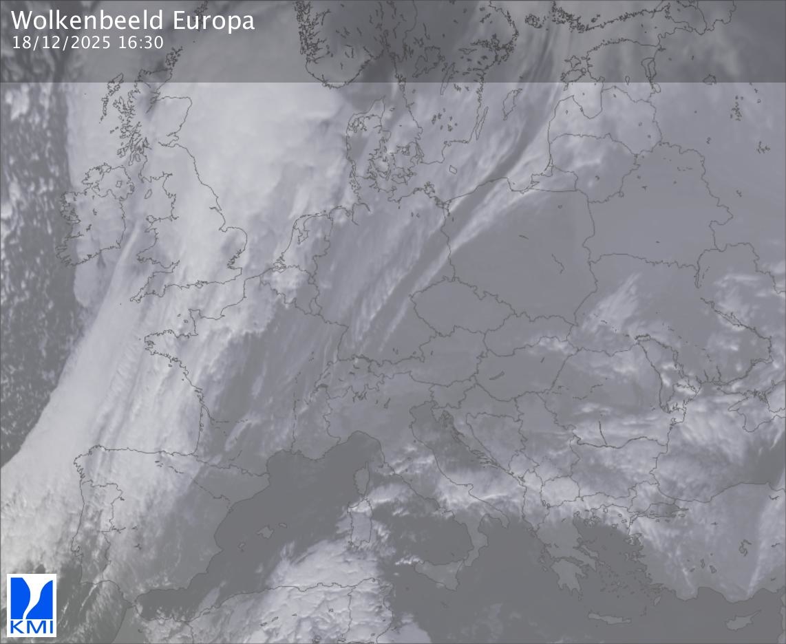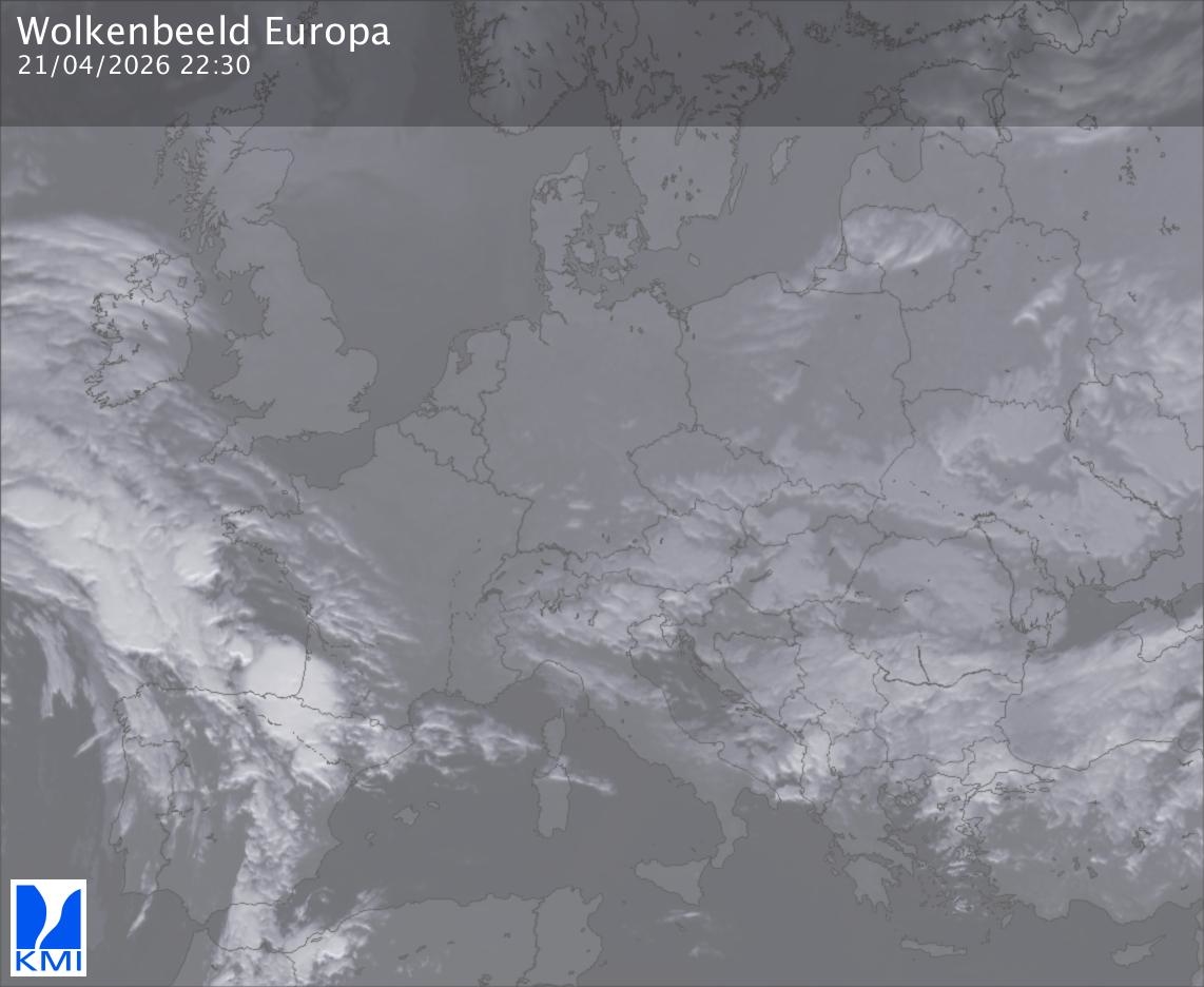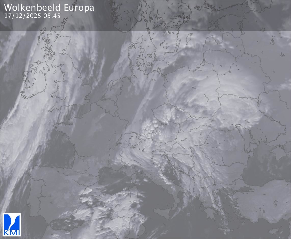 Wolkenbeelden van Europa: een combinatie uit het zichtbare (dag) en infrarode (nacht) spectrum.