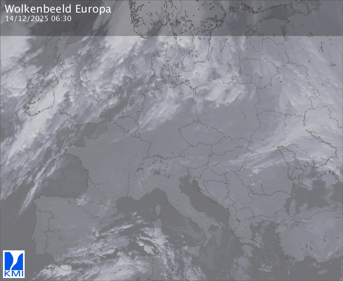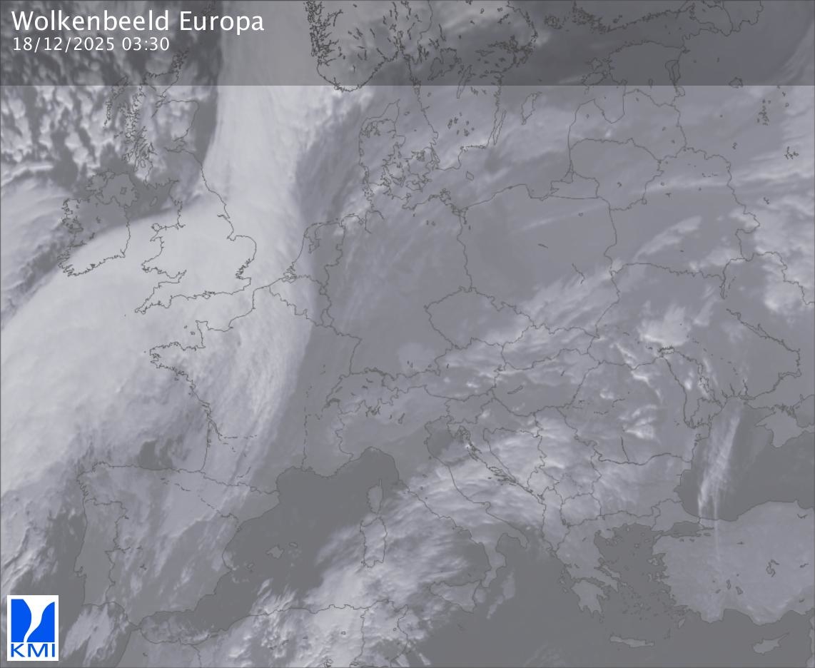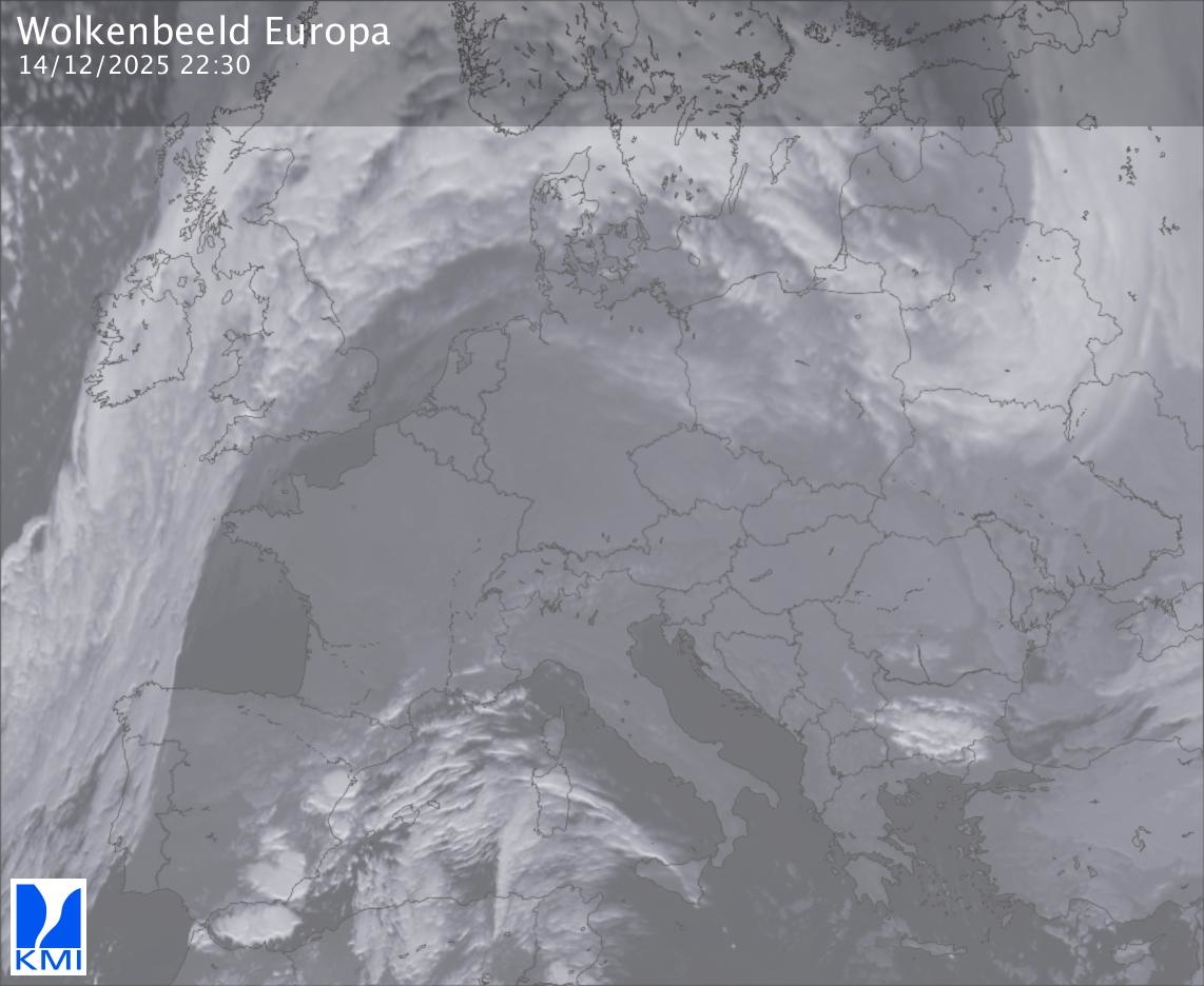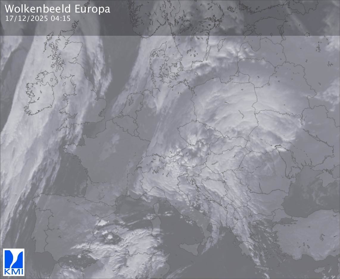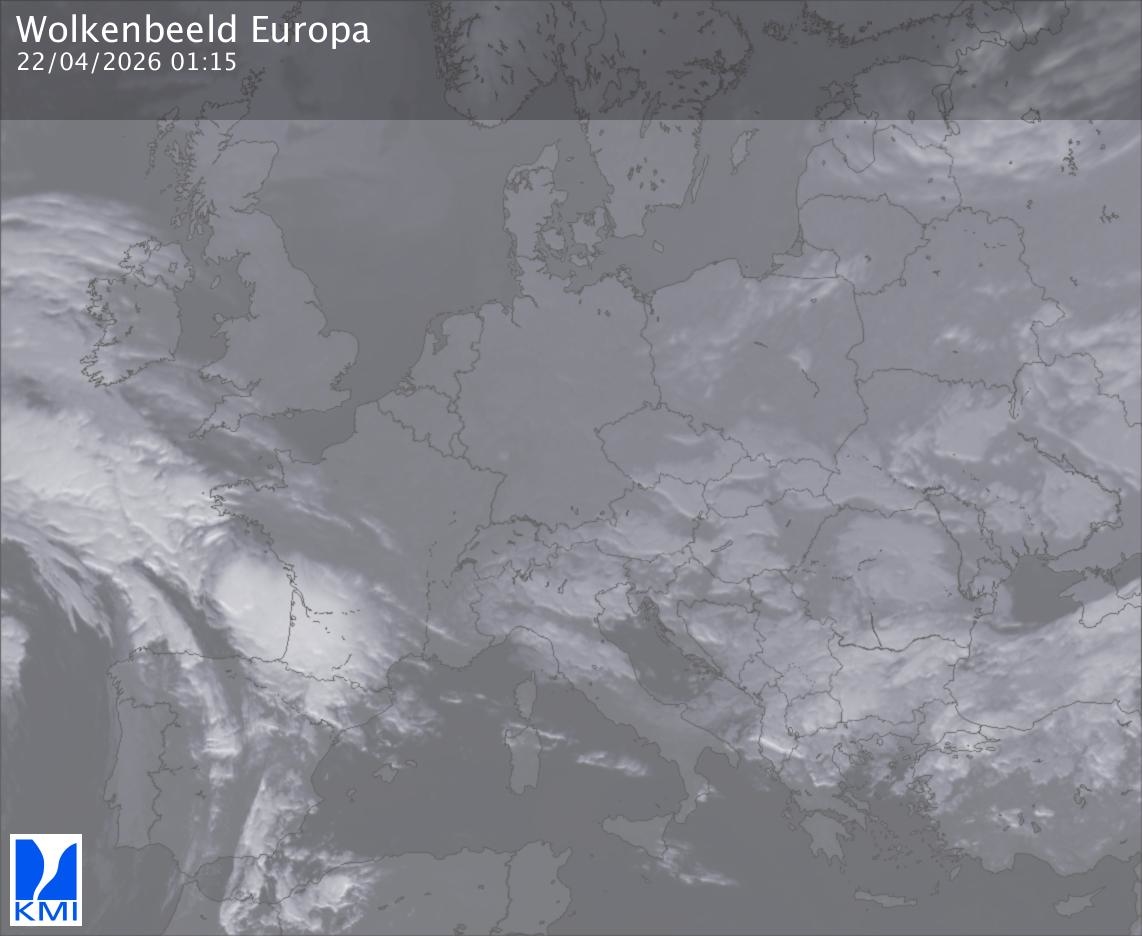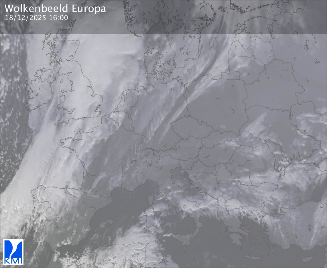 Wolkenbeelden van Europa: een combinatie uit het zichtbare (dag) en infrarode (nacht) spectrum.