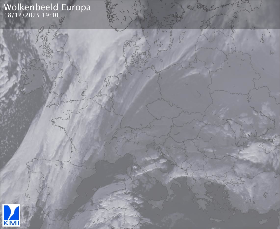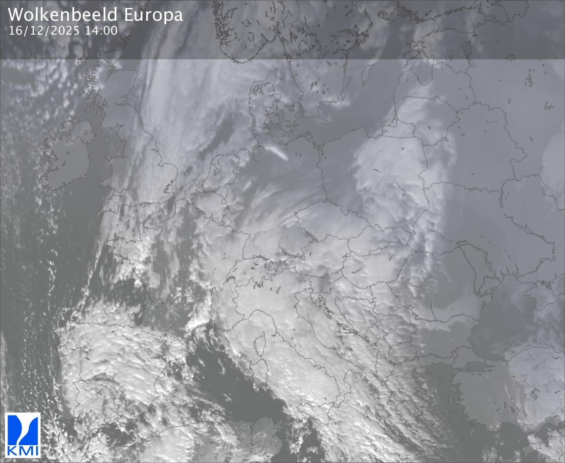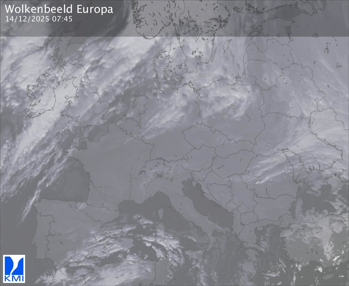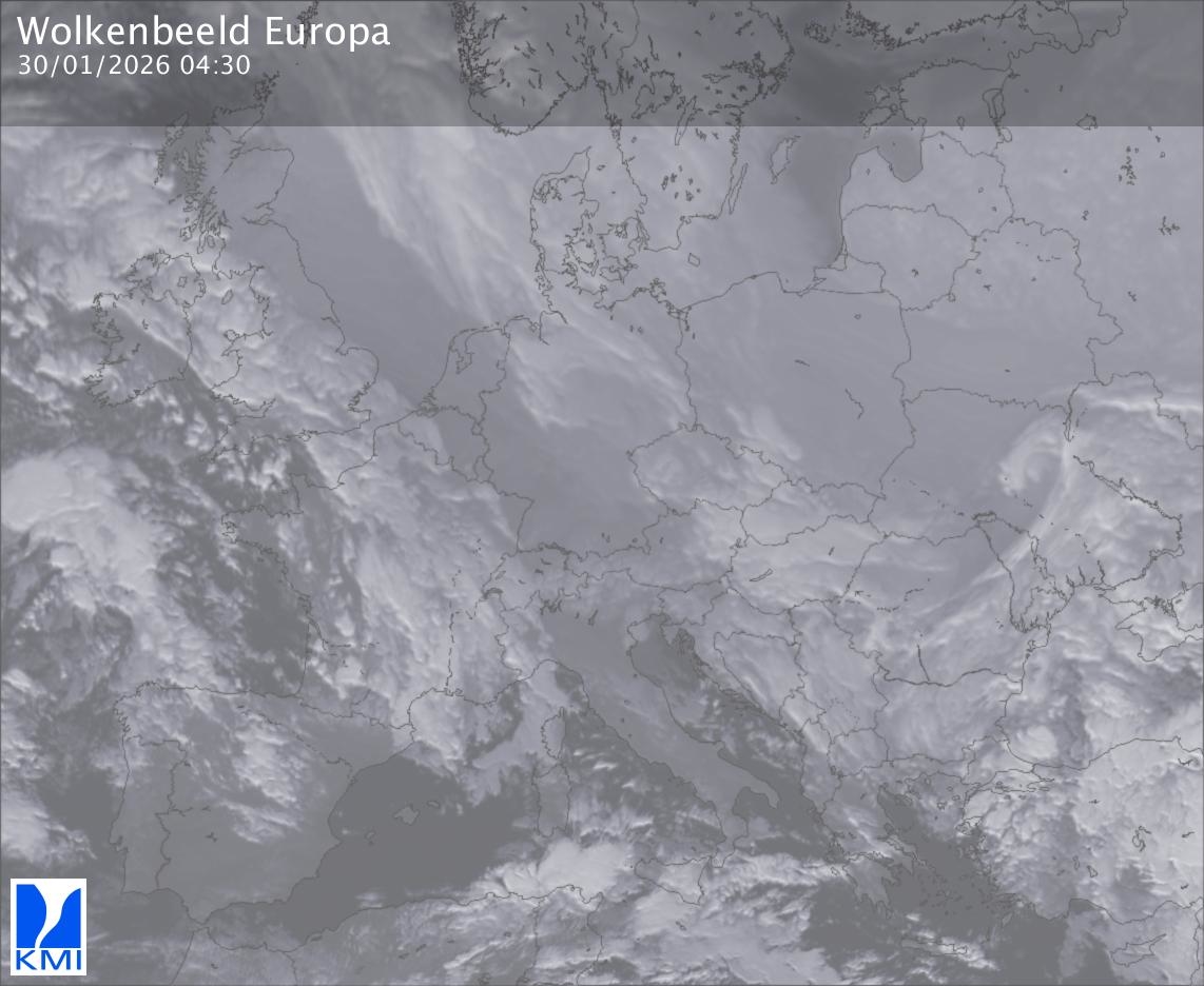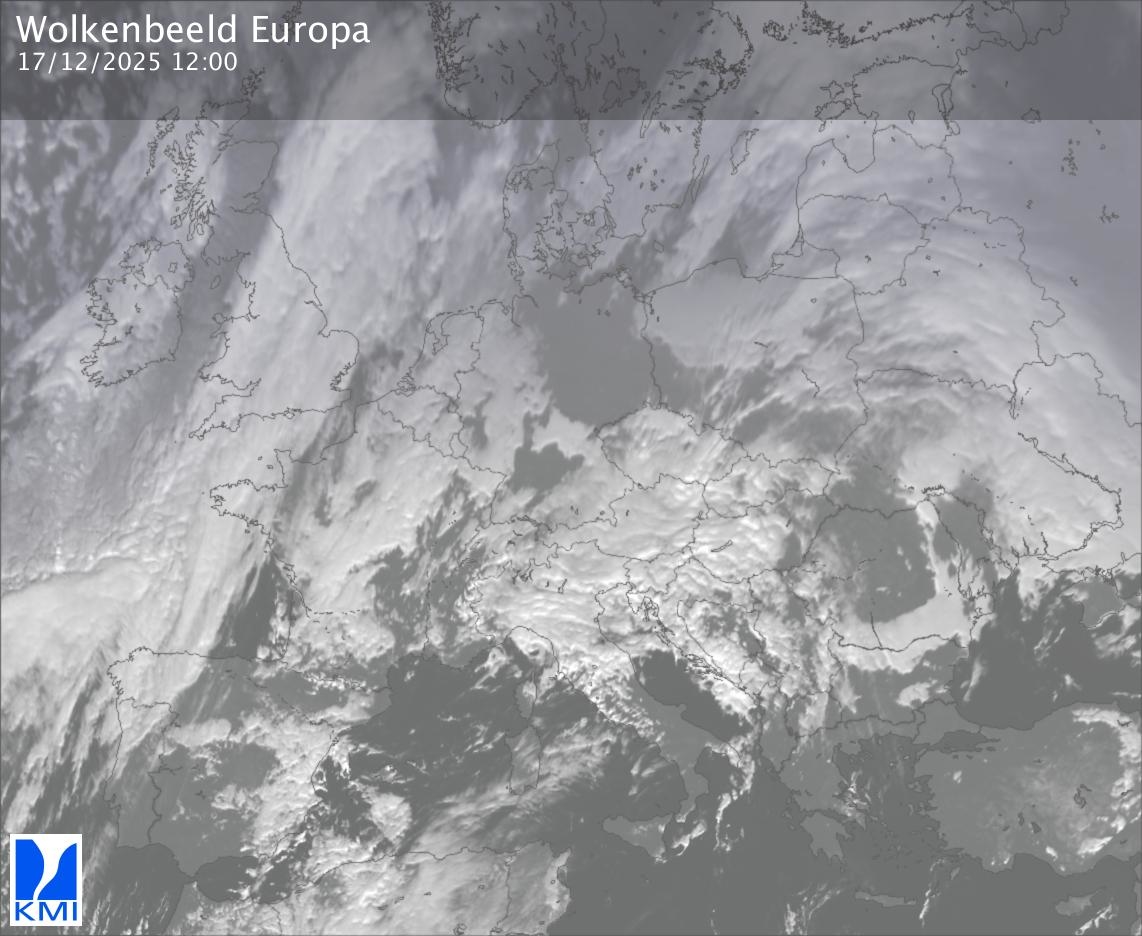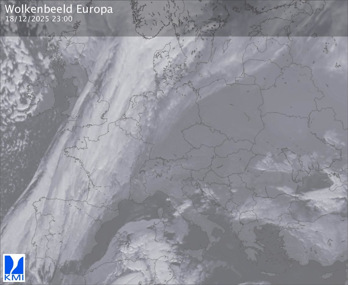 Wolkenbeelden van Europa: een combinatie uit het zichtbare (dag) en infrarode (nacht) spectrum.