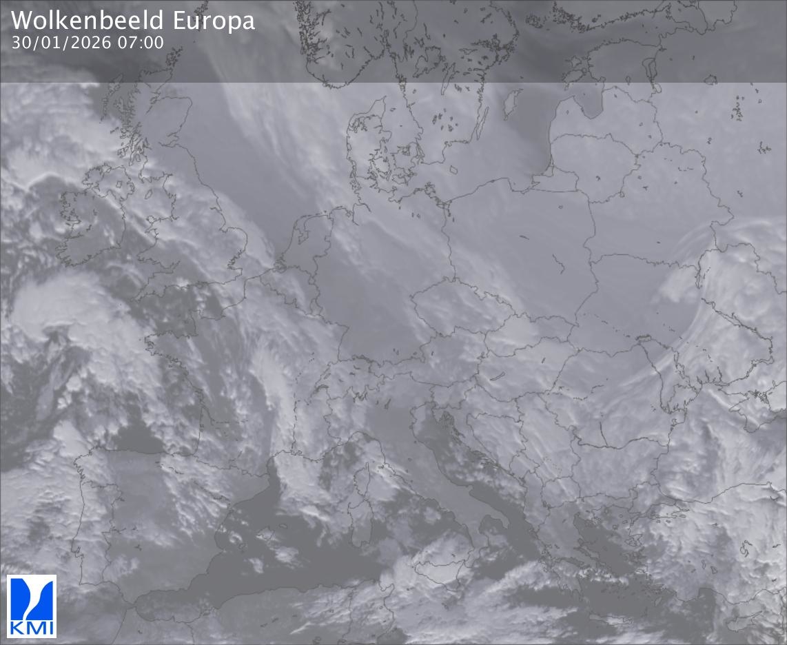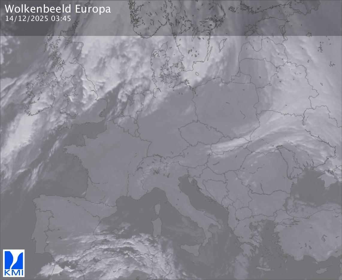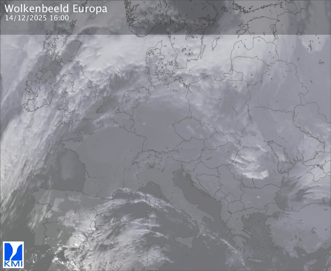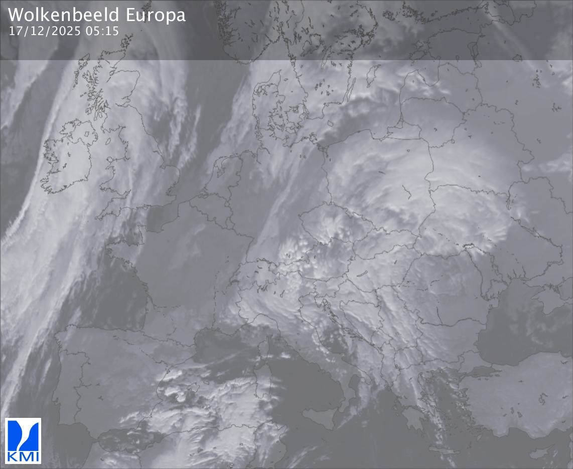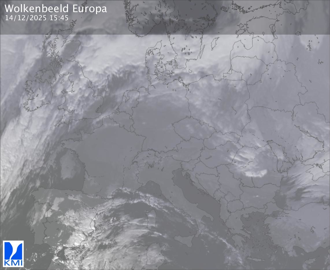Wolkenbeelden van Europa: een combinatie uit het zichtbare (dag) en infrarode (nacht) spectrum.