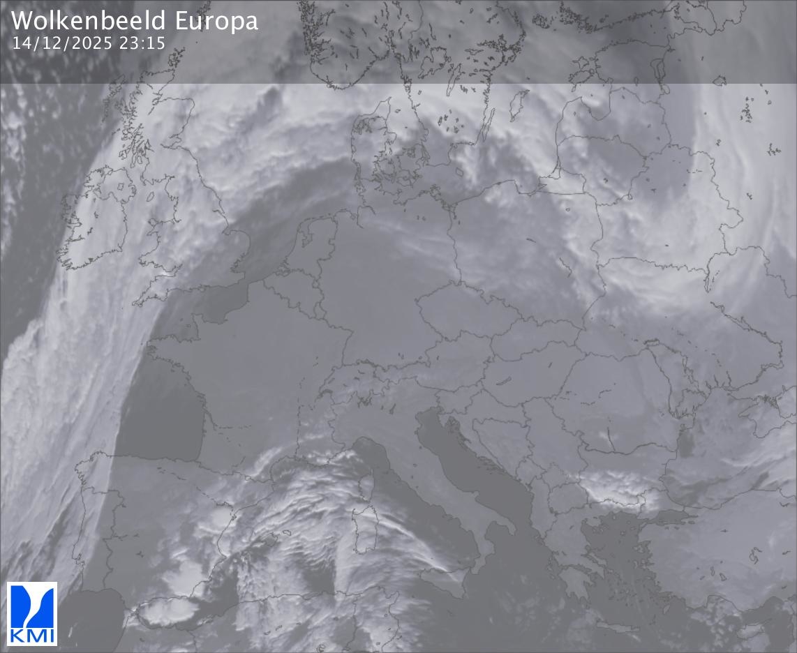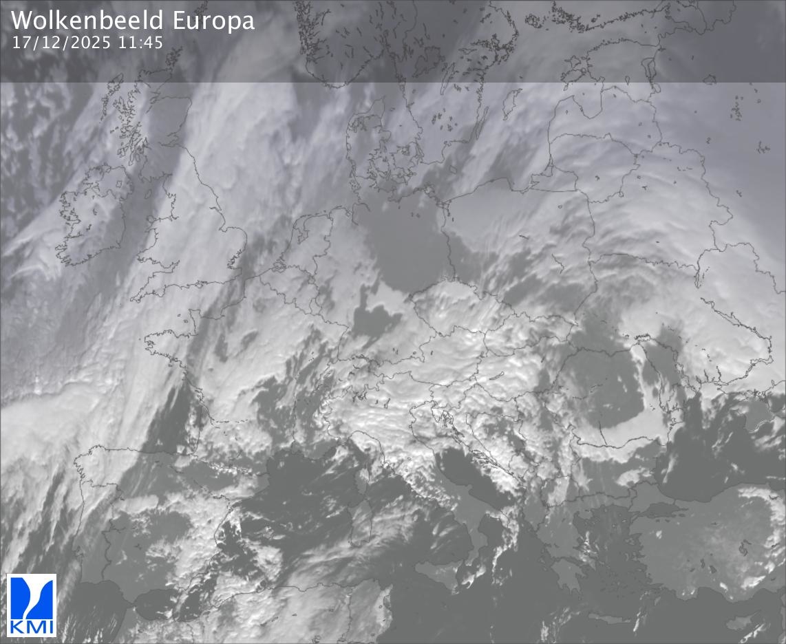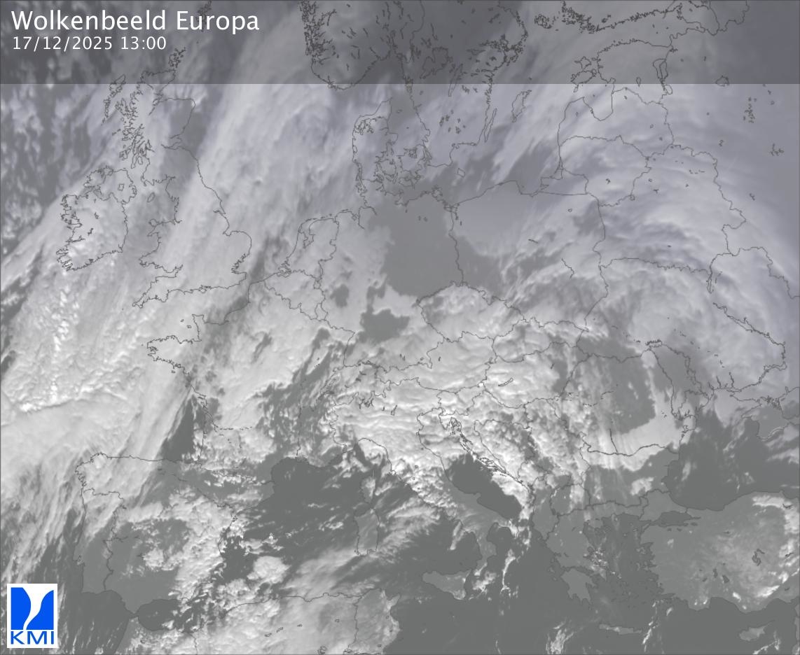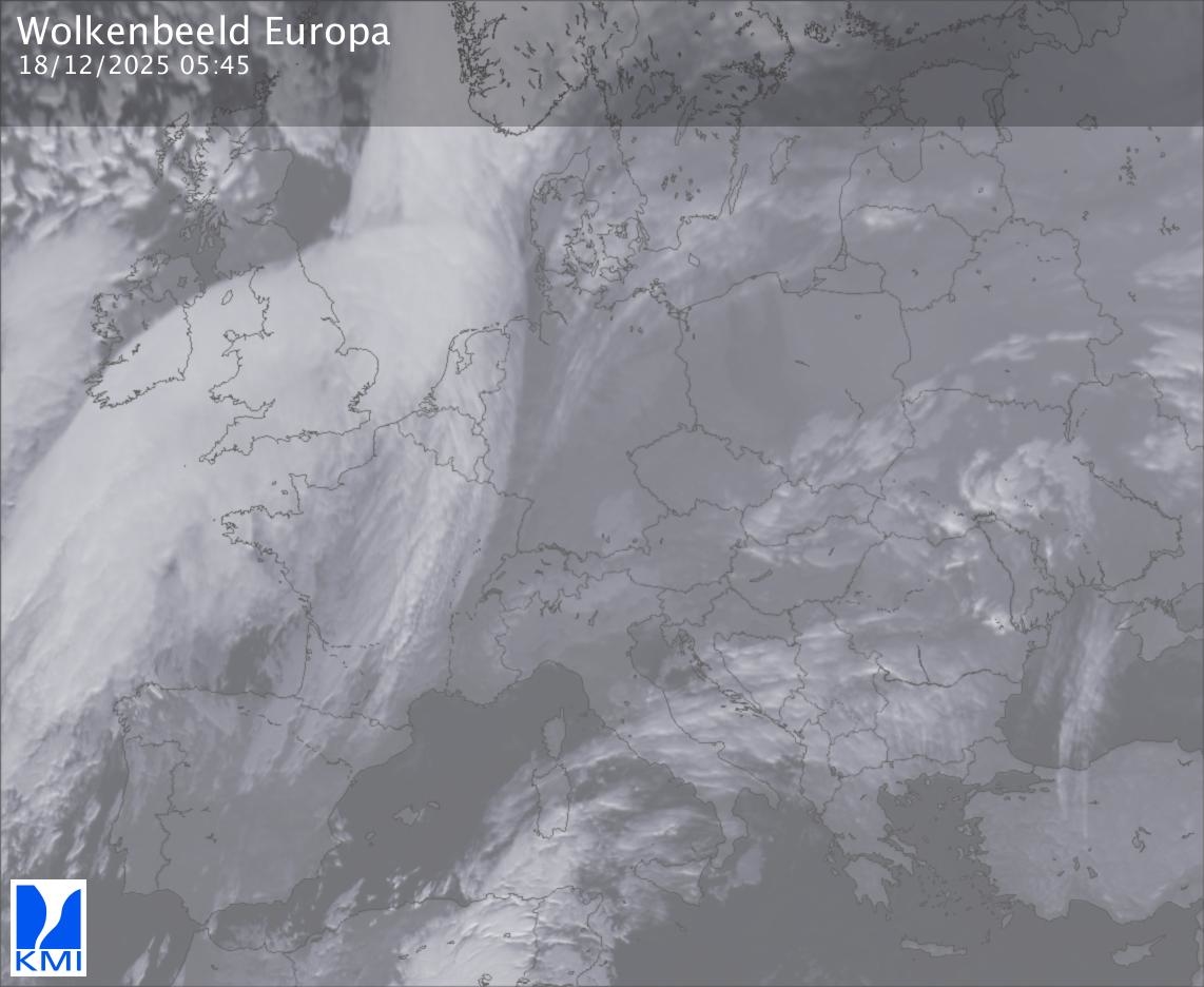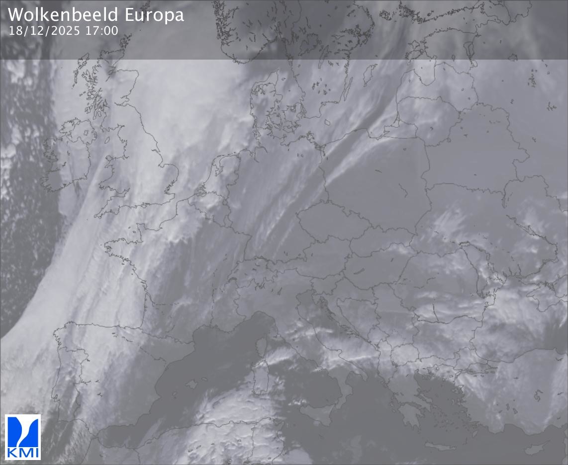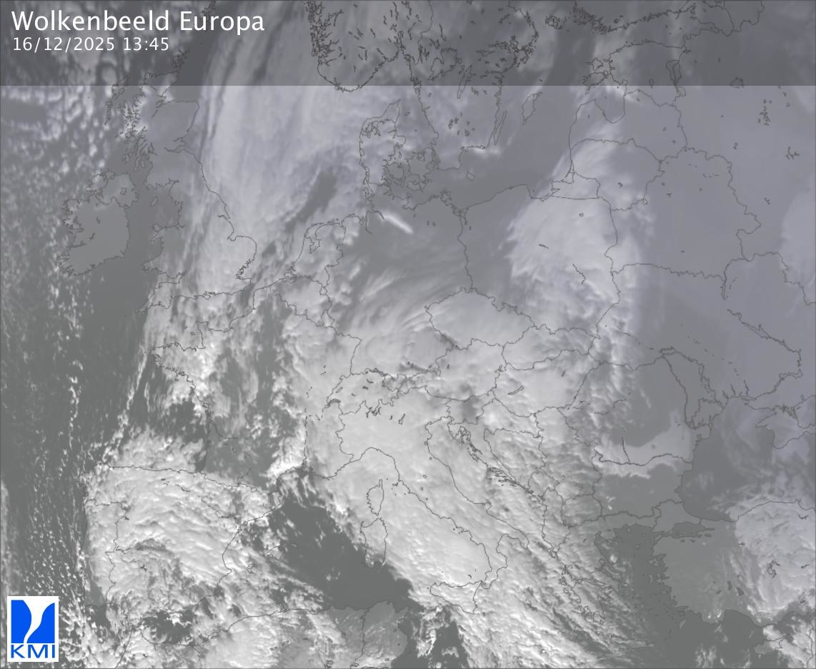 Wolkenbeelden van Europa: een combinatie uit het zichtbare (dag) en infrarode (nacht) spectrum.