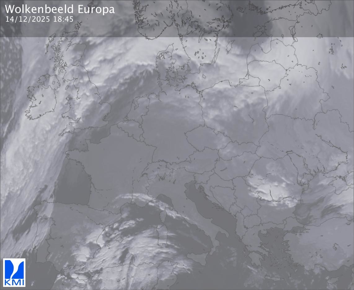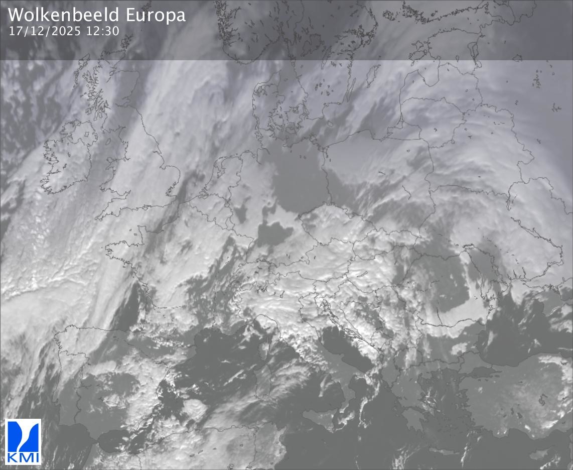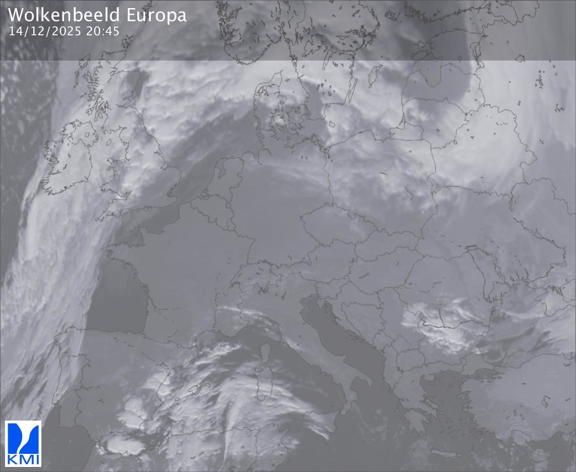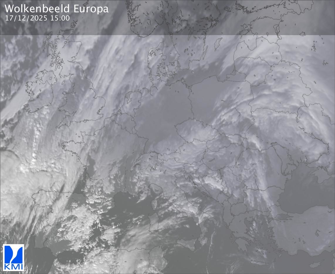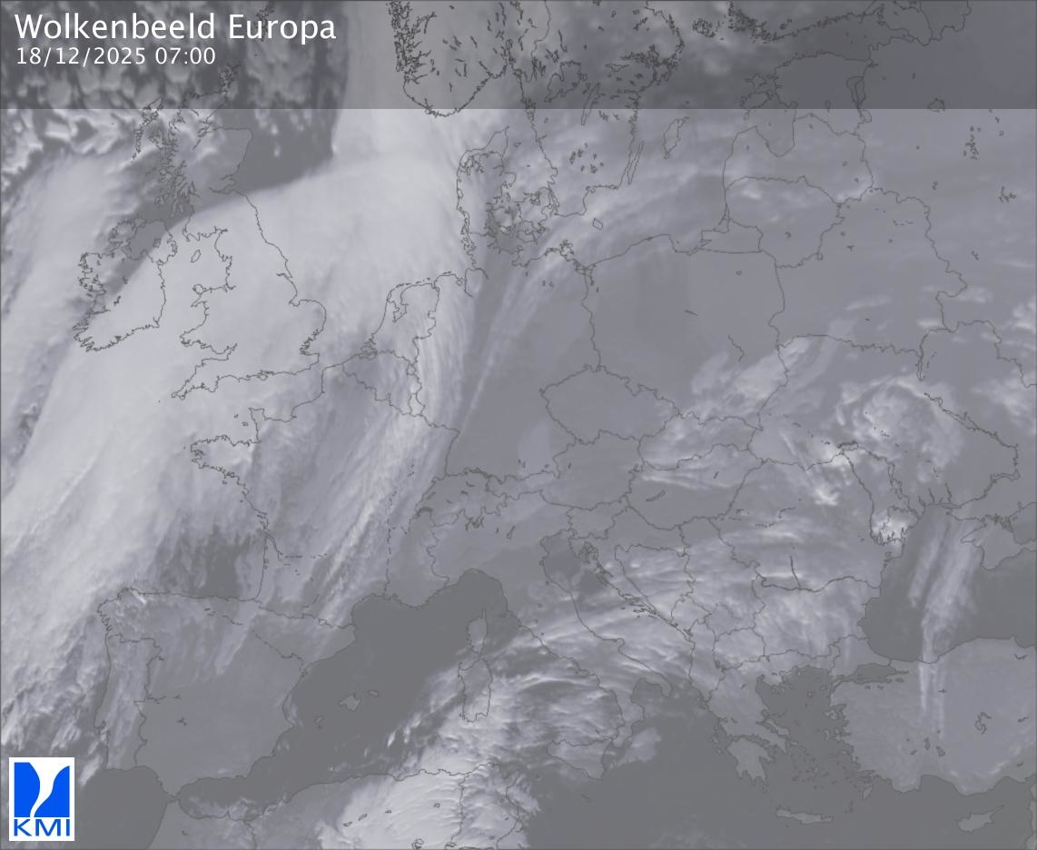 Wolkenbeelden van Europa: een combinatie uit het zichtbare (dag) en infrarode (nacht) spectrum.