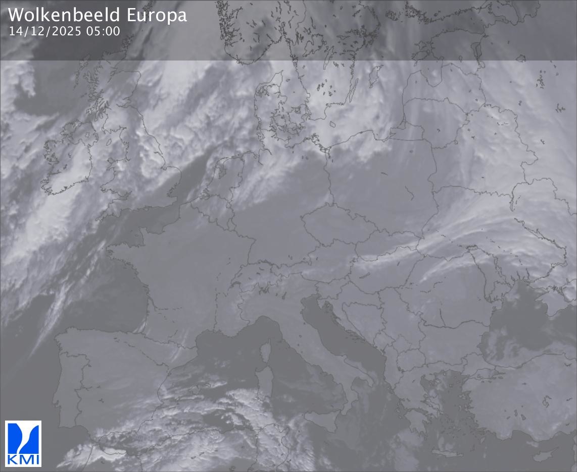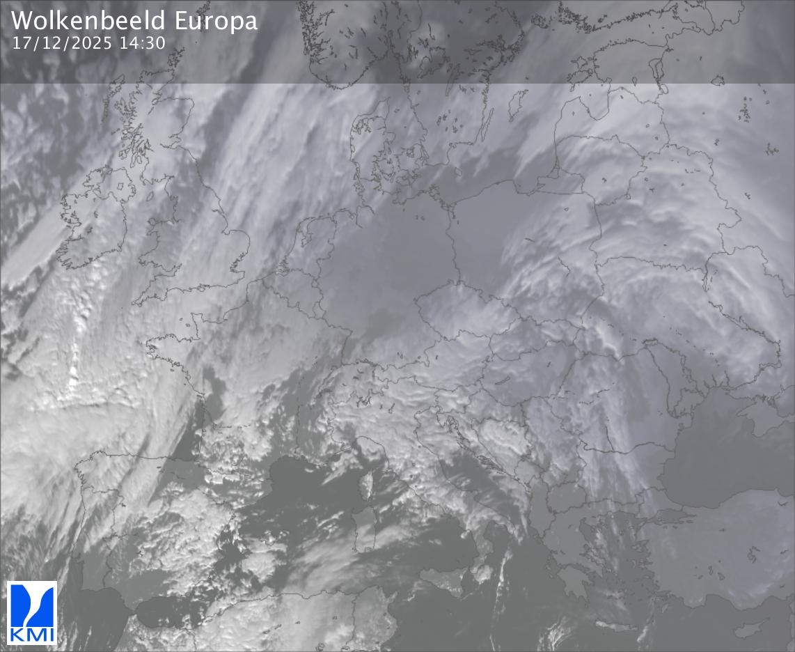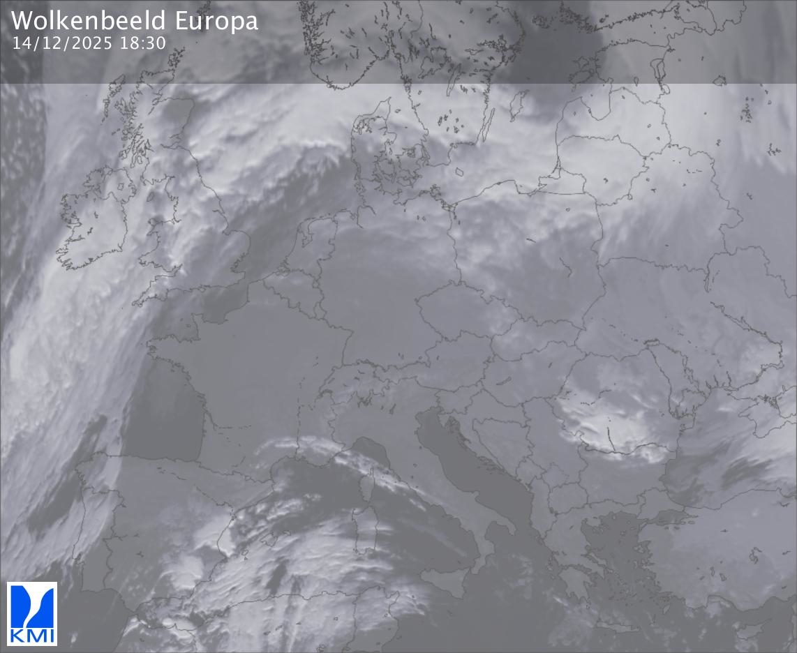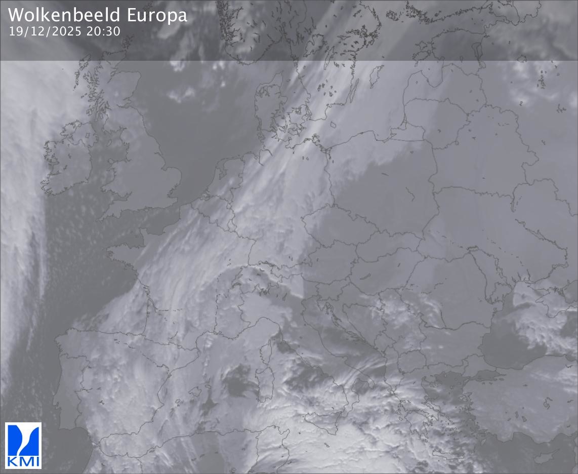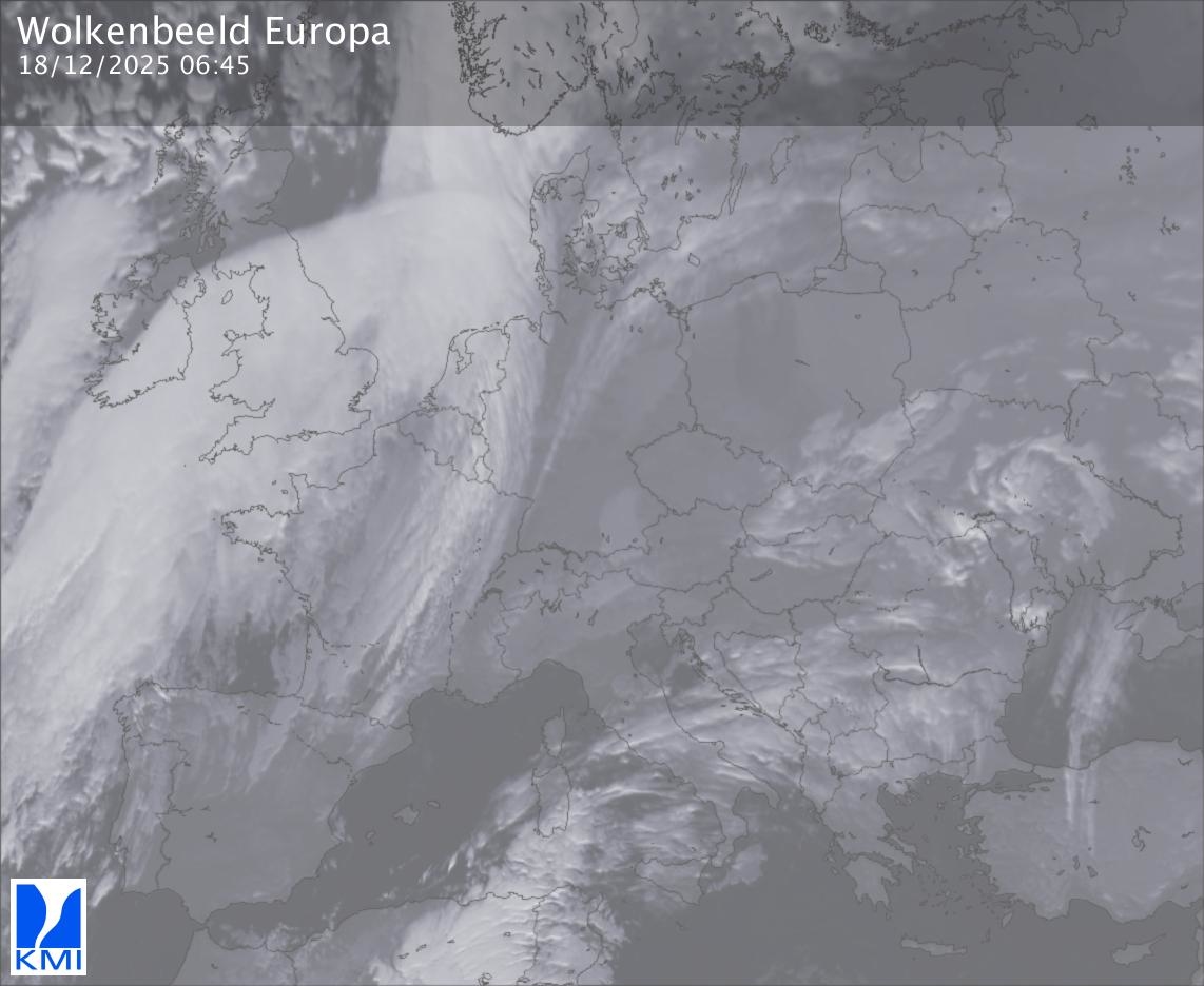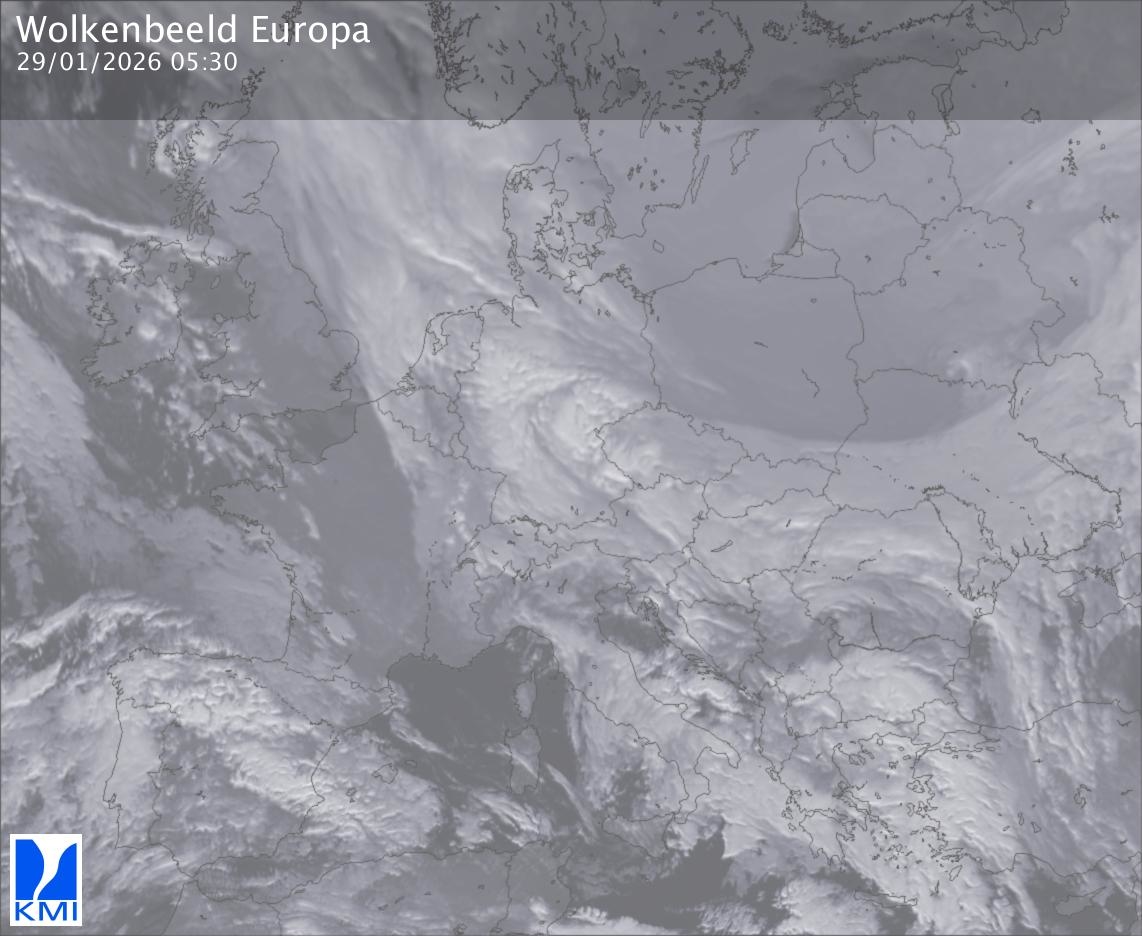 Wolkenbeelden van Europa: een combinatie uit het zichtbare (dag) en infrarode (nacht) spectrum.