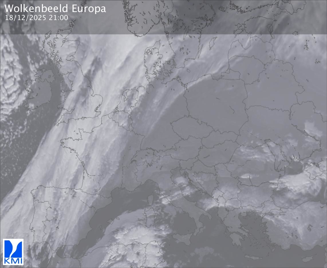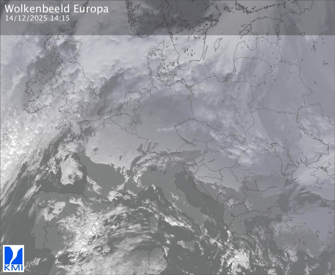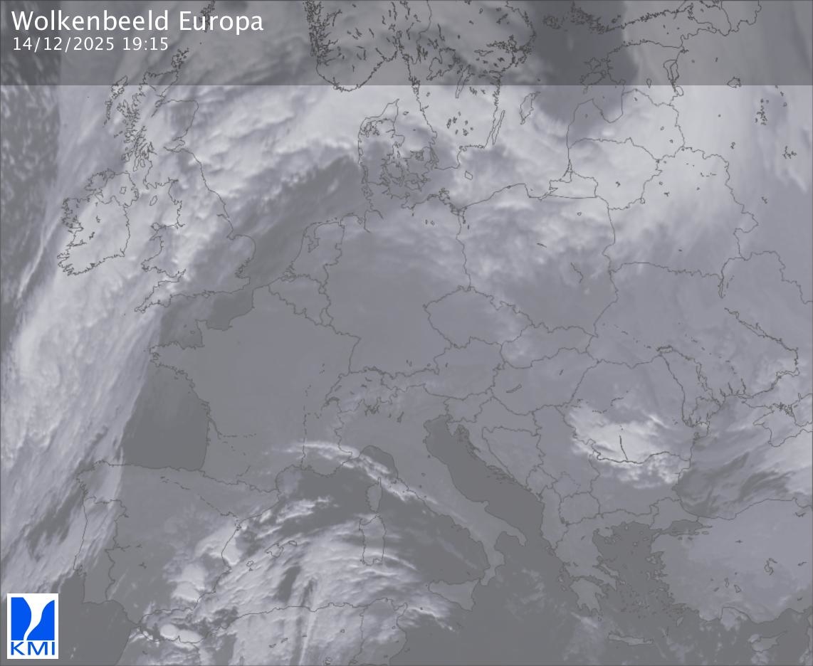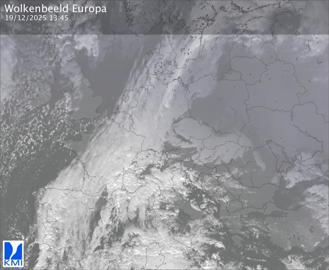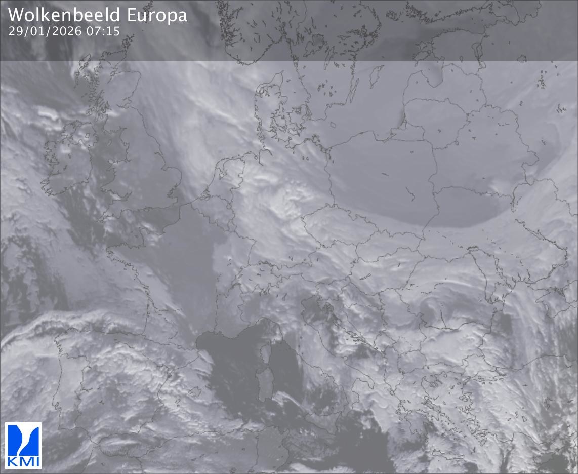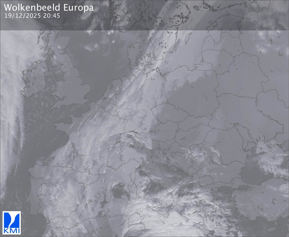 Wolkenbeelden van Europa: een combinatie uit het zichtbare (dag) en infrarode (nacht) spectrum.
