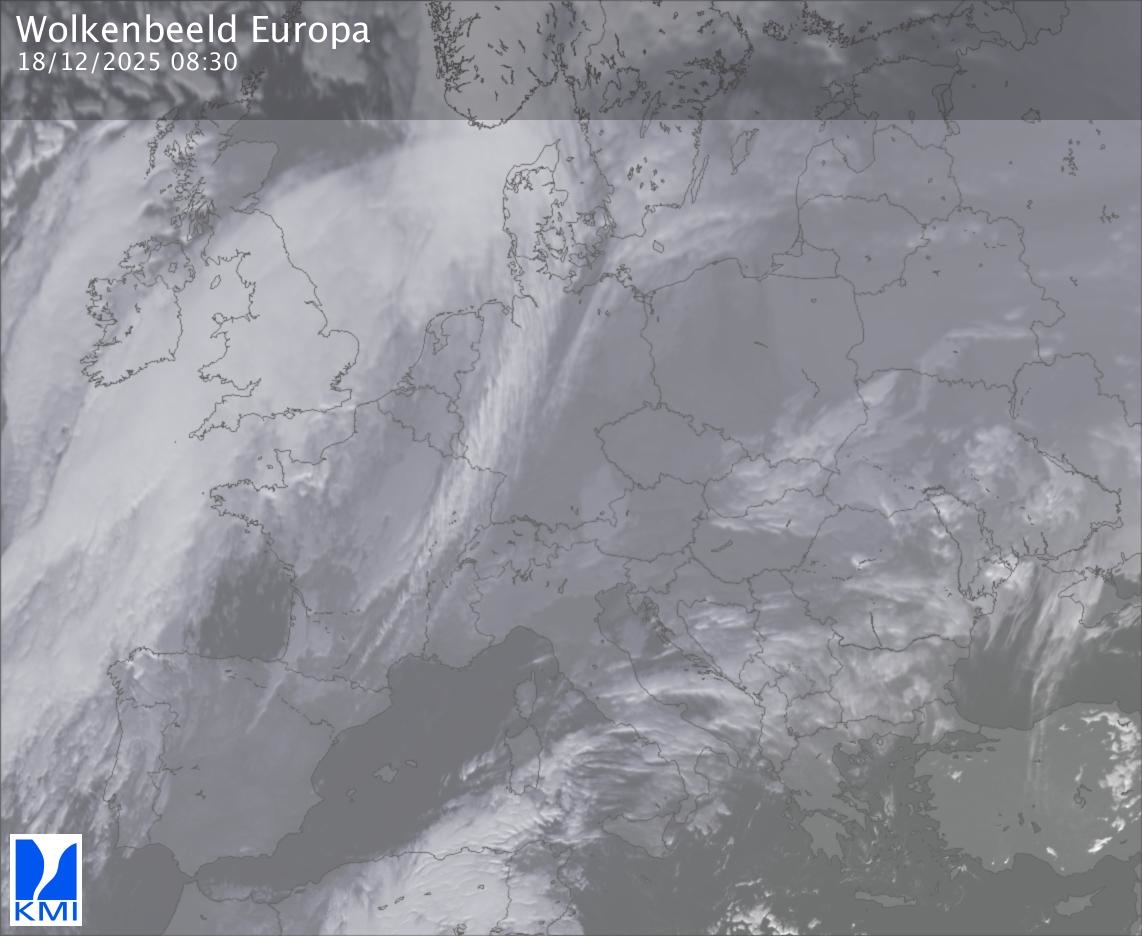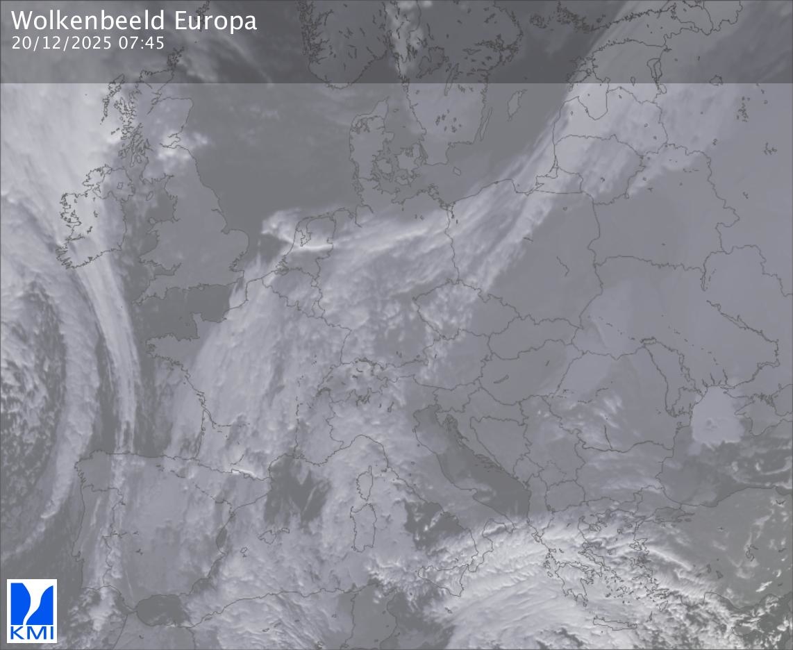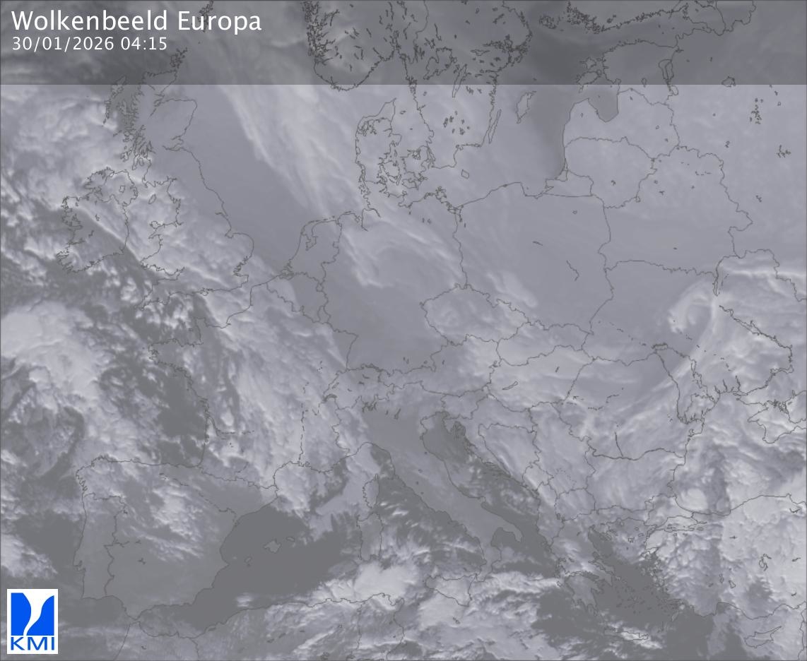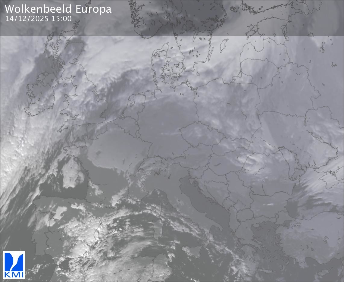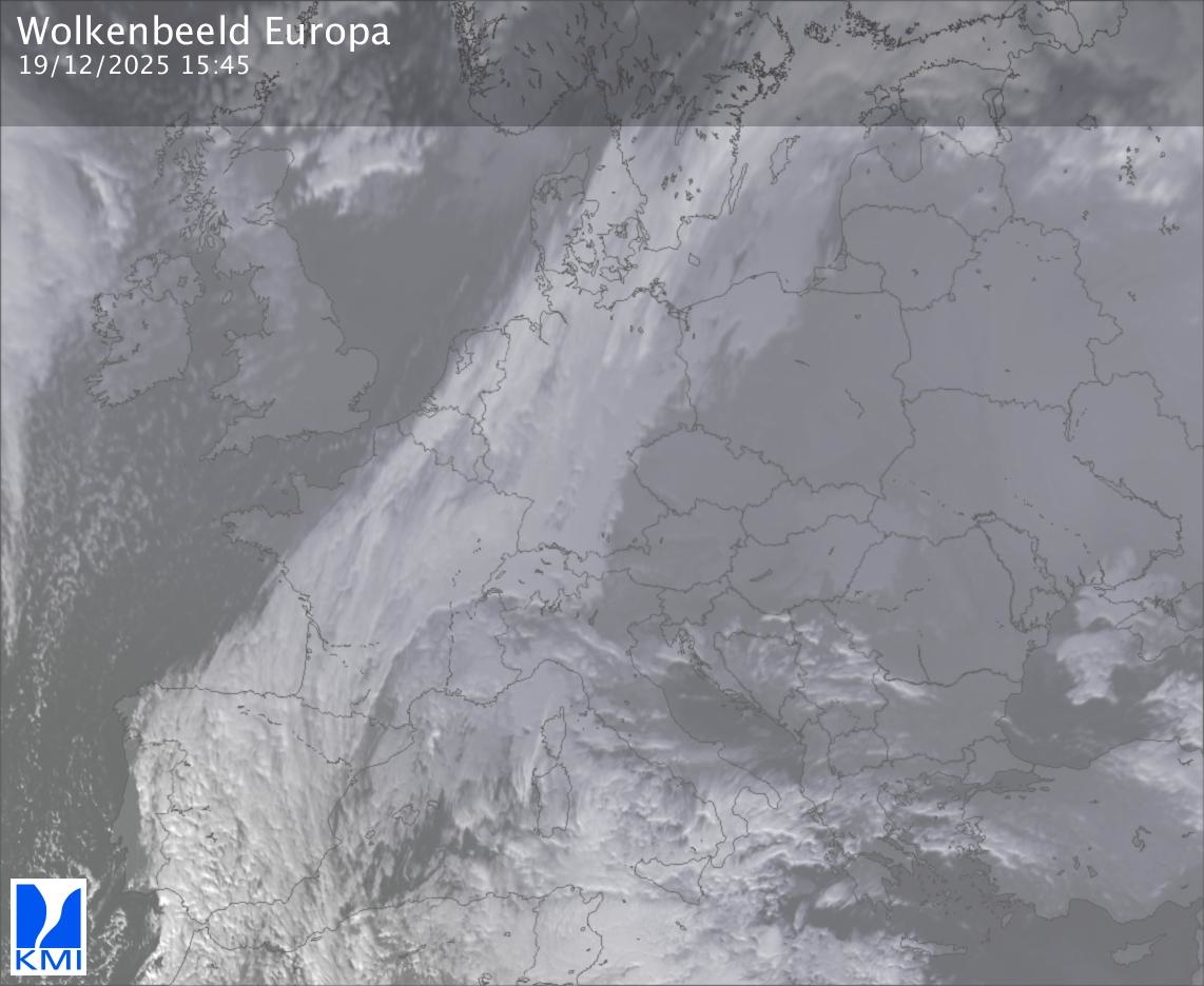 Wolkenbeelden van Europa: een combinatie uit het zichtbare (dag) en infrarode (nacht) spectrum.