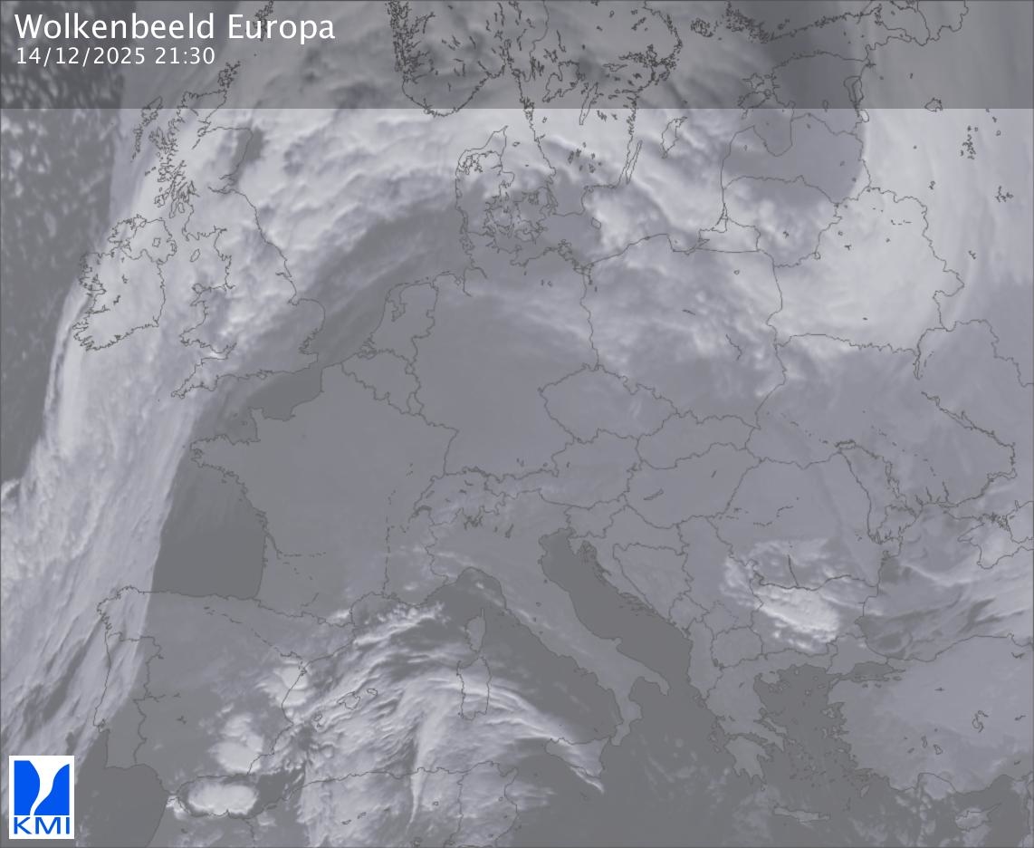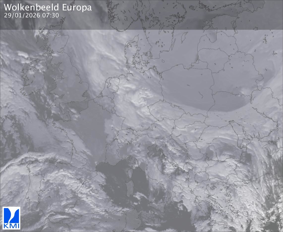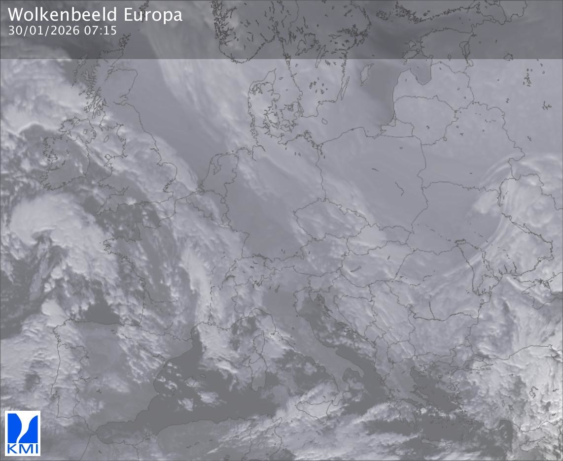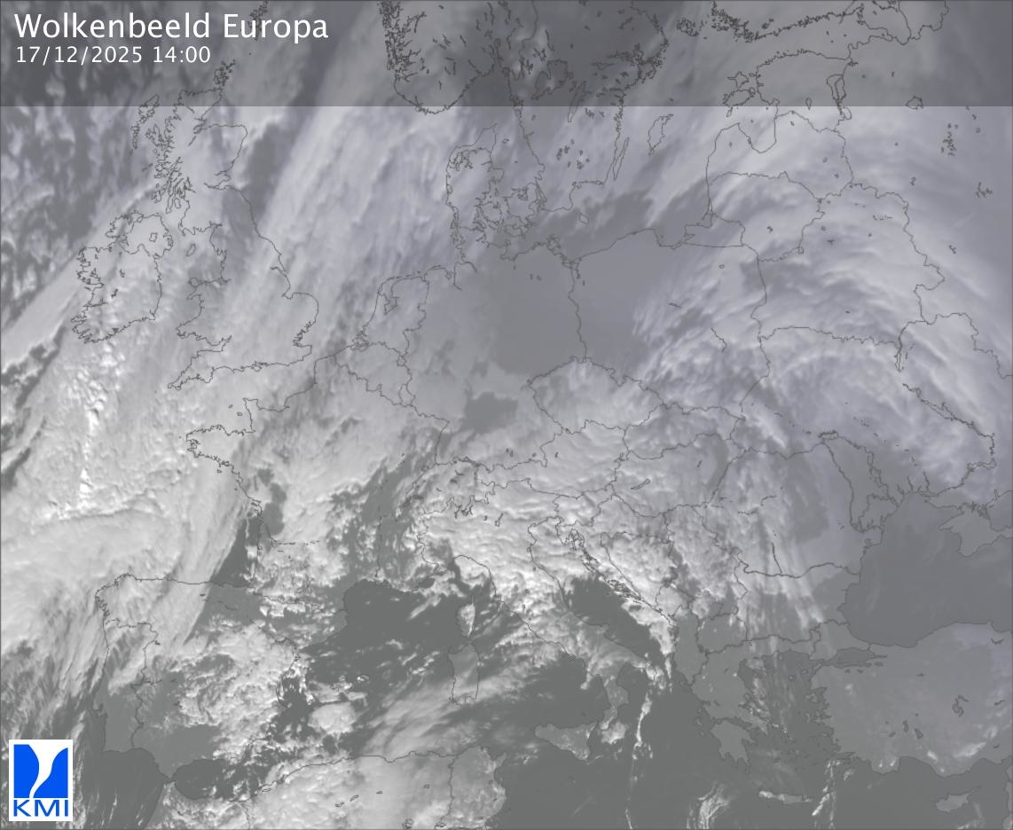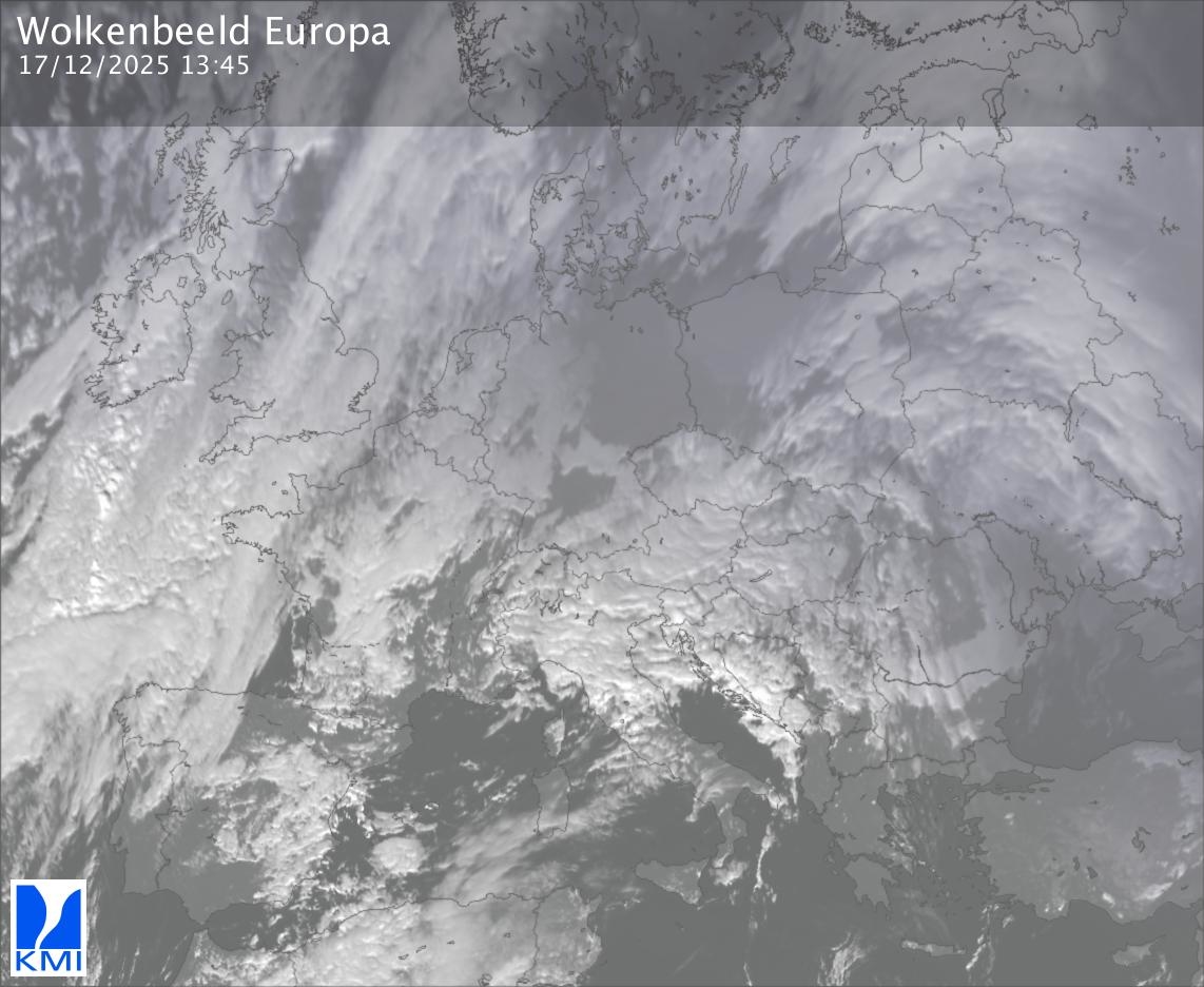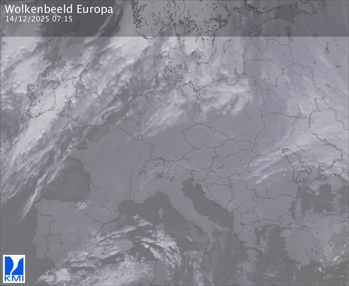 Wolkenbeelden van Europa: een combinatie uit het zichtbare (dag) en infrarode (nacht) spectrum.