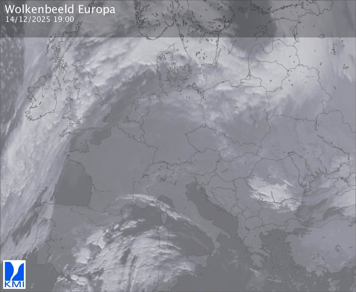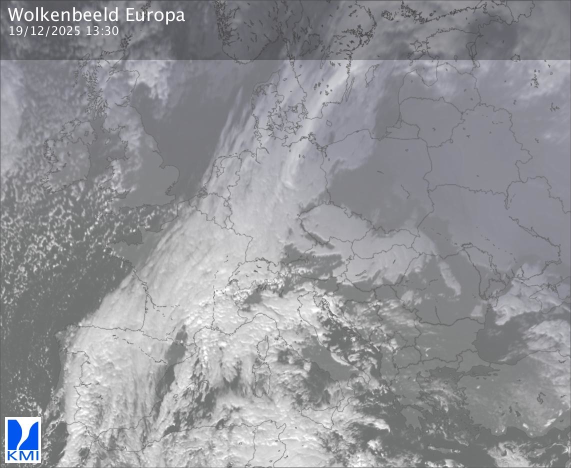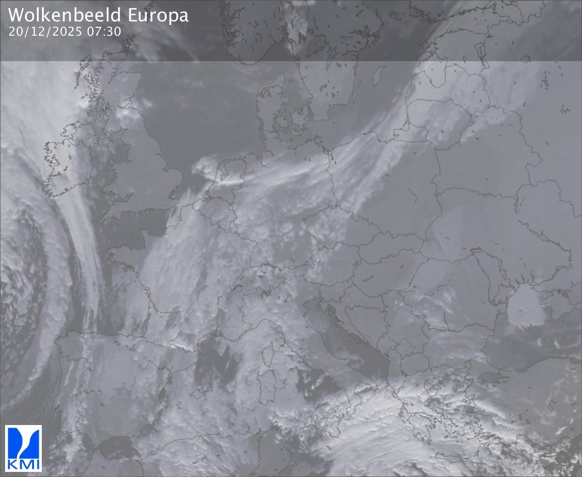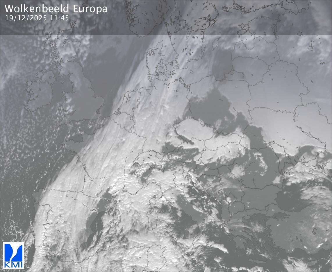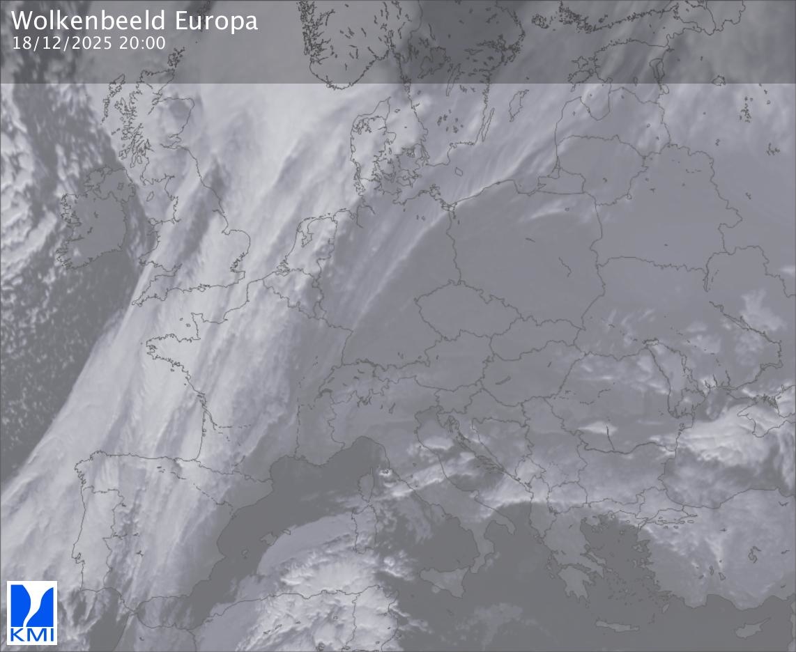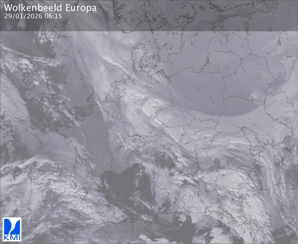 Wolkenbeelden van Europa: een combinatie uit het zichtbare (dag) en infrarode (nacht) spectrum.