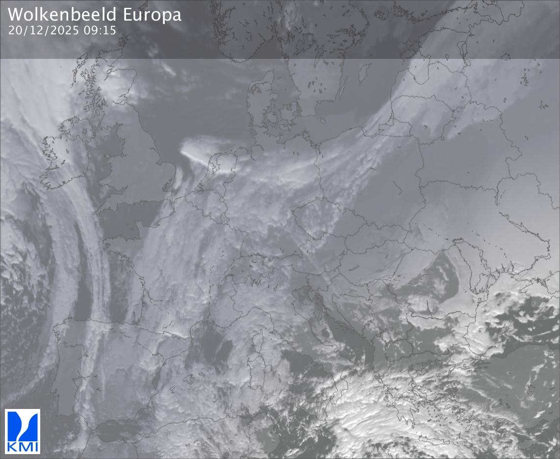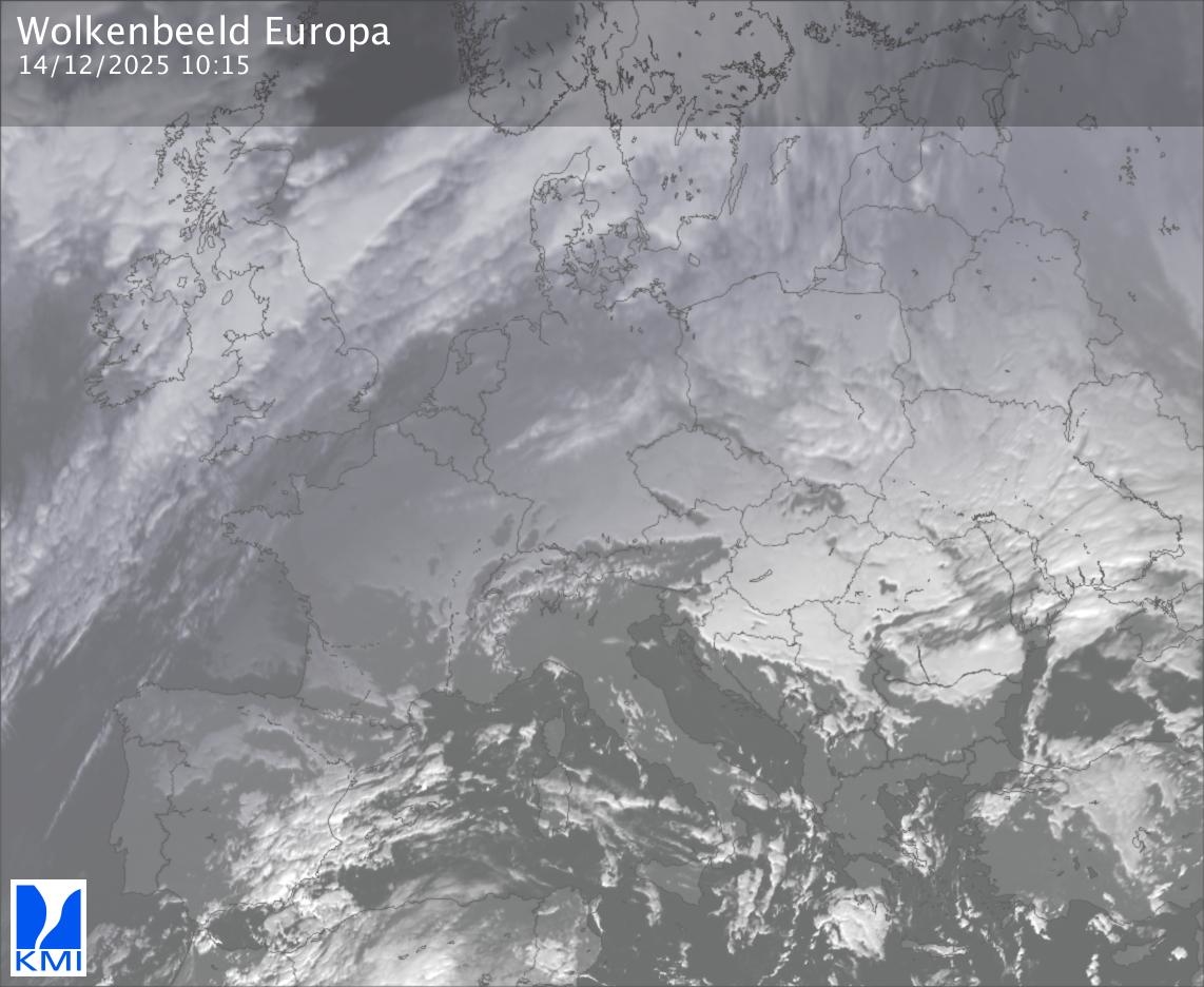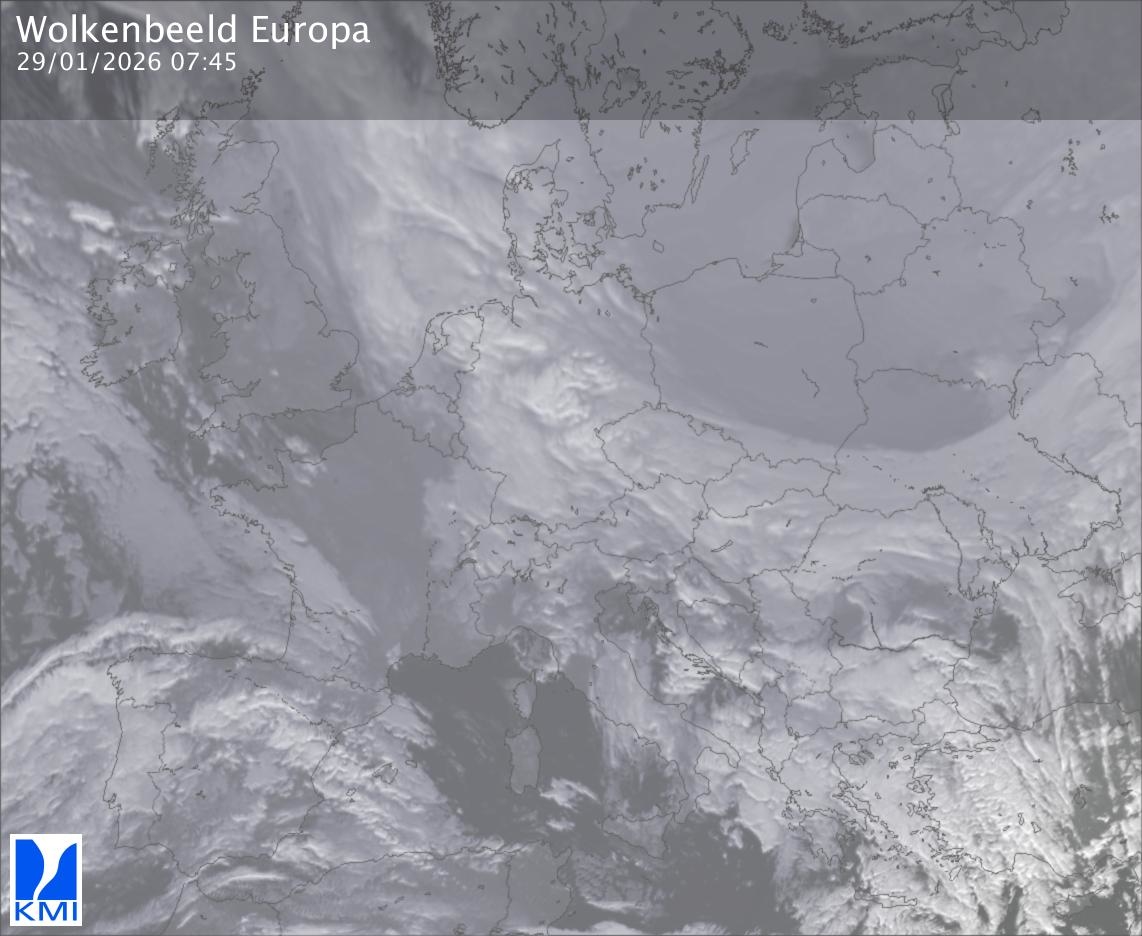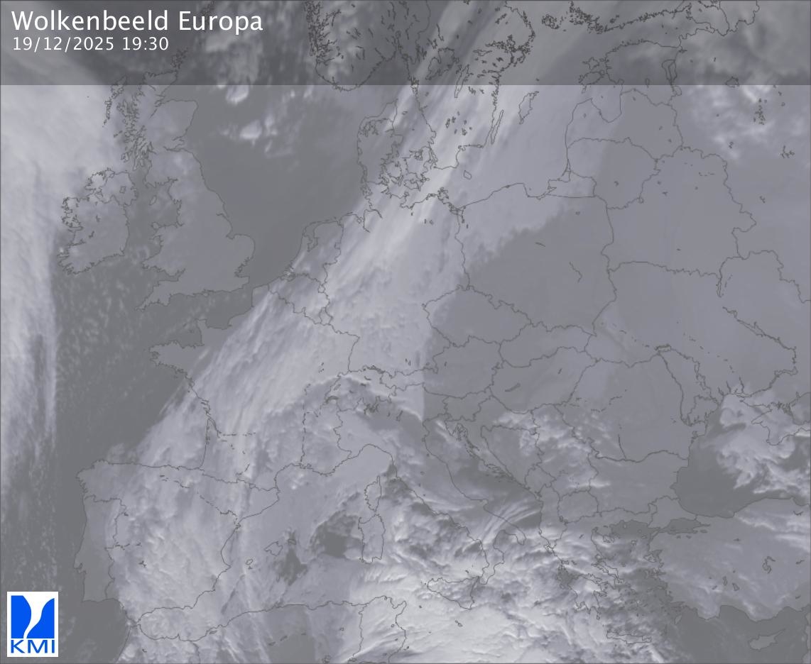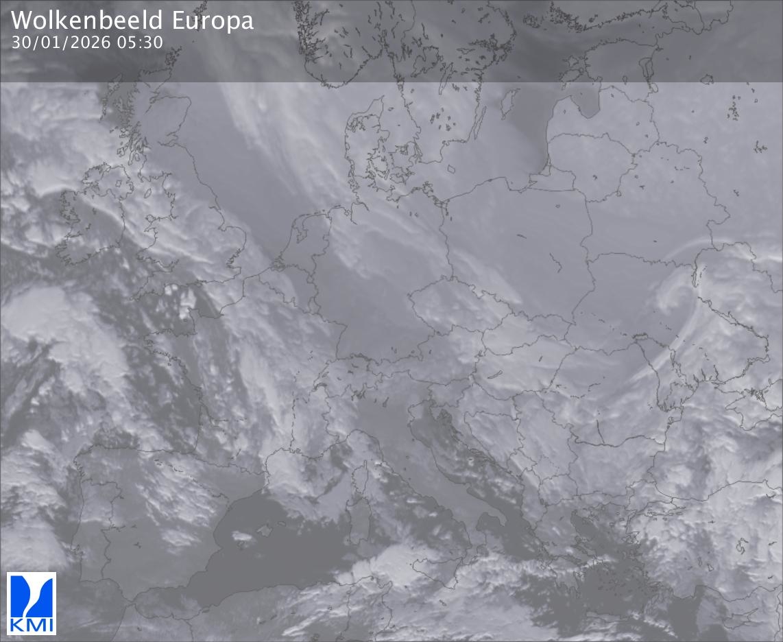 Wolkenbeelden van Europa: een combinatie uit het zichtbare (dag) en infrarode (nacht) spectrum.