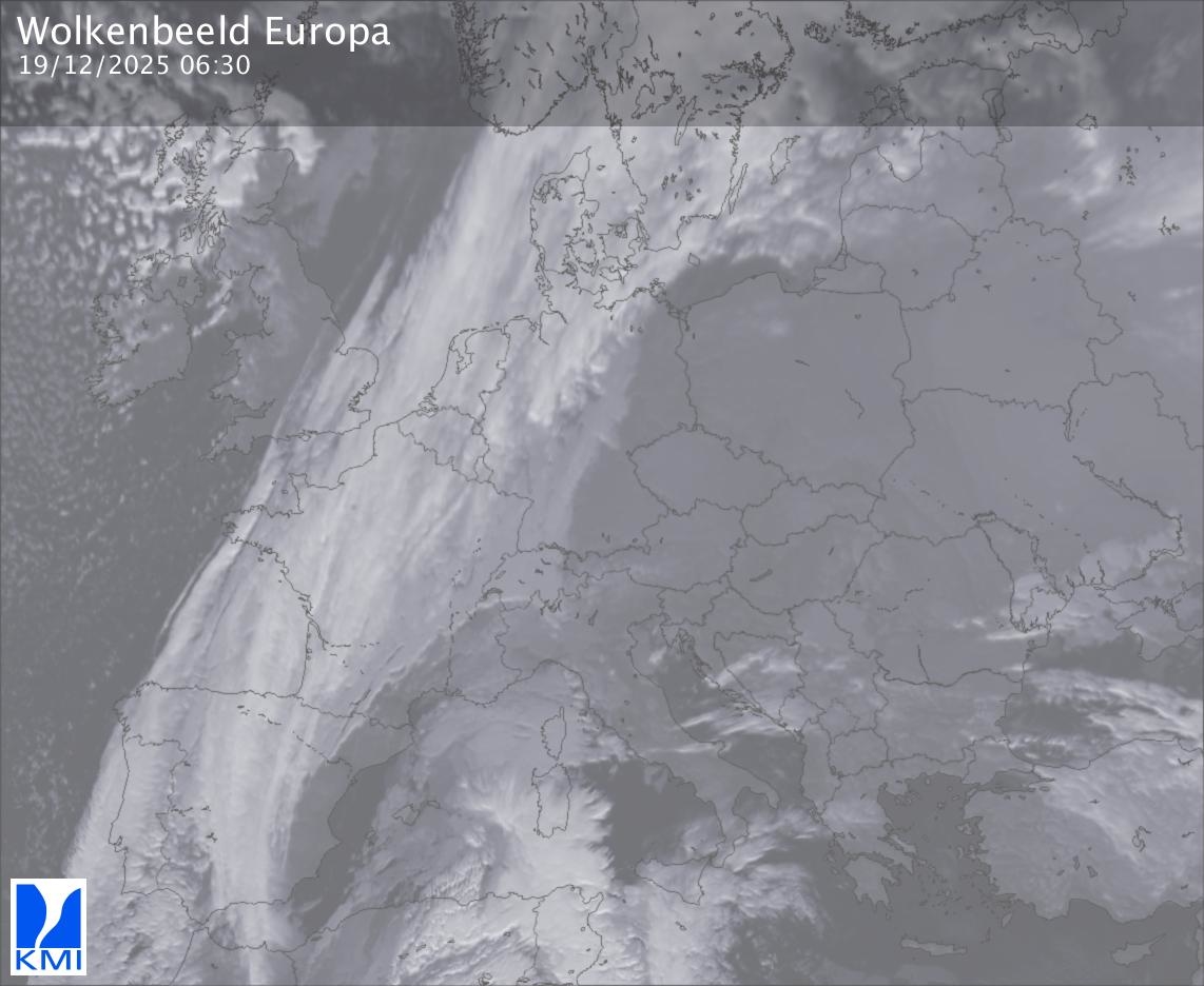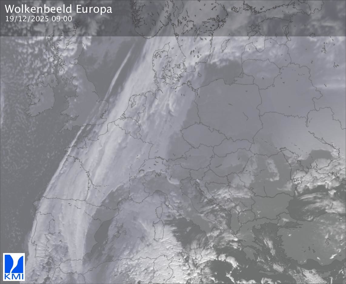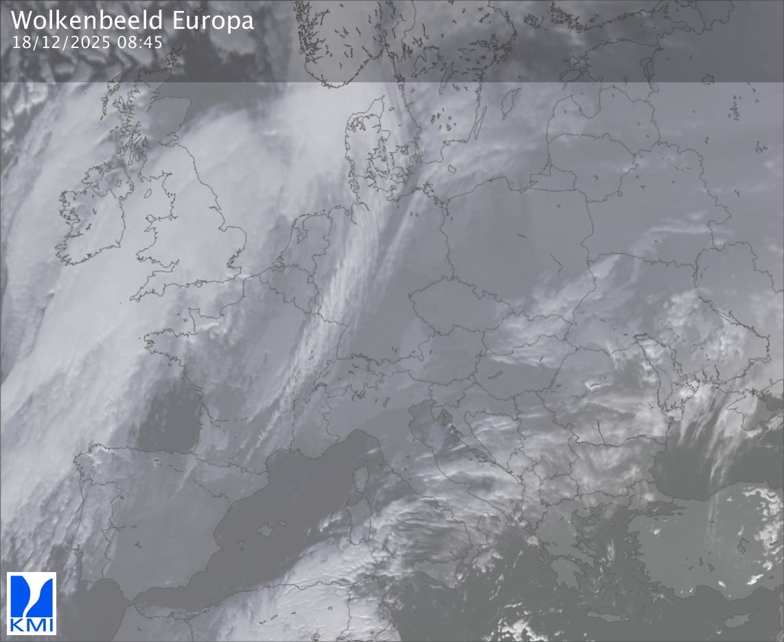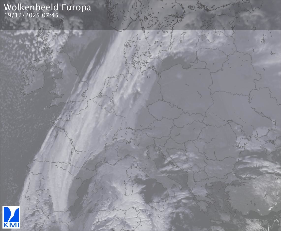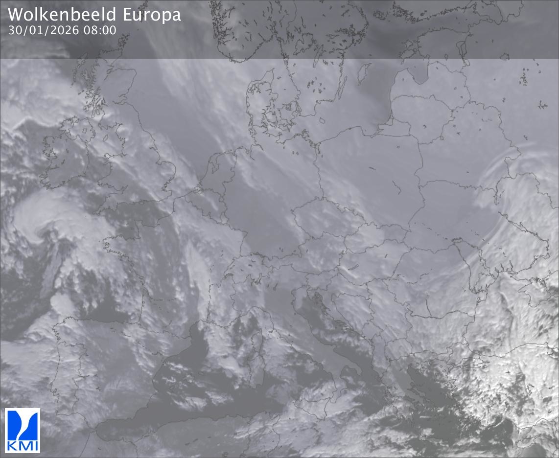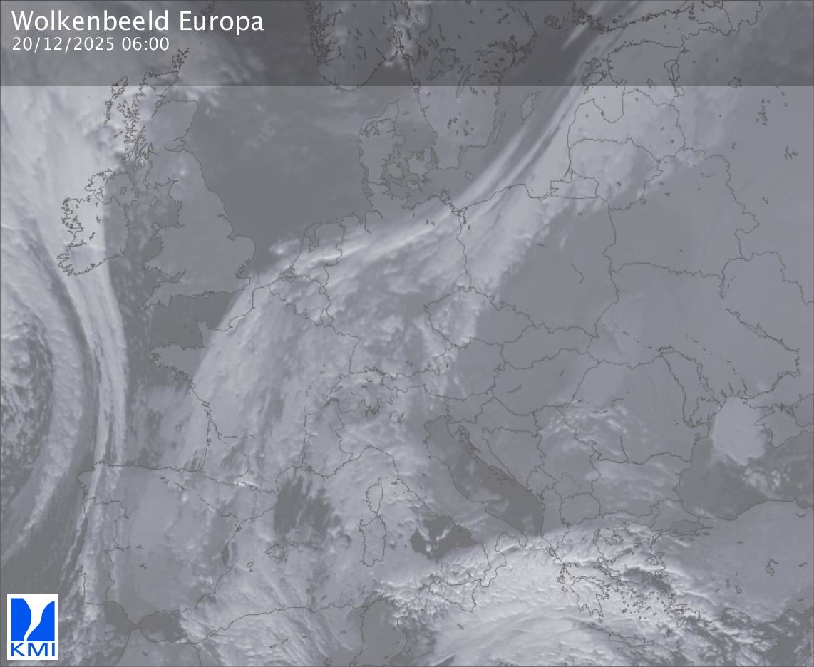 Wolkenbeelden van Europa: een combinatie uit het zichtbare (dag) en infrarode (nacht) spectrum.