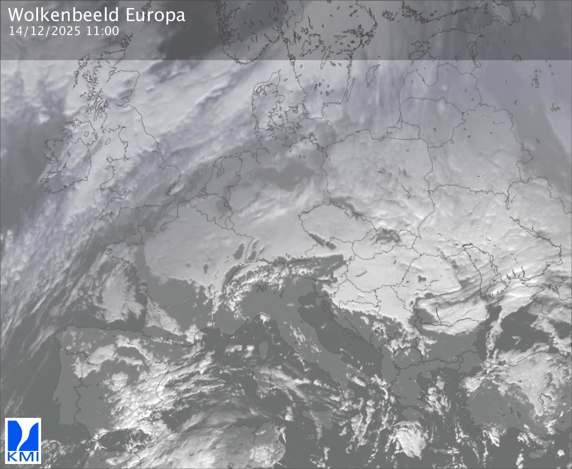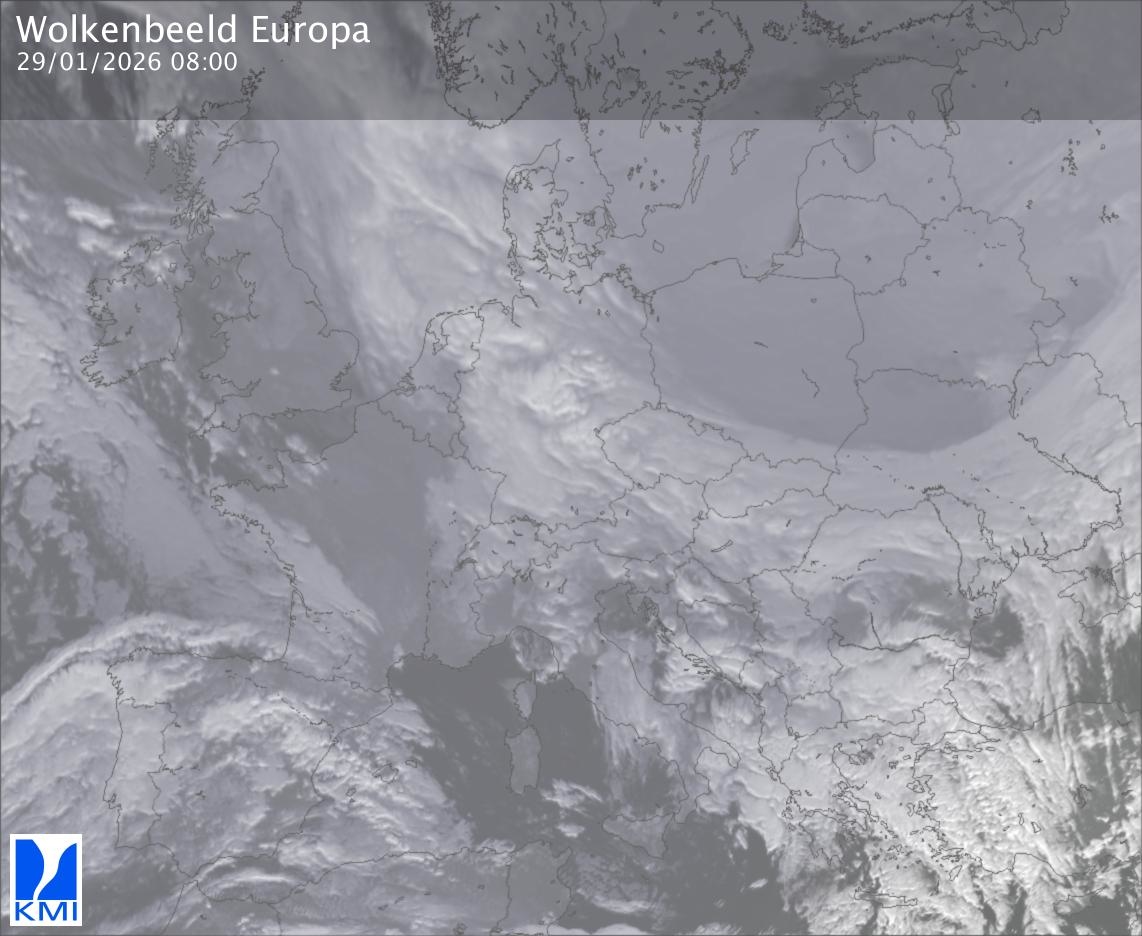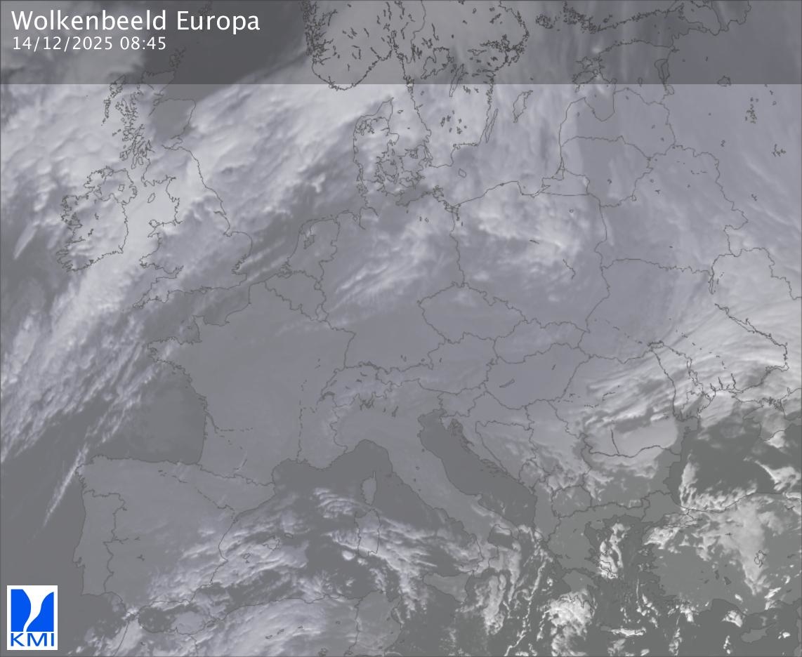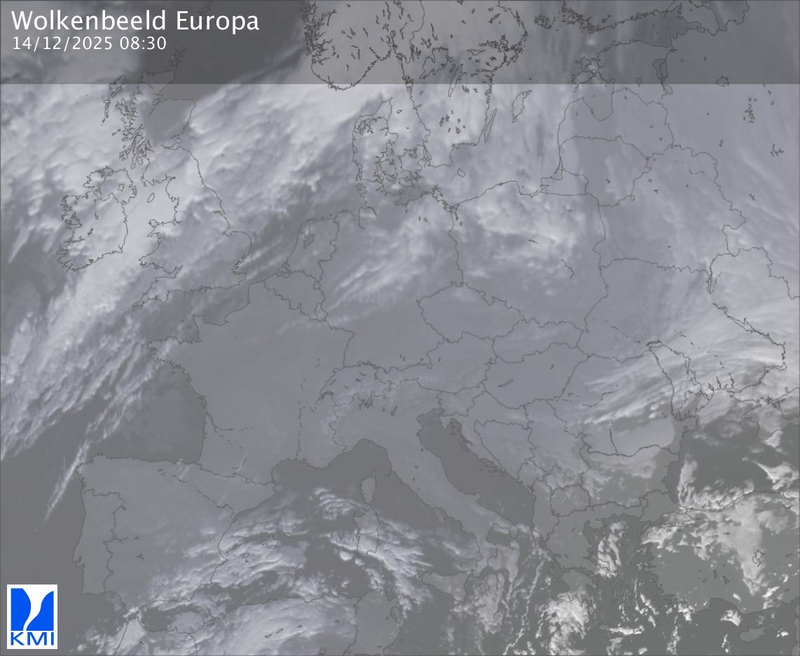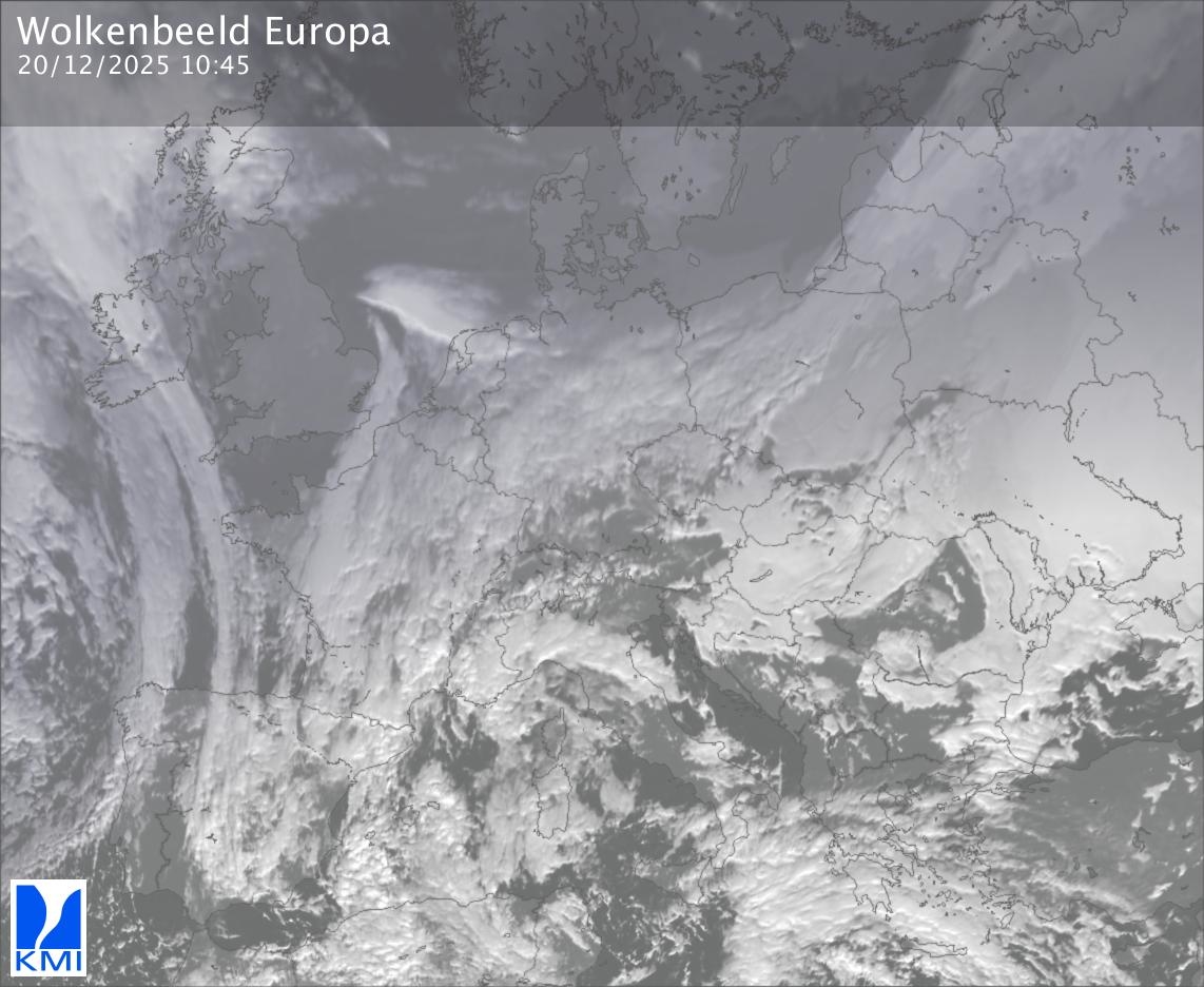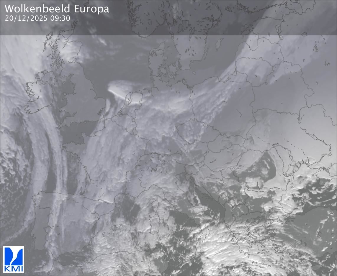 Wolkenbeelden van Europa: een combinatie uit het zichtbare (dag) en infrarode (nacht) spectrum.